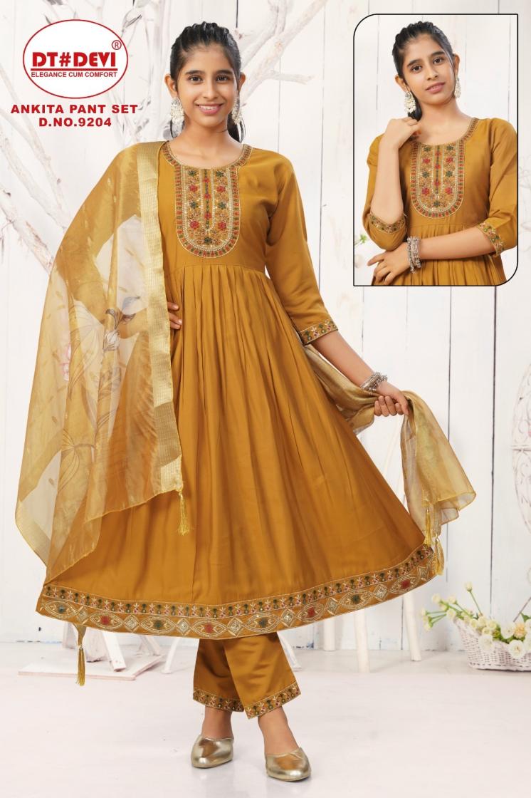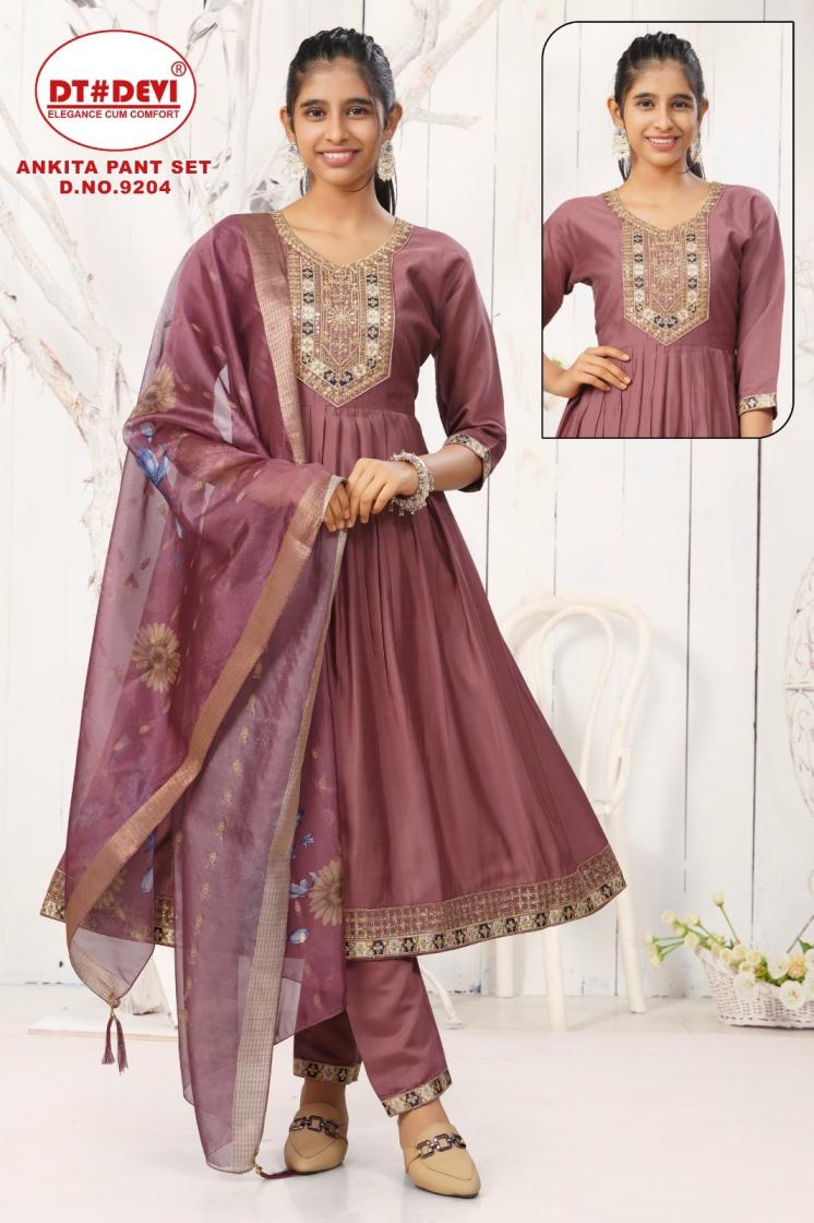 dt devi ankita 9204 readymade roman silk kids combo 3pcs dress