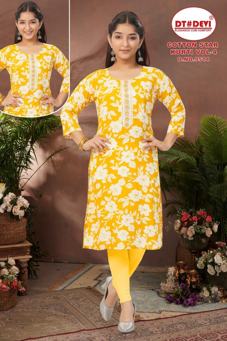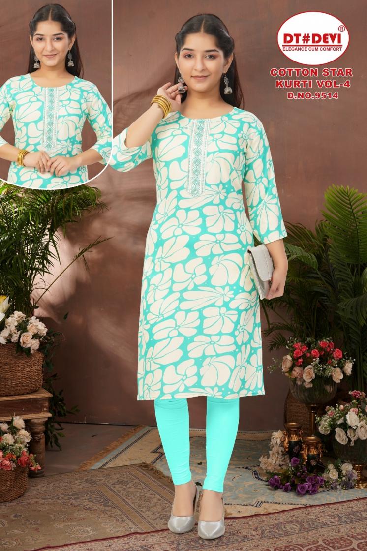 dt devi cotton star vol 4 readymade 9514 rayon combo kids kurti