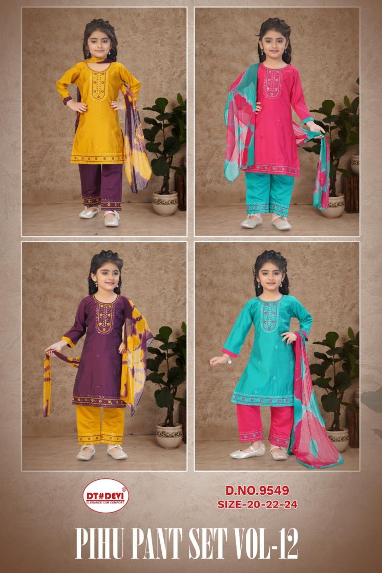 dt devi pihu vol 12 roman silk 9549 readymade unique combo kids 3pcs dress