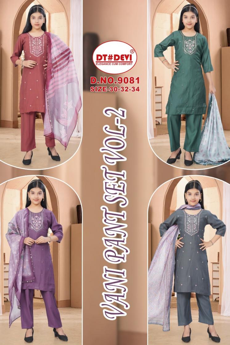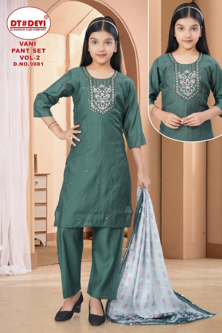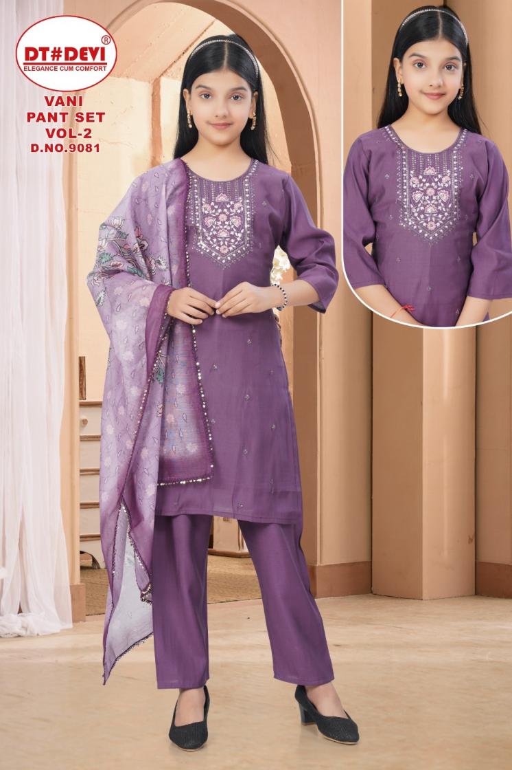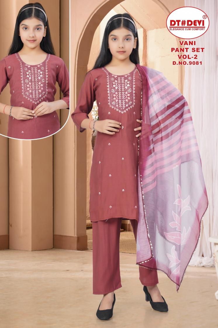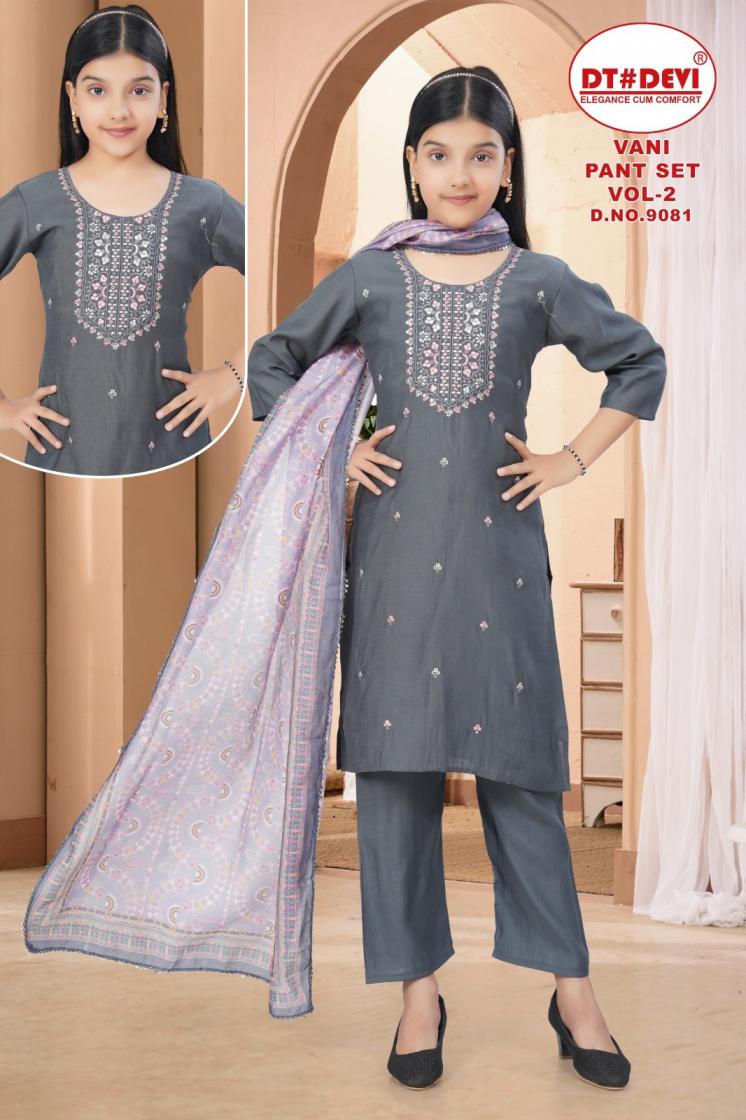 dt devi vani pant set vol 2 9081 roman silk readymade stylish kids 3pcs dress