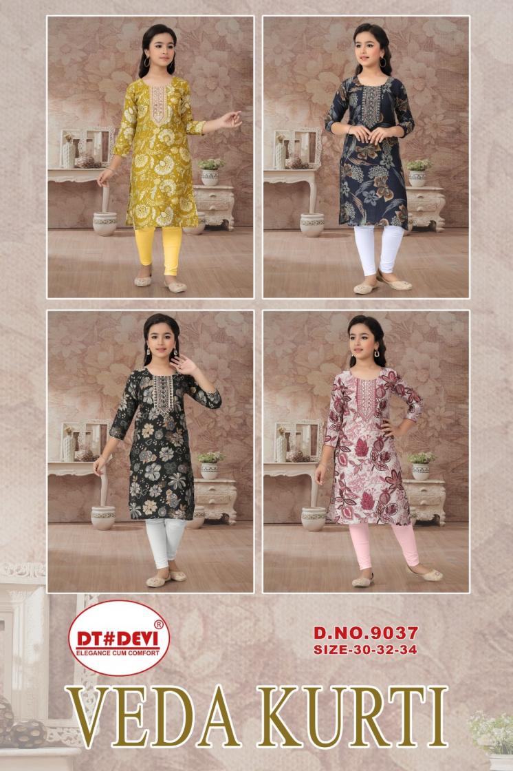 dt devi veda kurti 9037 vetican print readymade amazing combo set kids kurtis