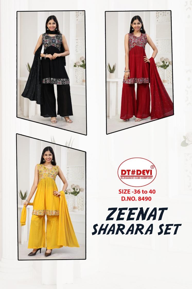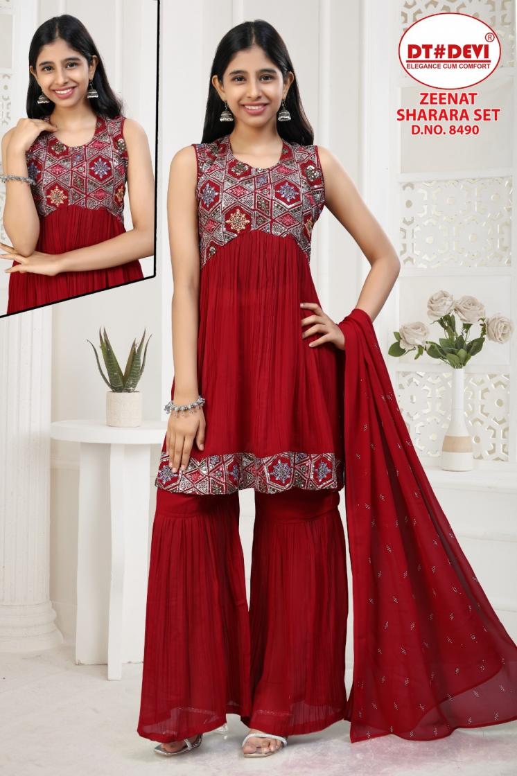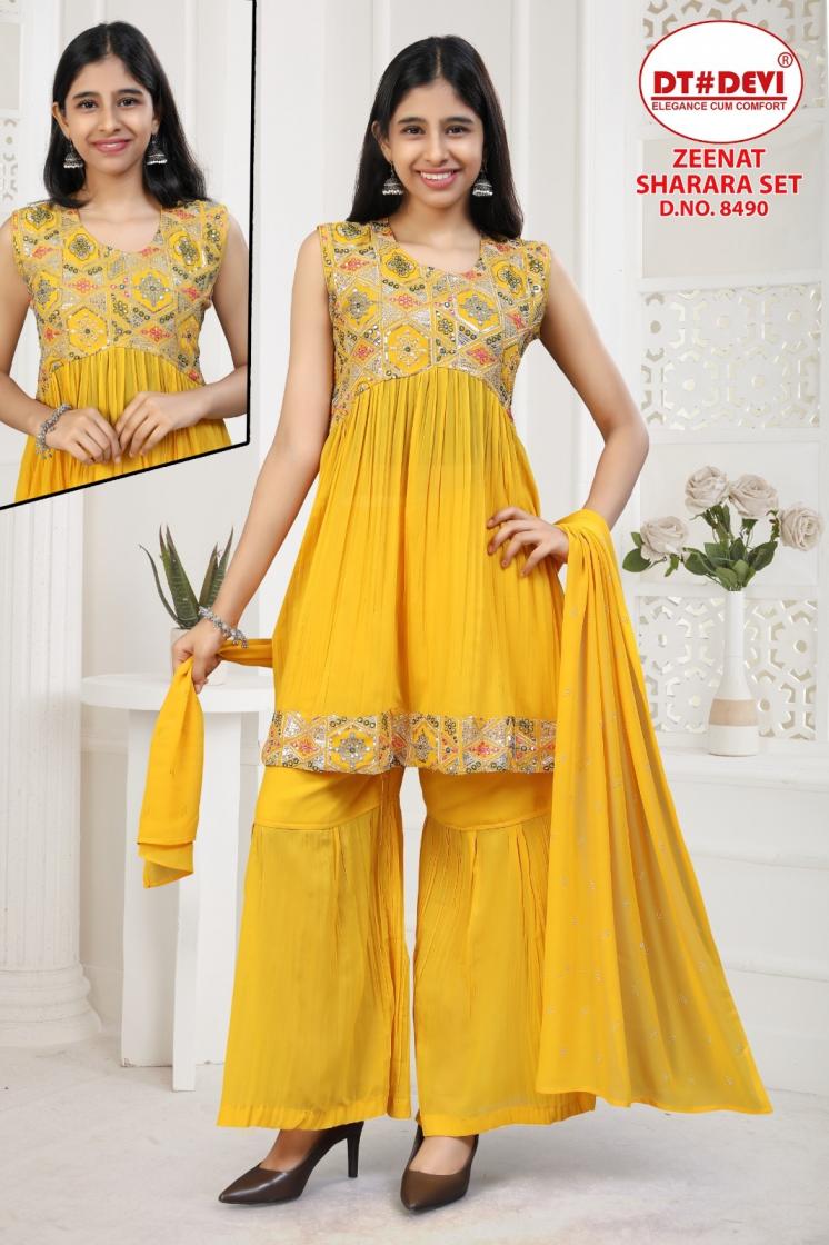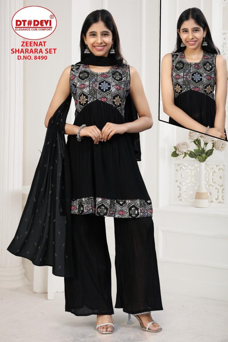 dt devi zeenat 8490 georgette readymade combo kids sharara kurti with dupatta
