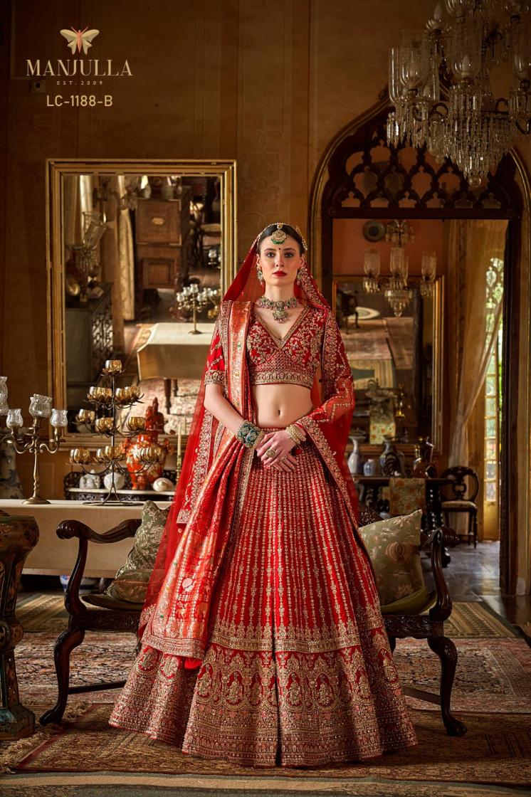 dulhan vol 1 by manjulla fashion tone silk engagement stitch lehenga unstitch blouse for bride