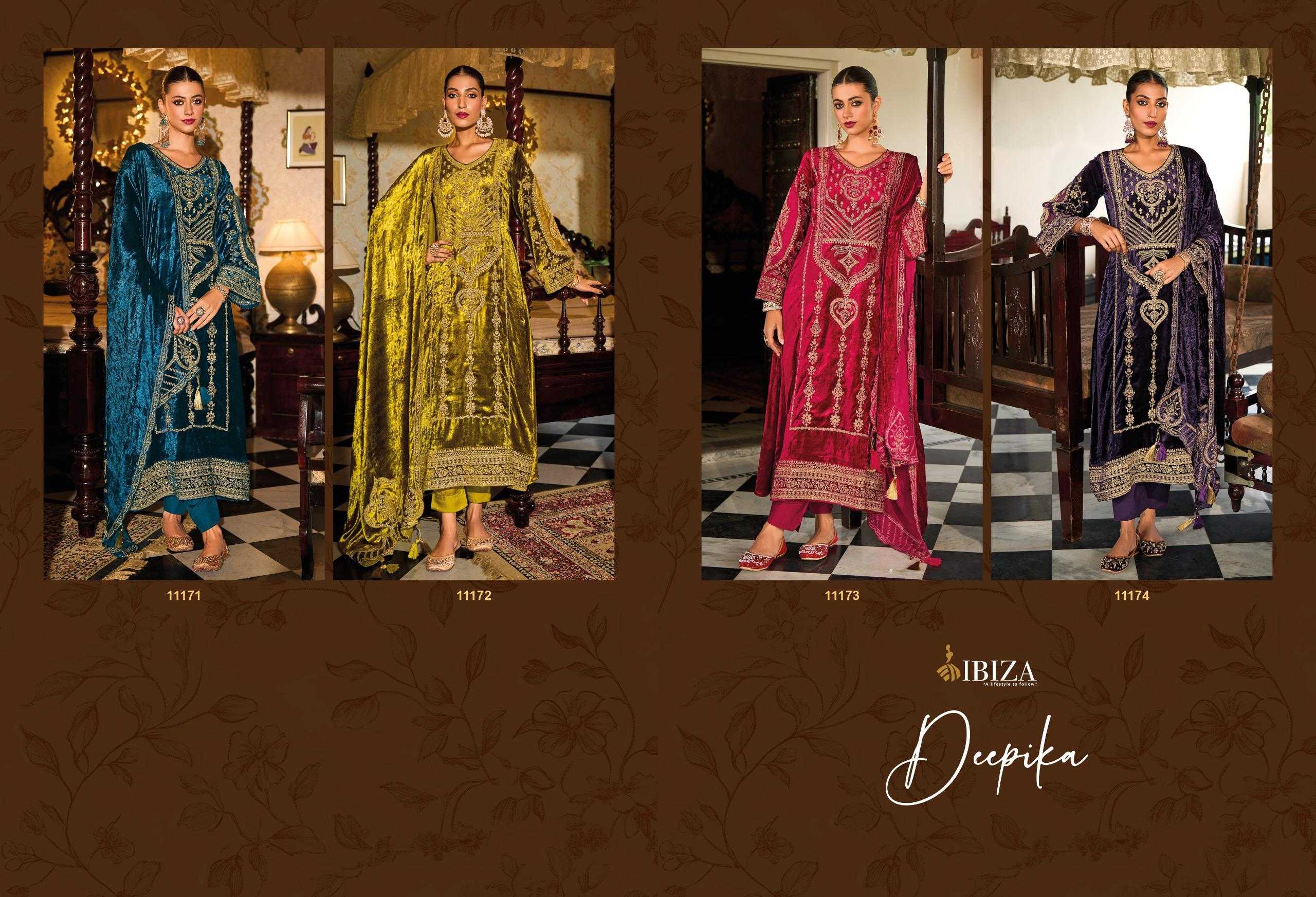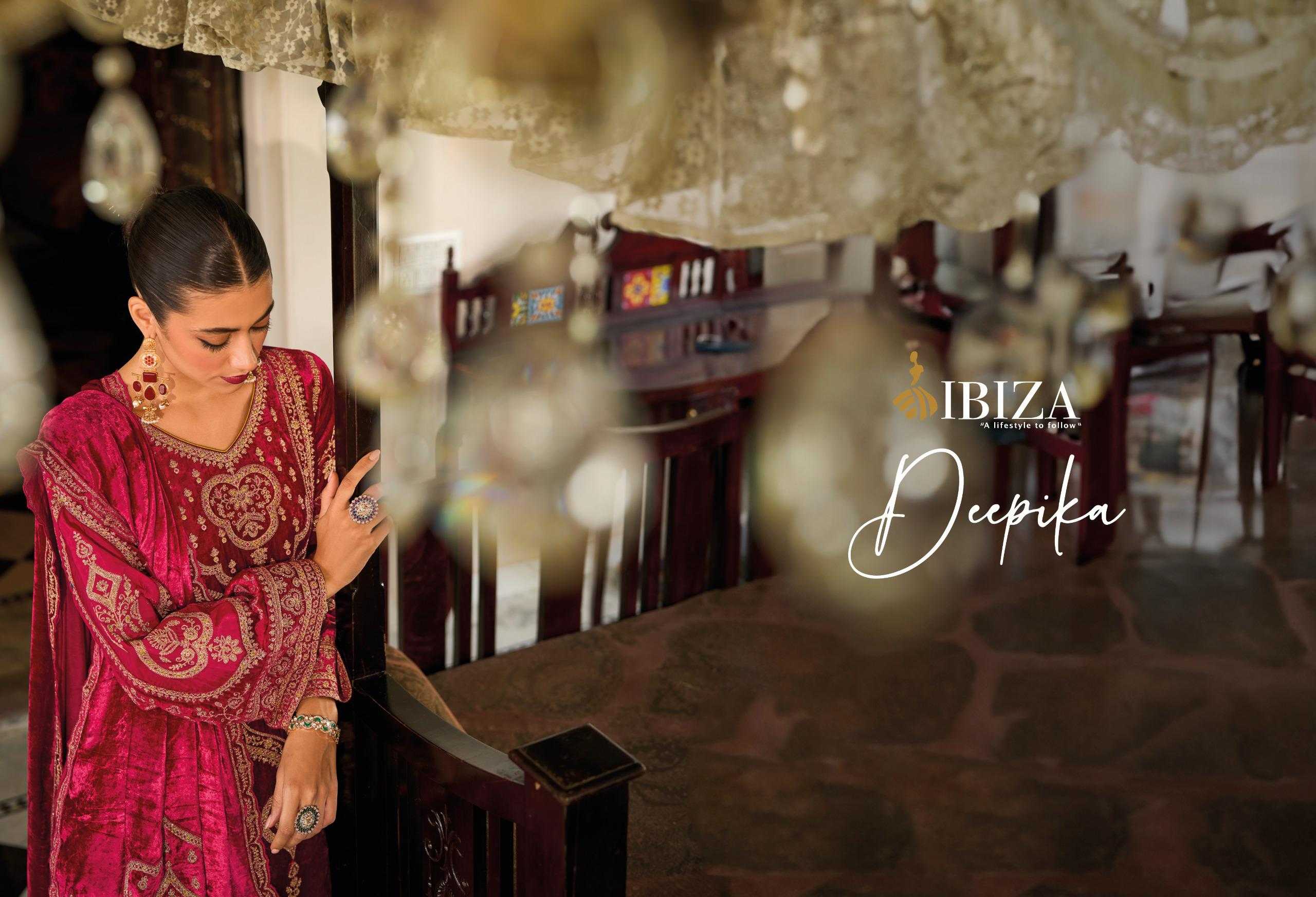 🙏🙏 IBIZA 🙏🙏 NEW SERIES DUPIKA PREMIUM VELVET 👊Fabric Details👊 *👗Top:-PURE VISCOSE VELVET DESINER EMBROIDERY WORK BOTTOM:-PURE PASHMINA 🔻Designs:- 4 PCS Rate:-3495