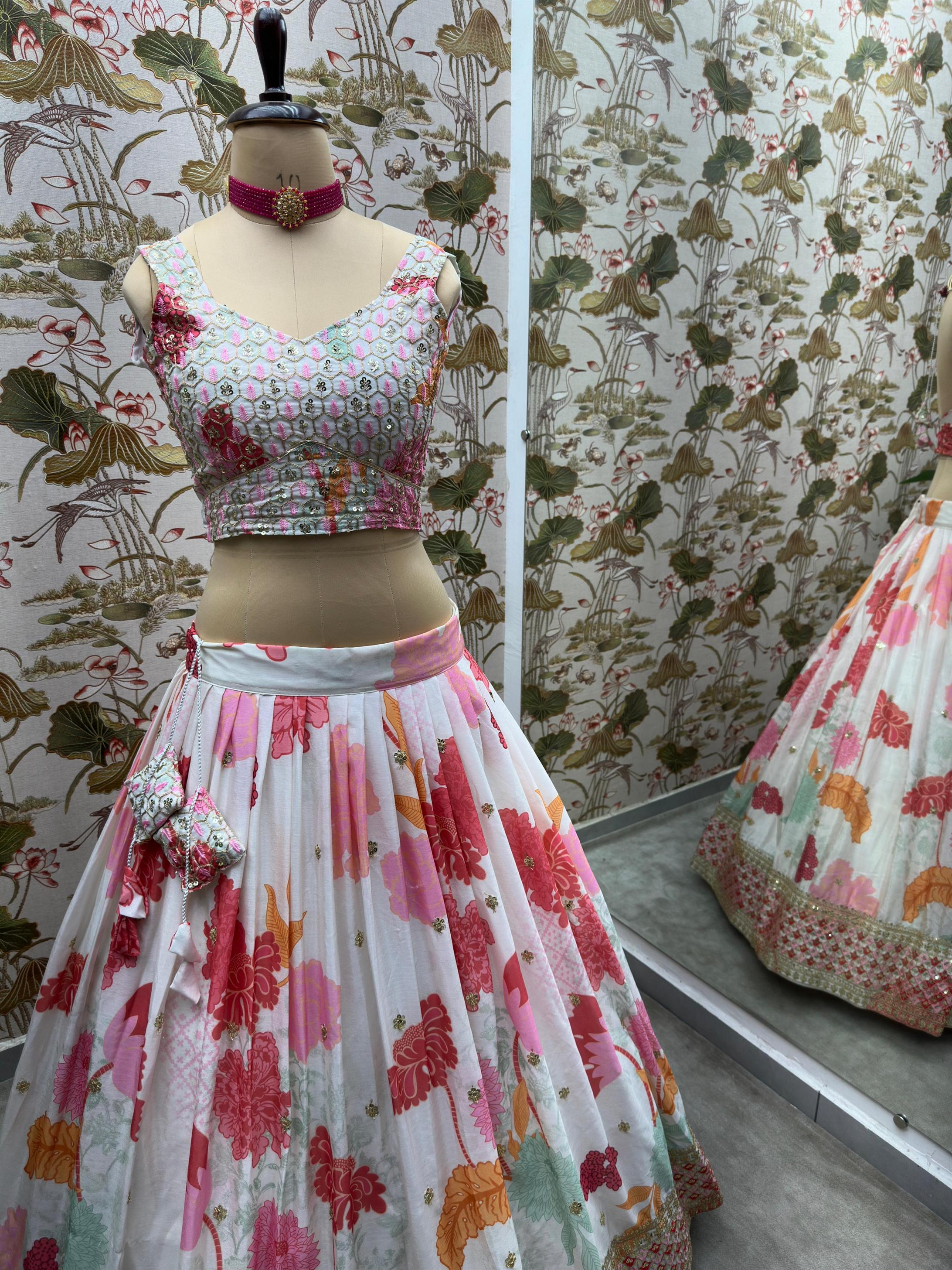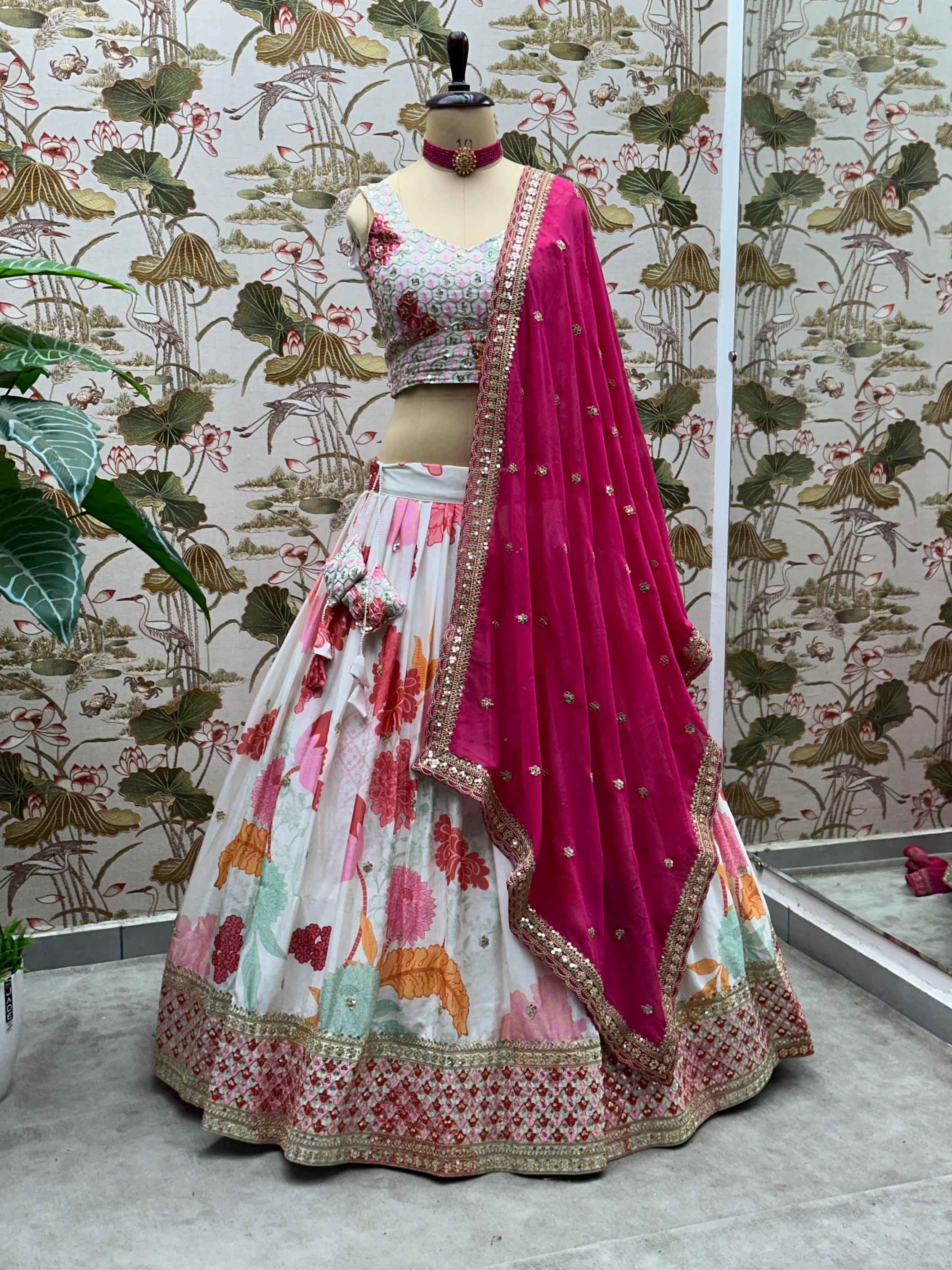 🌼designer Lehenga Choli🌼 ✨ Bloom with elegance ✨ DVD ON5081 Lehenga (semi Steach) Lehenga Waist :42” Length :42” Blouse (Unstitched) Dupatta