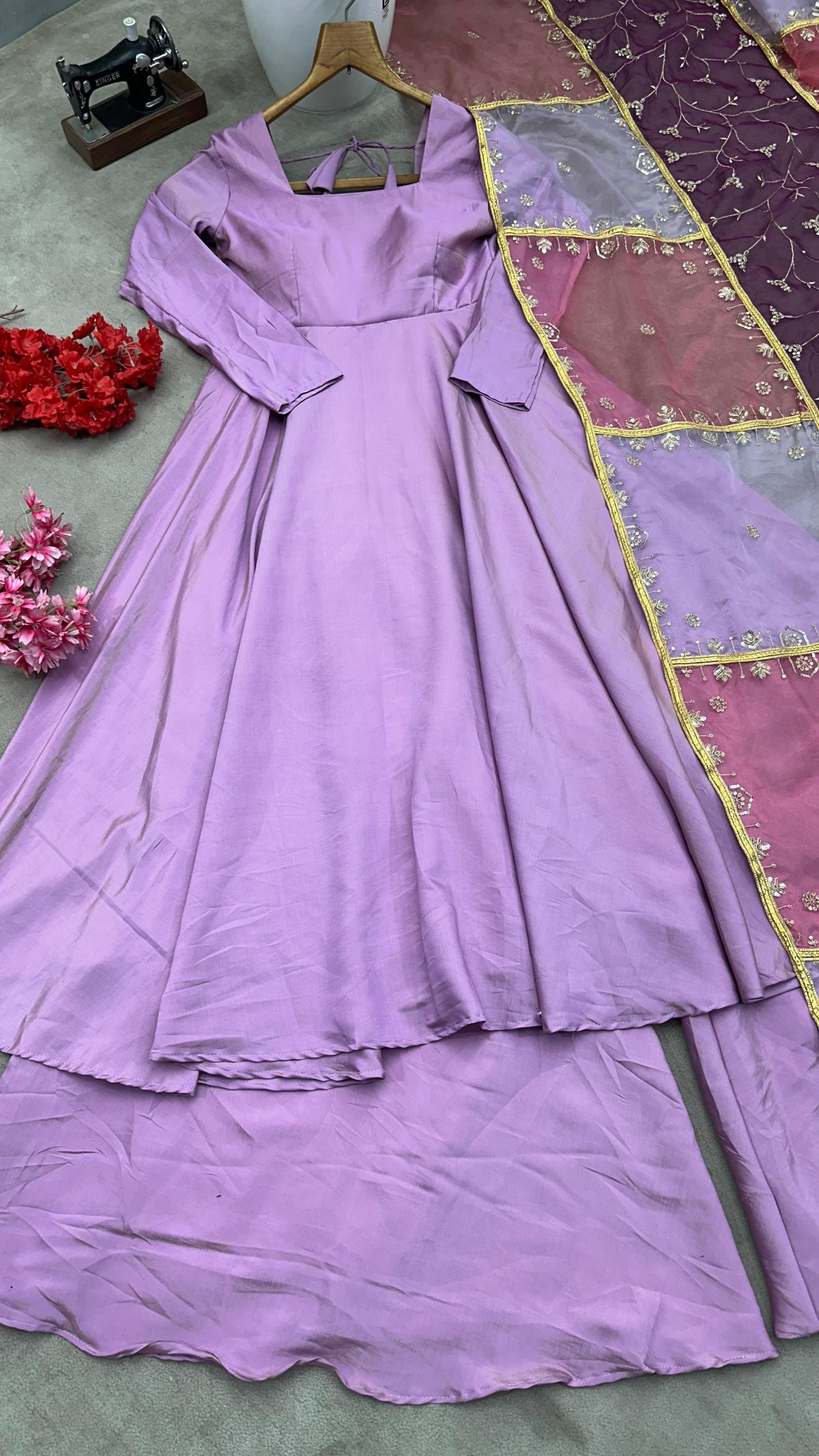 Designer dress collection “Elegance meets tradition — a stunning purple paired with a beautifully embroidered multi-tone dupatta, perfect for festive celebrations or a graceful evening affair.”