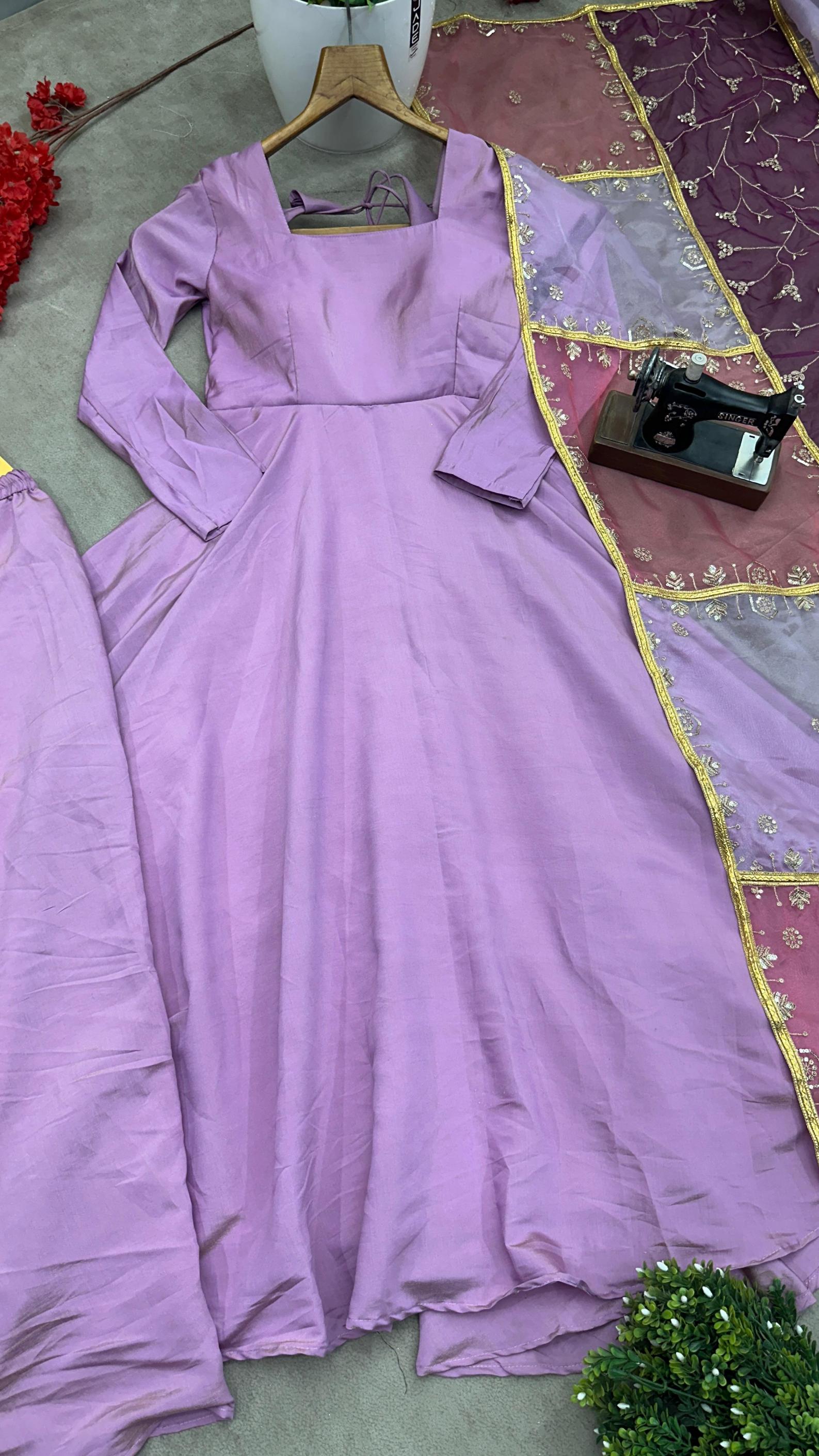 Gown Fabric : Roman Simmer Silk Plazo/Bottom Fabric :- Roman Simmer Silk Dupata Weight :- 1Kg Price : 1350₹ |