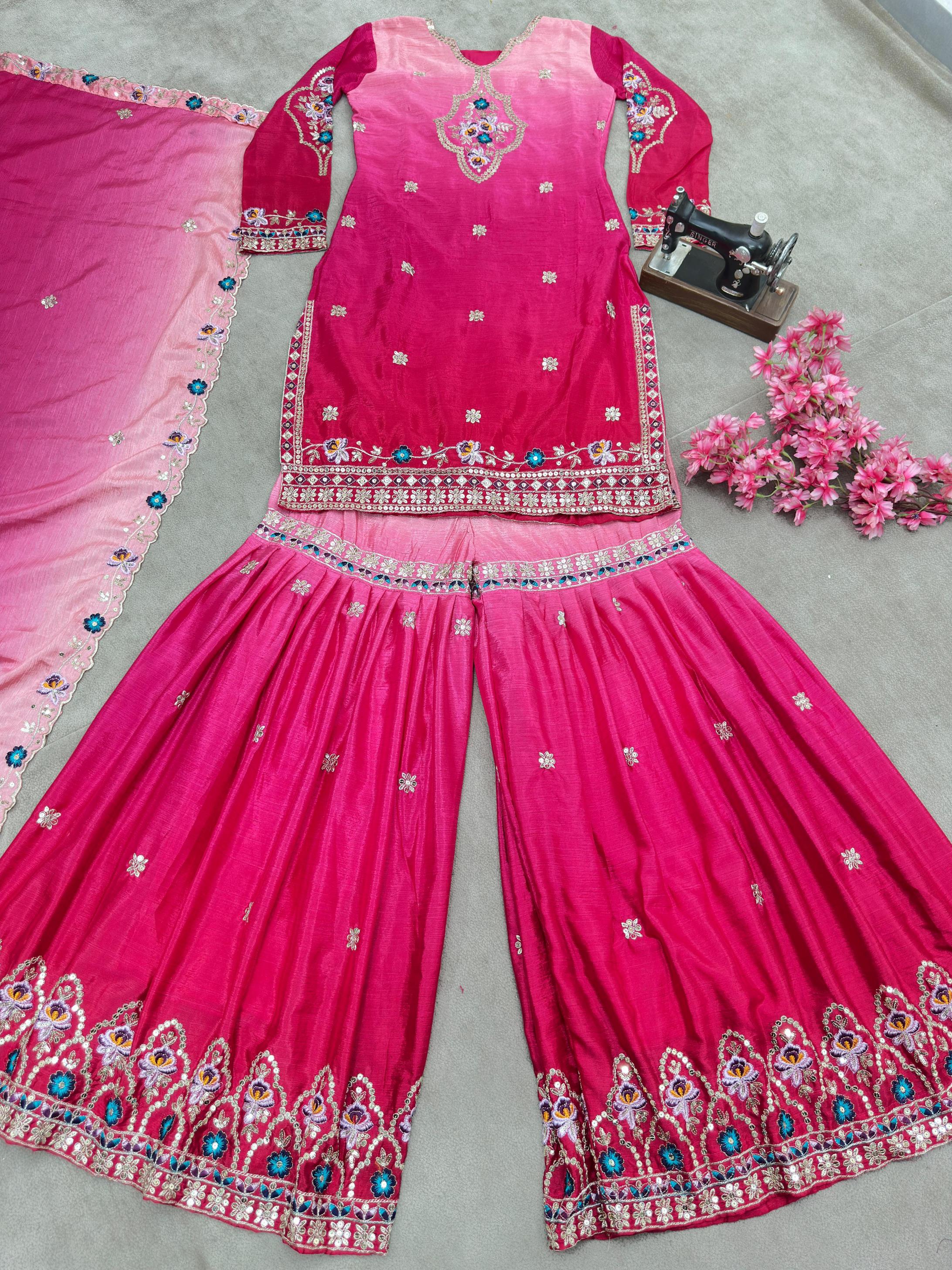 dvd 5121 chinon readymade sequence work combo kurti sharara with dupatta online