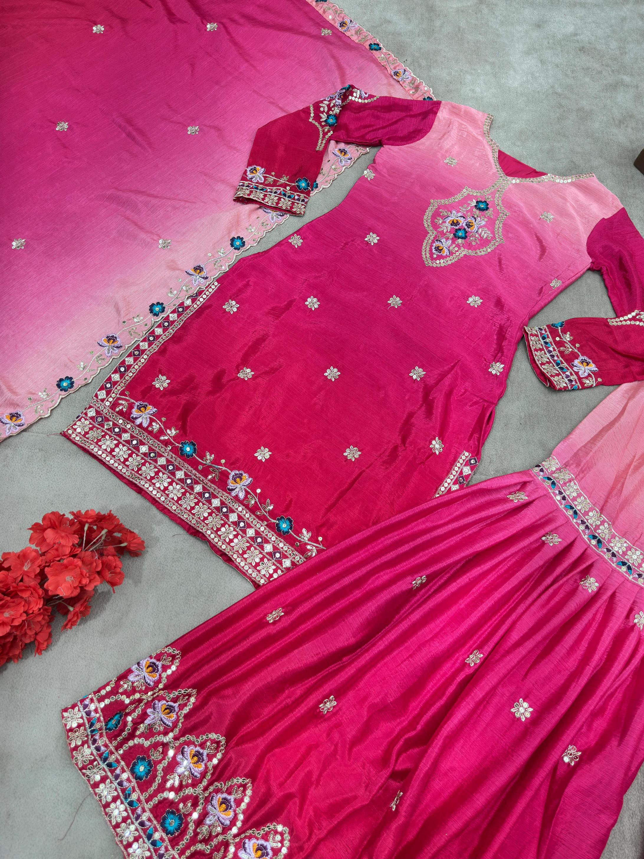 ✅REAL MODEL SHOOT PREMIUM COLLECTION 🇮🇳DN: DVD 5121 🥻FABRIC DETAILS: 💃🏼SHARARA:CHINON PEDDING WITH EMBROIDERY SEQUENCE DESIGN WORK 🧣DUPTTA:CHINON PEDDING SILK WITH EMBROIDERY SEQUENCE DESIGN WORK 📐SIZE: M,L,XL,2XL 💵RATE: 1295/- ₹ 🔘COLOR:1 ONE 🧣DUPTTA LENTH:2.10MTR ⚖️WEIGHT:1KG ✅जो दिखायेंगे वो ही आयेगा। |