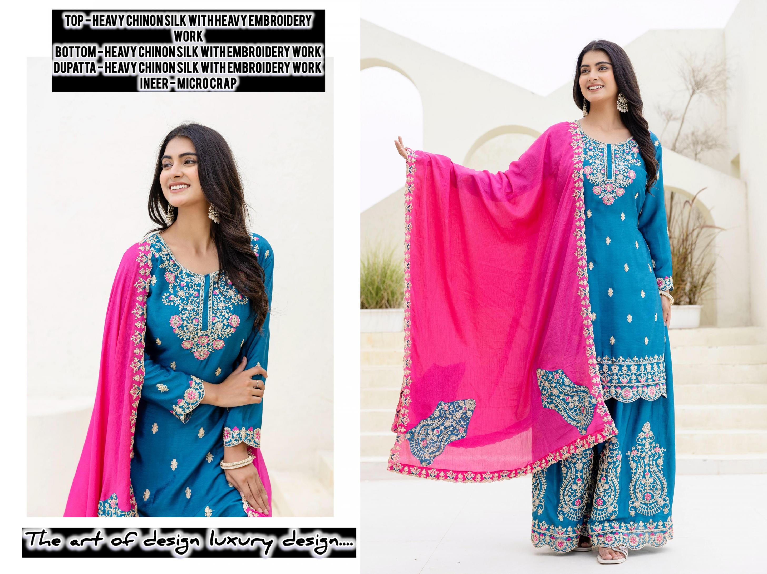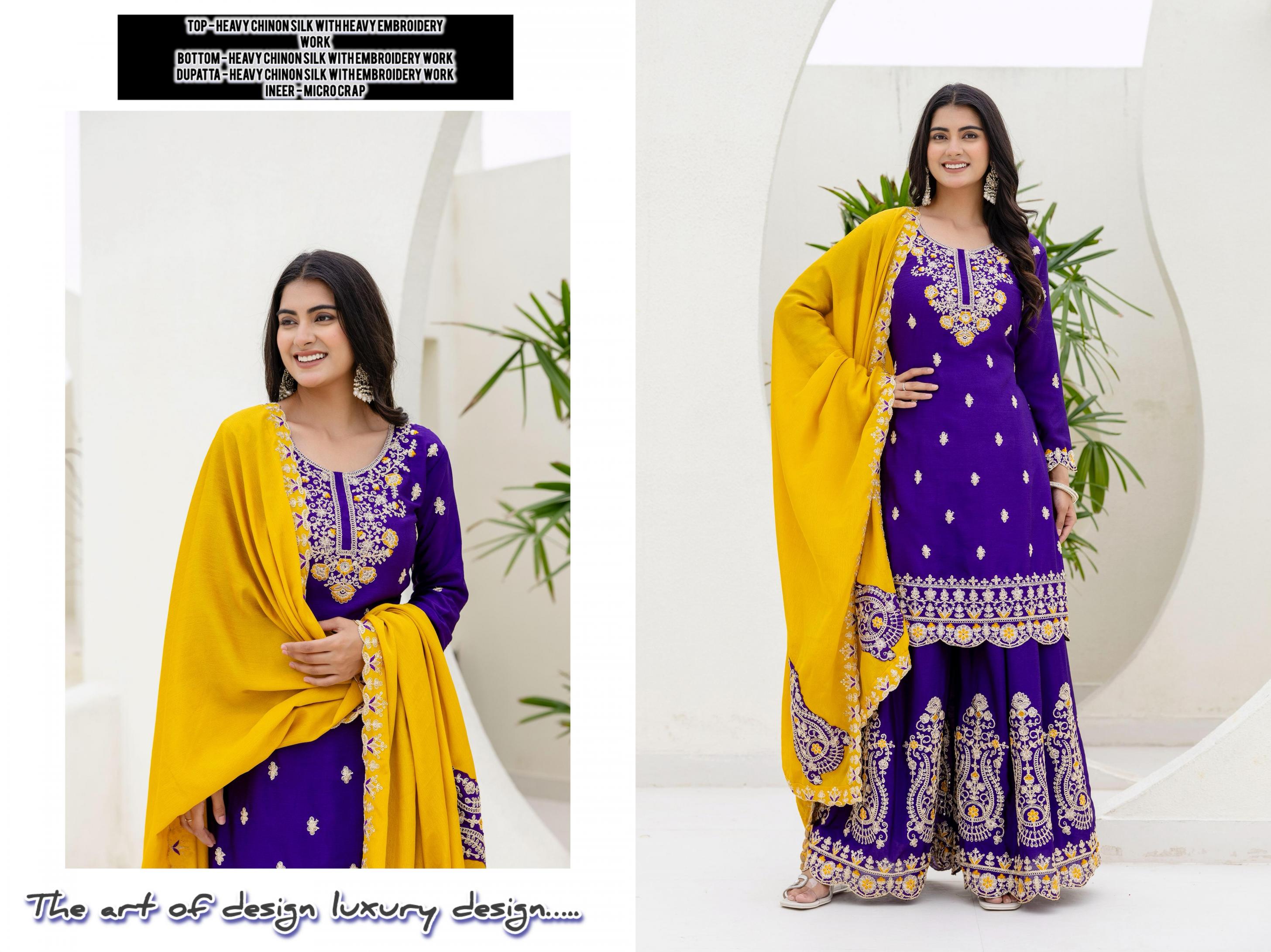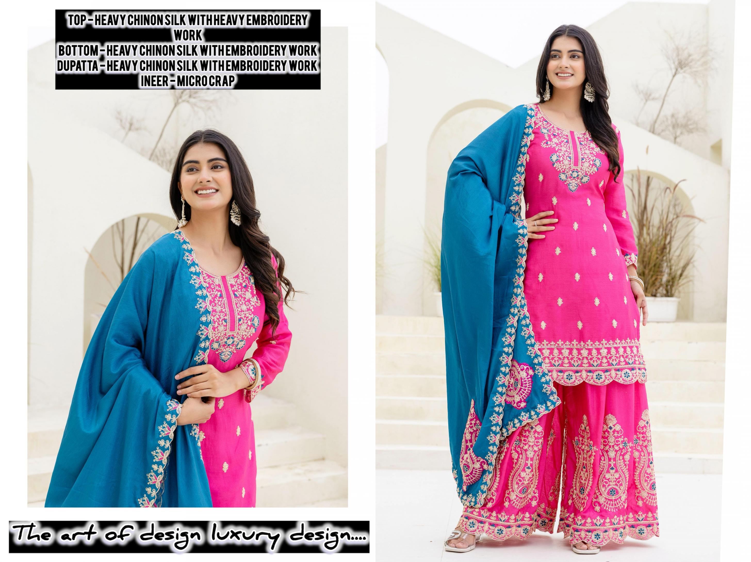 dvd 5129 chinon silk embroidered readymade plazzo suits