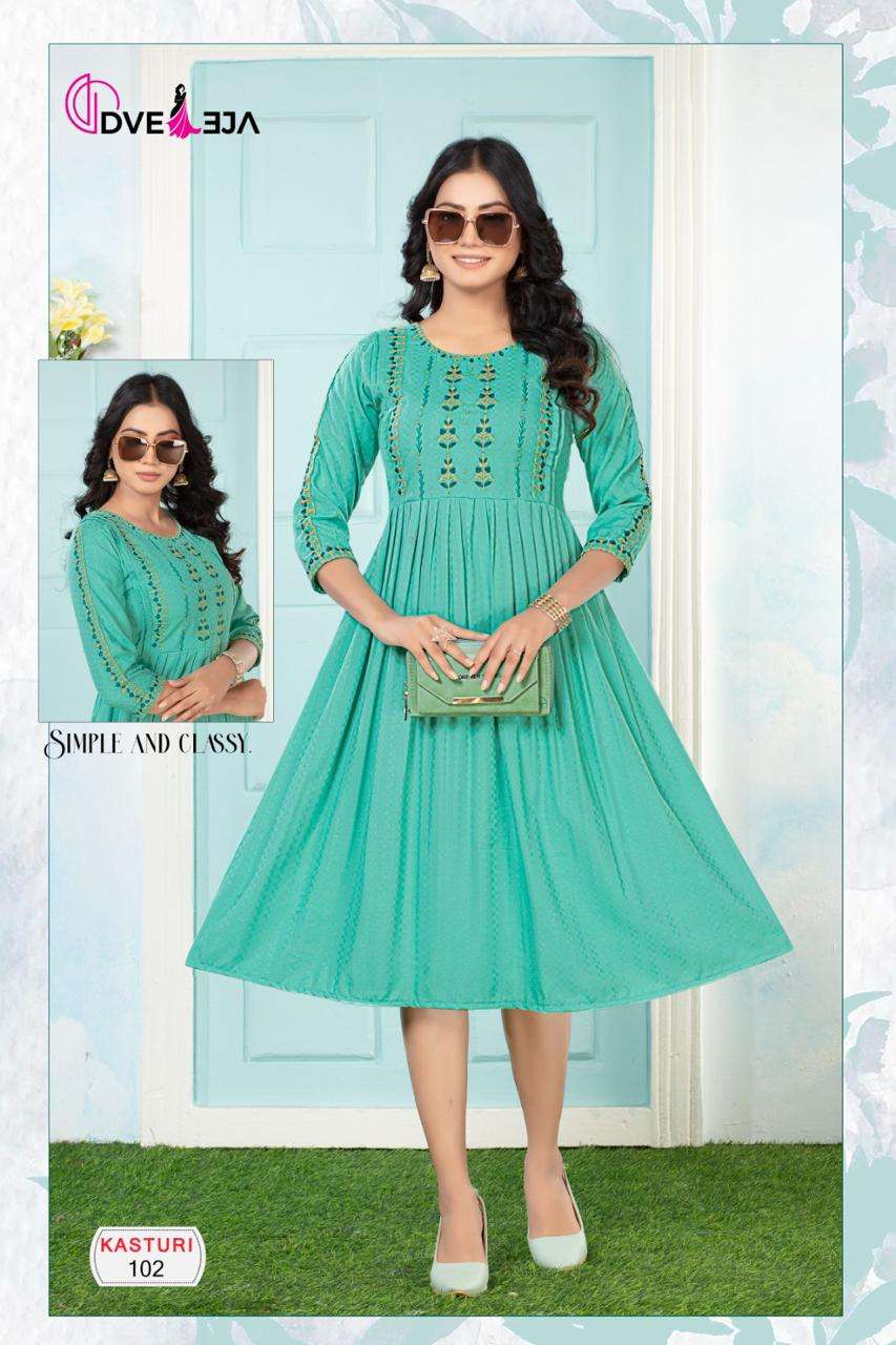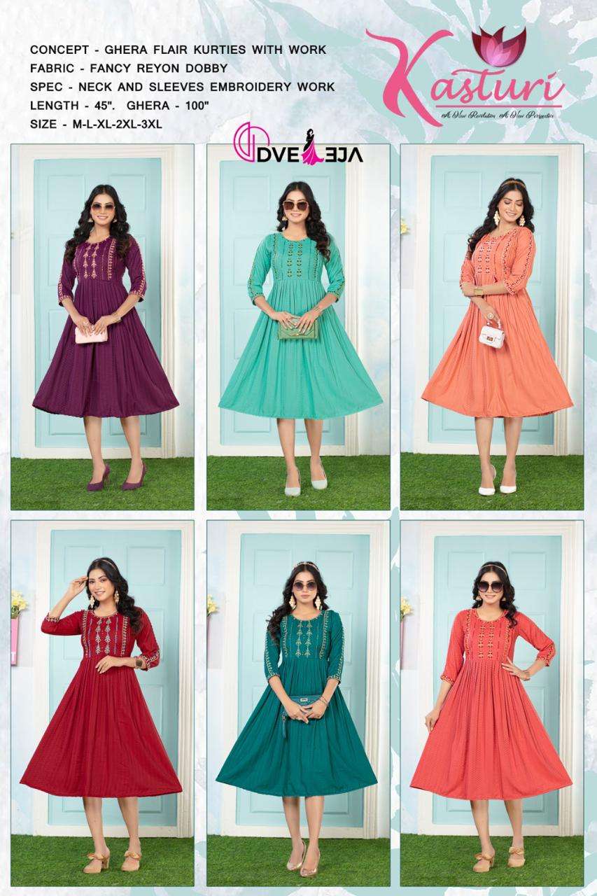 DVEEJA KASTURI VOL-1 REYON DOBBY KURTI CATALOG WHOLESALER BEST RATE