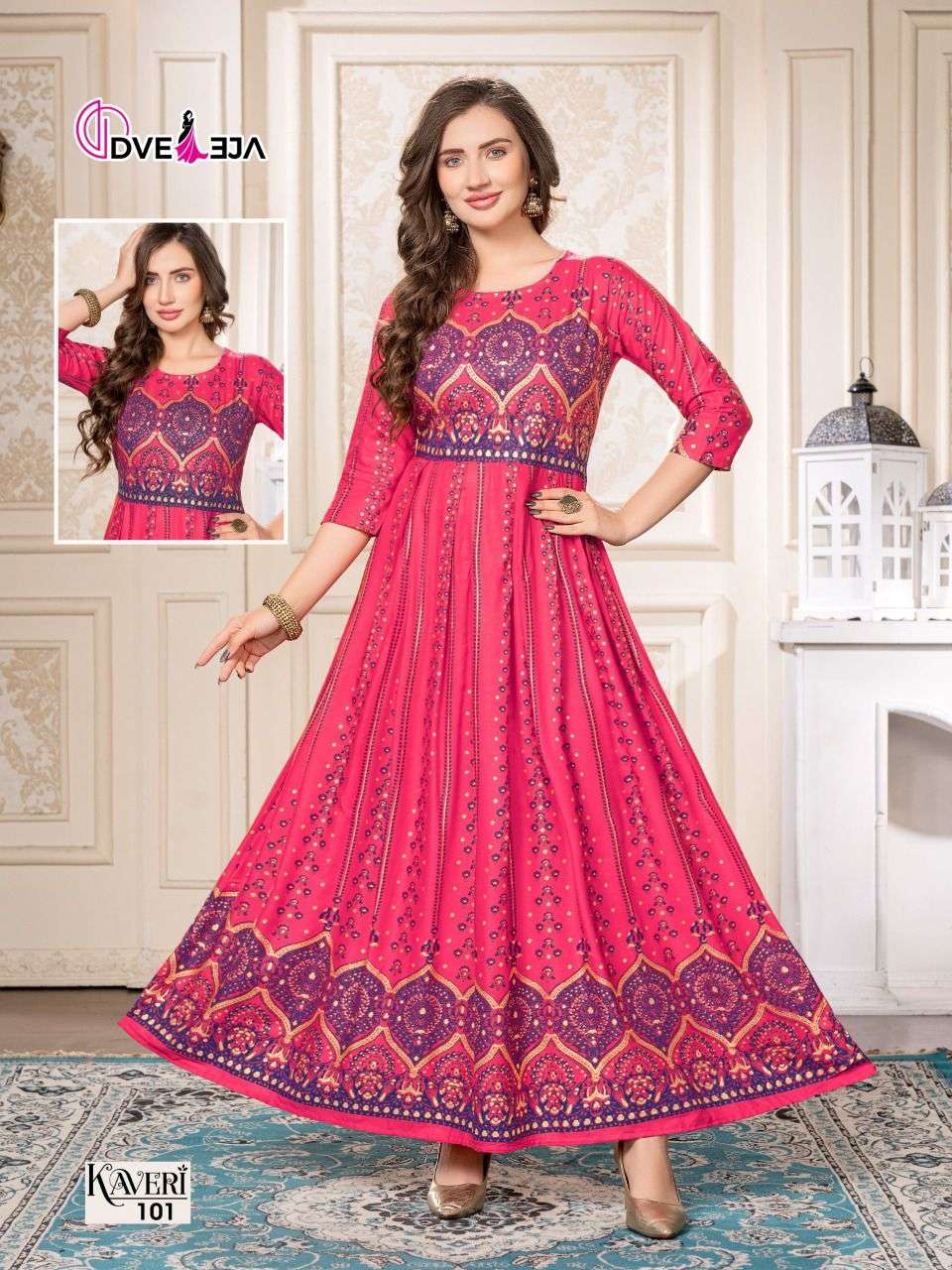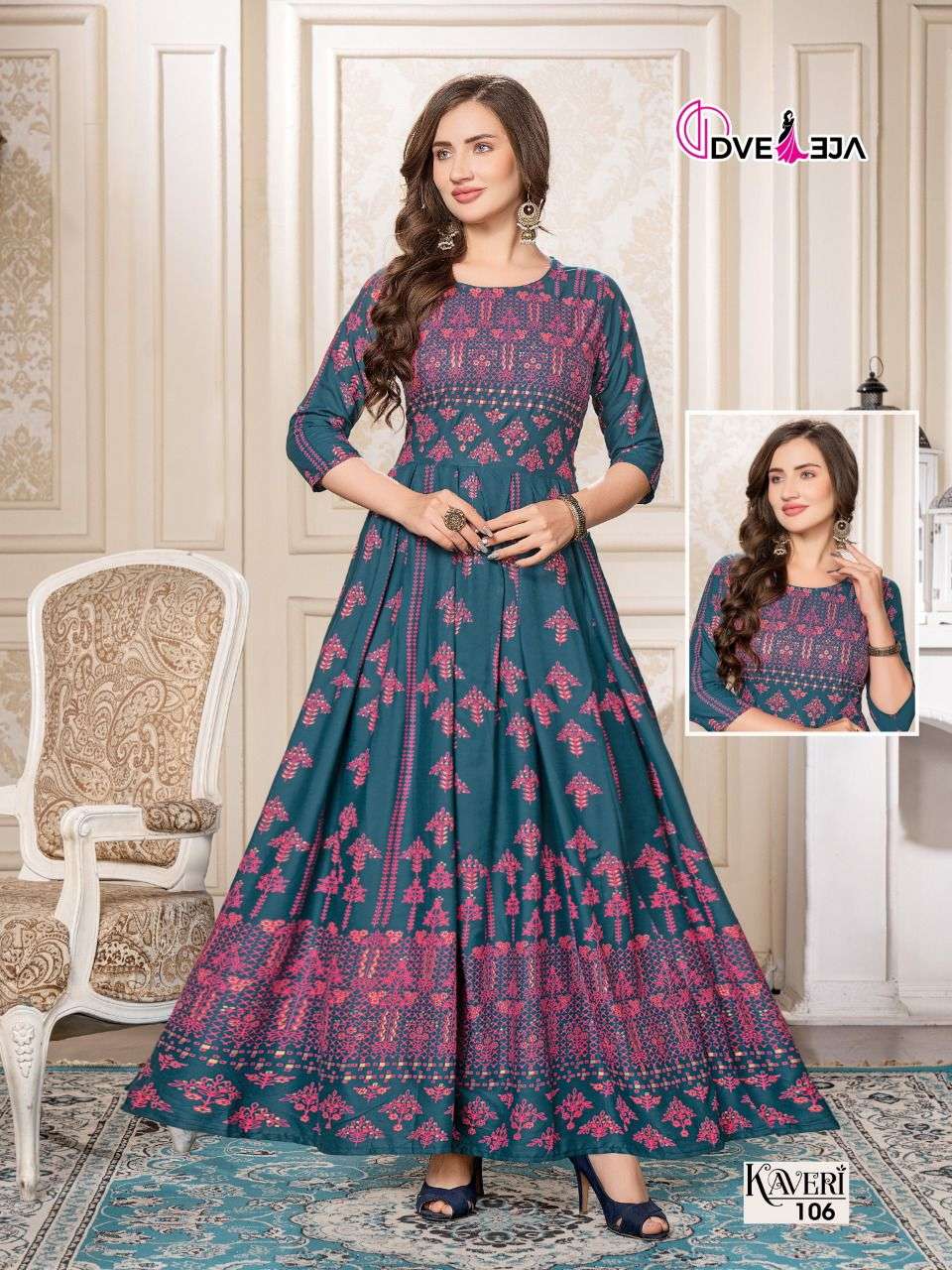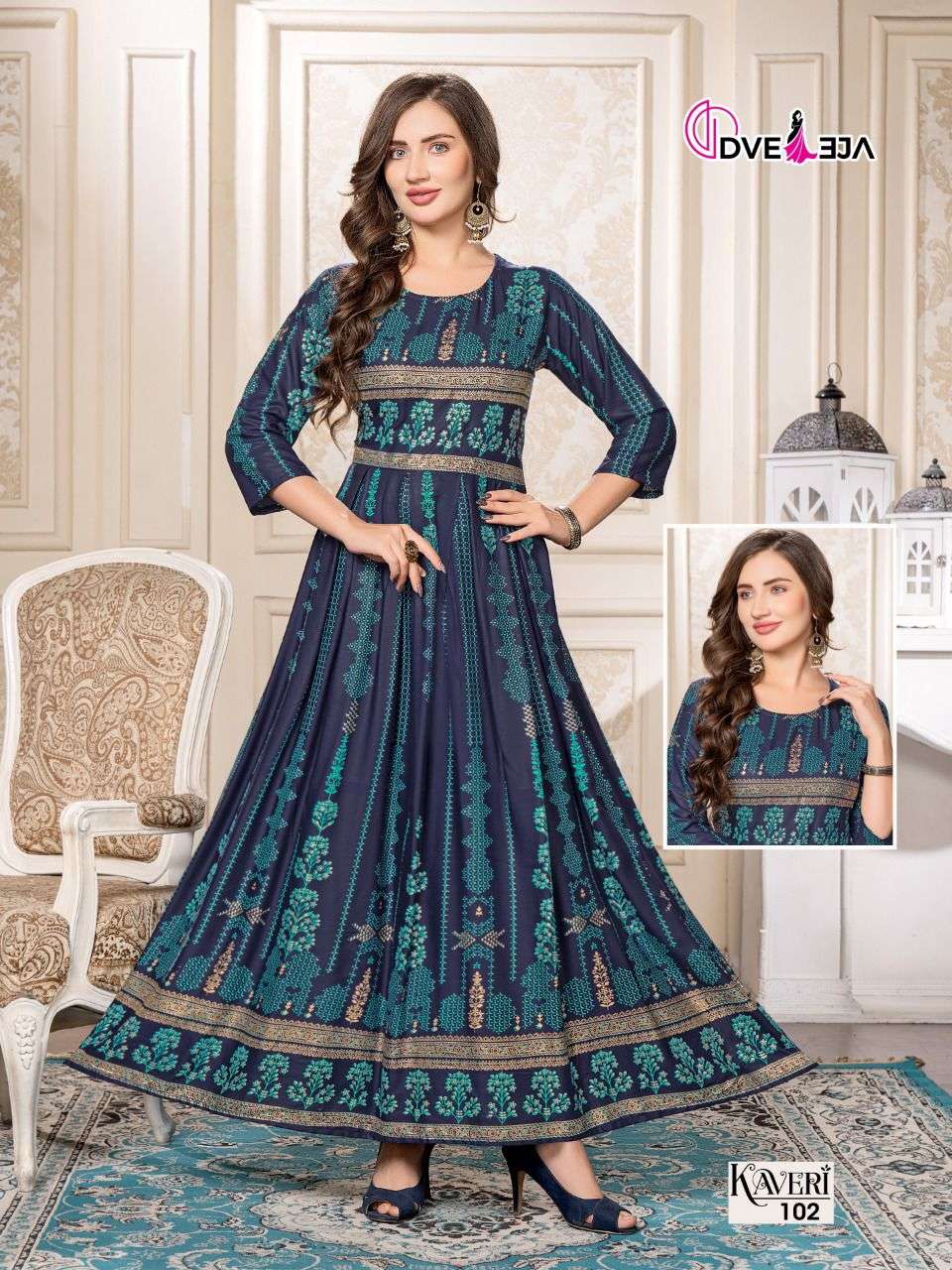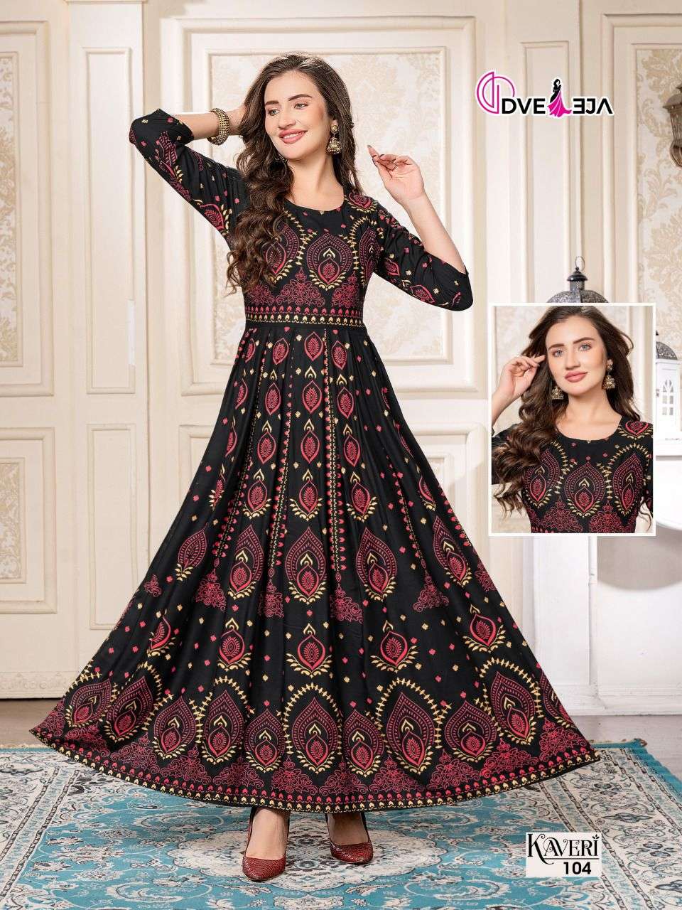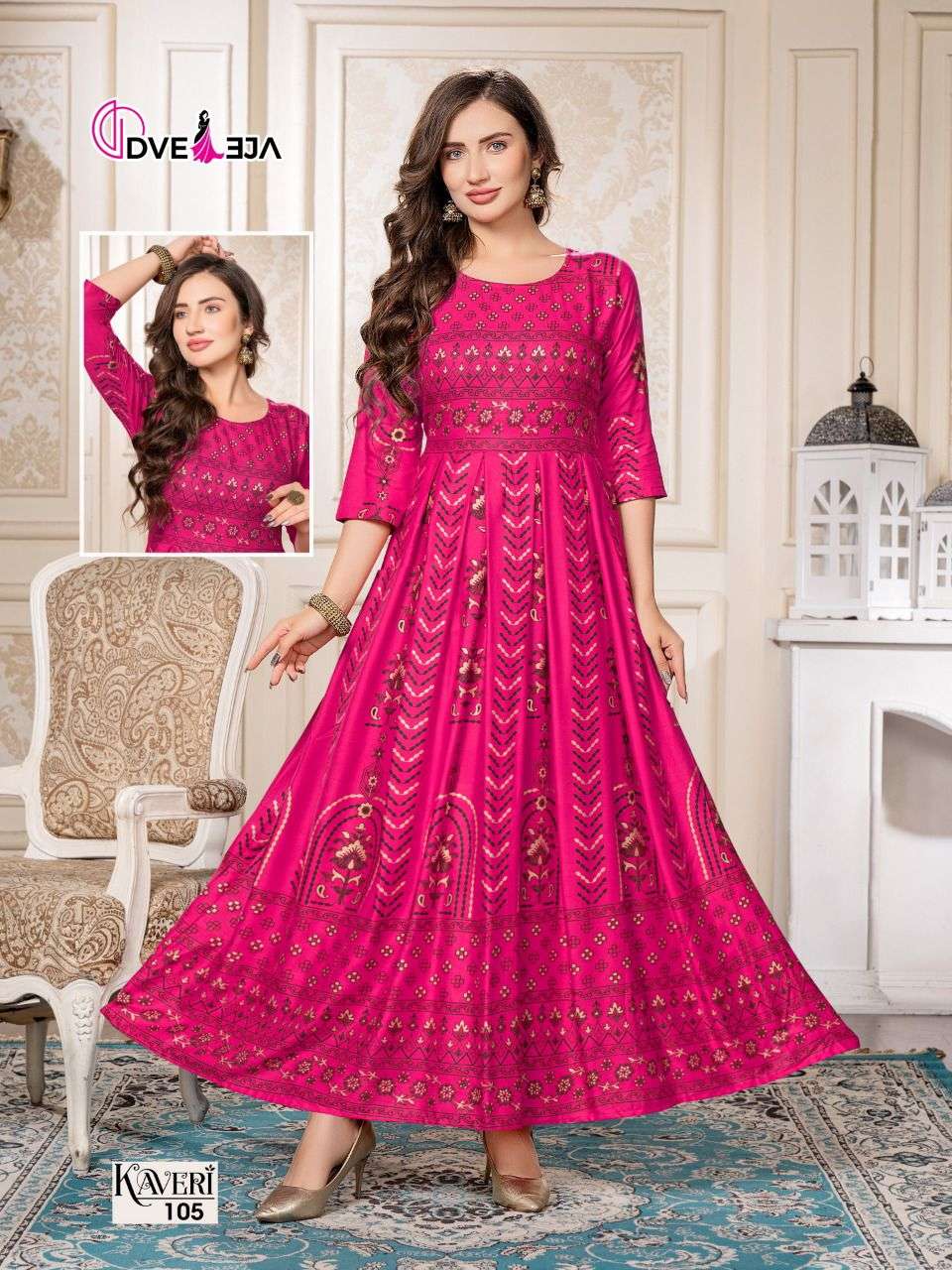 A secure waist, ankle-skimming gowns are in town! Twirl perfect , these easy breezy gowns are ready to steal the show. DVEEJA FASHION presents -KAVERI CATALOG NAME - 💃🏻 KAVERI 💃🏻 SPEC - FULL LONG GHERA KURTI FABRIC - HEAVY REYON LENGTH : 52" RATE - 540/- |