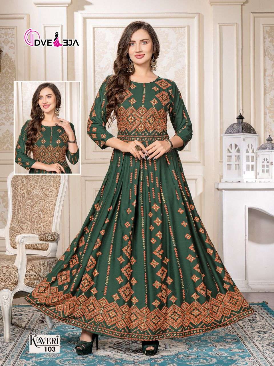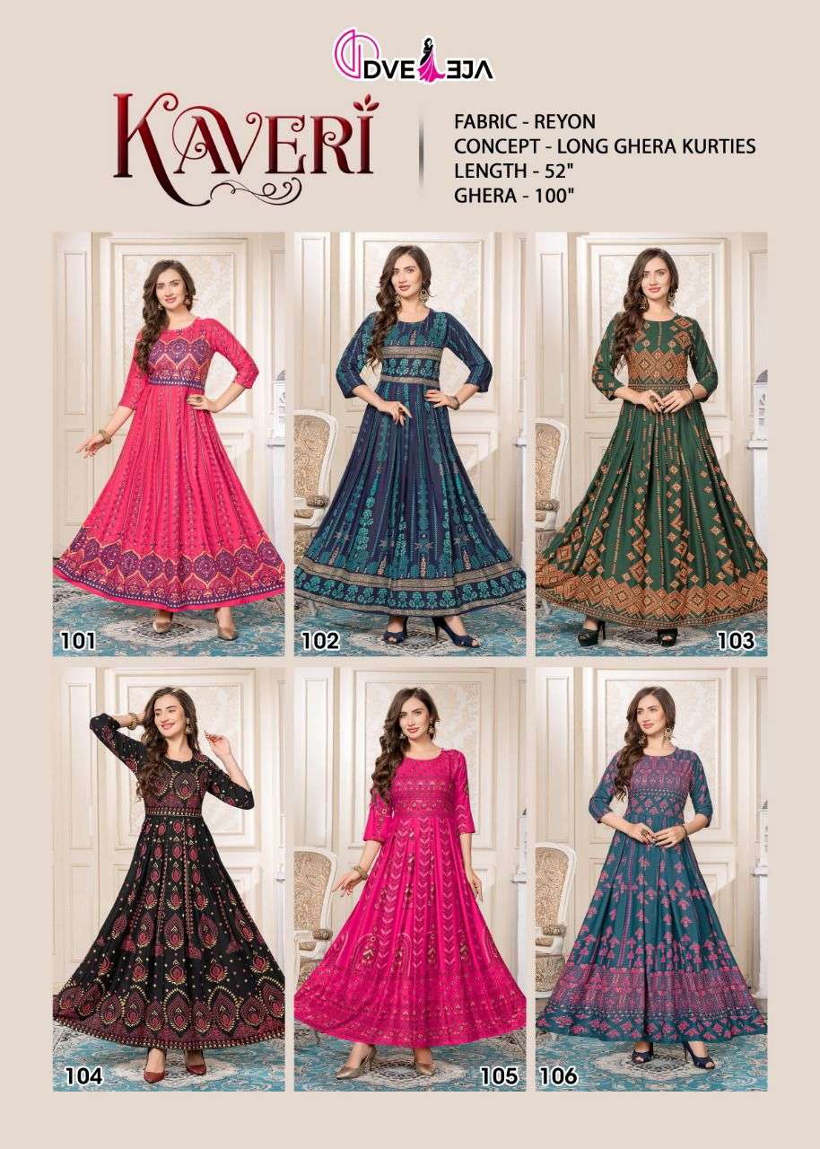 DVEEJA KAVERI HEAVY REYON FULL LONG GHERA KURTI CATALOG WHOLESALER BEST RATE