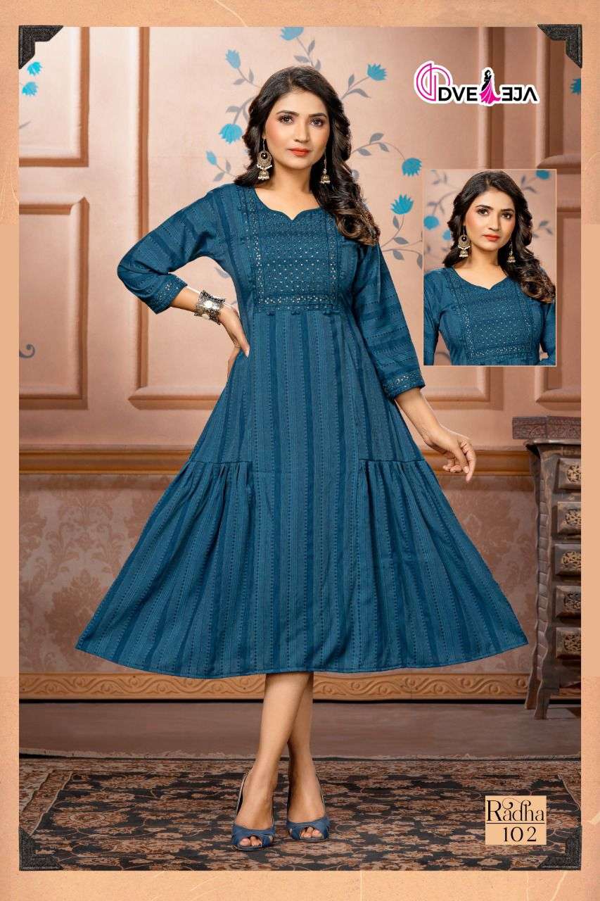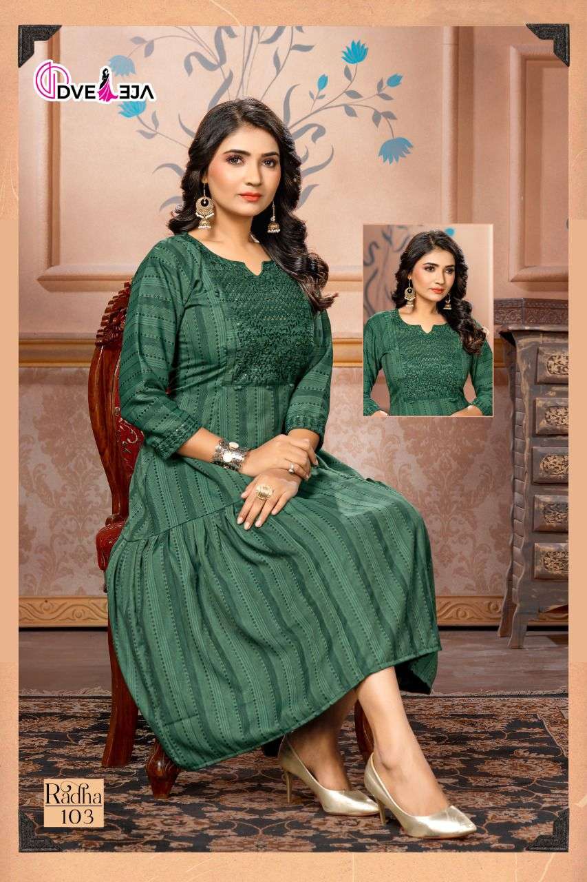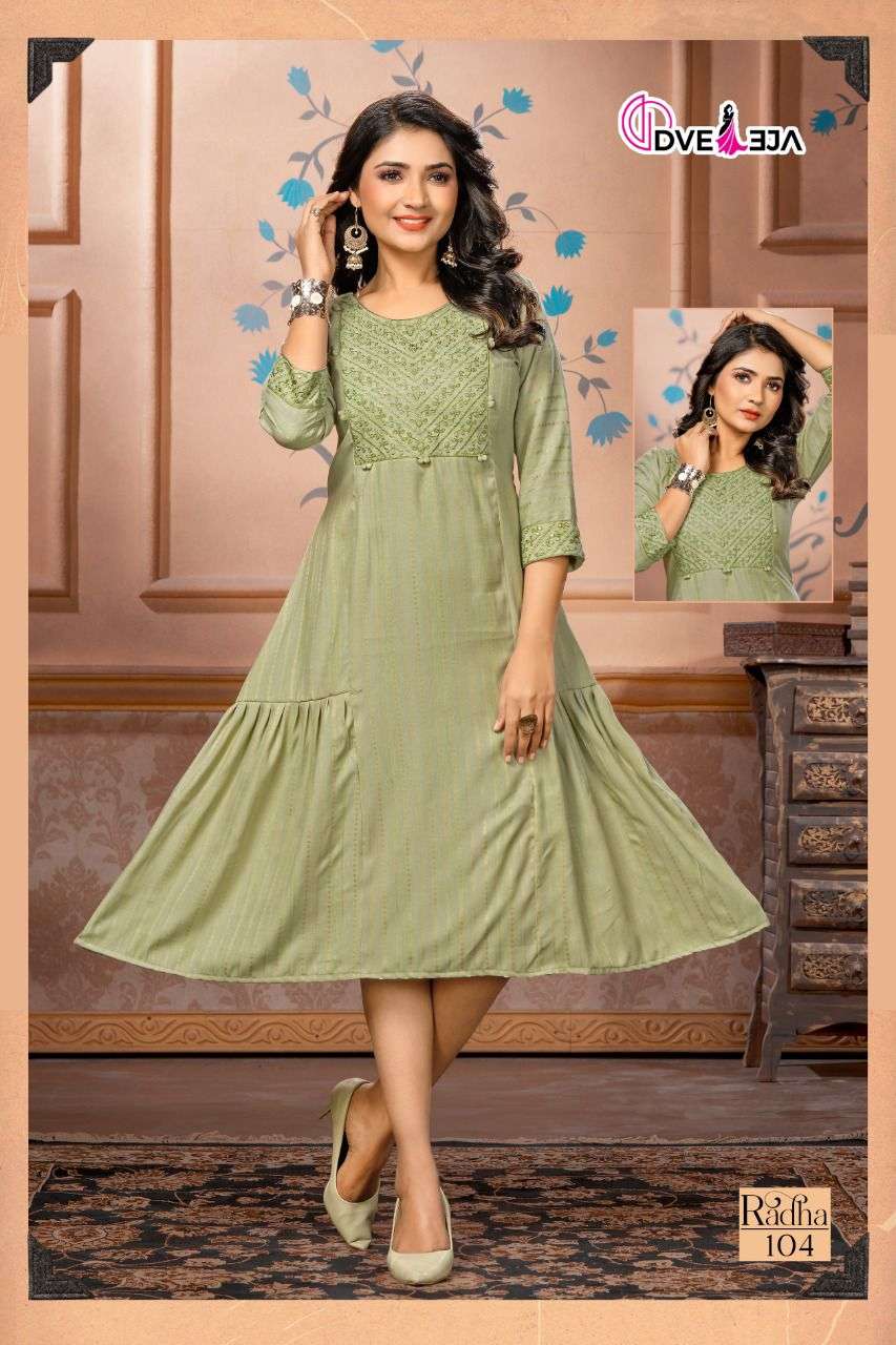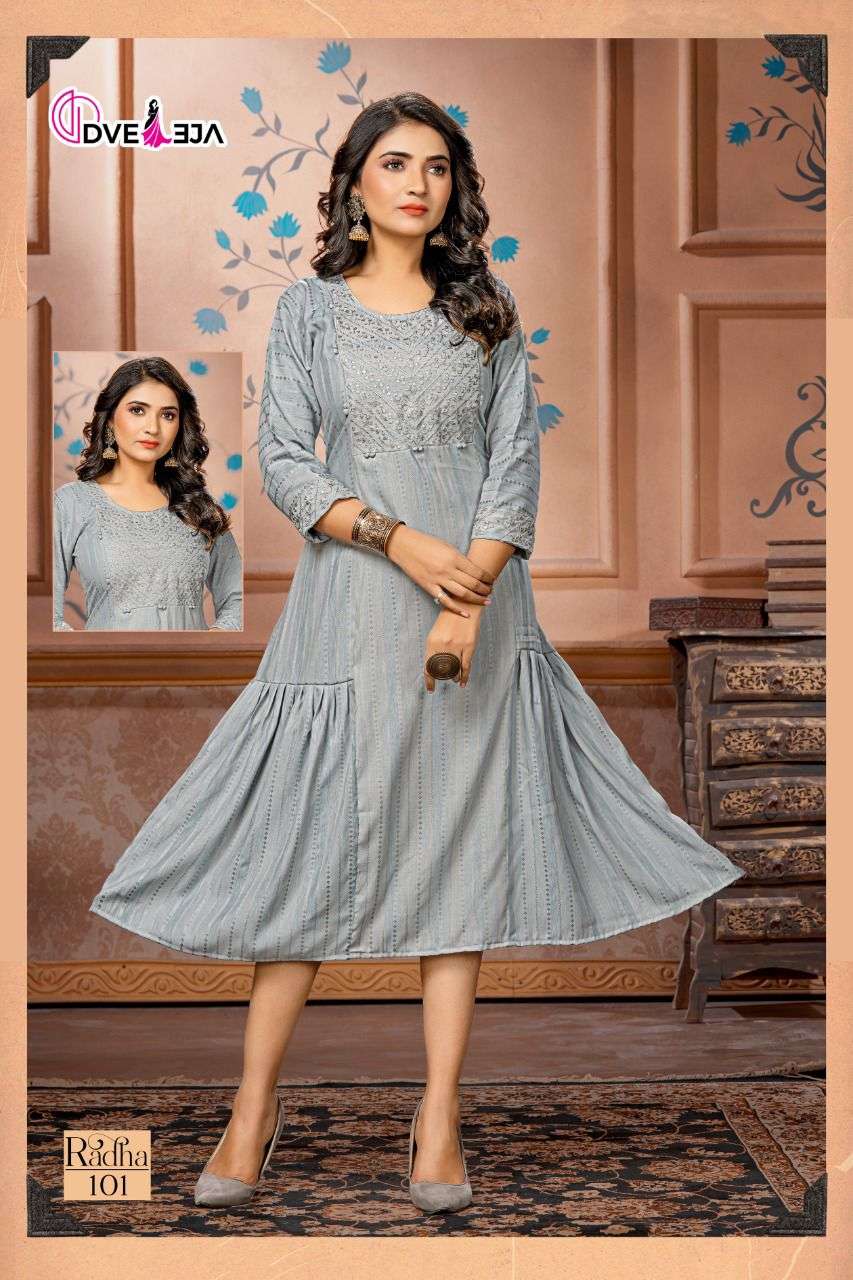DVEEJA RADHA VOL-1 FANCY REYON DOBBY KURTI CATALOG WHOLESALER BEST RATE