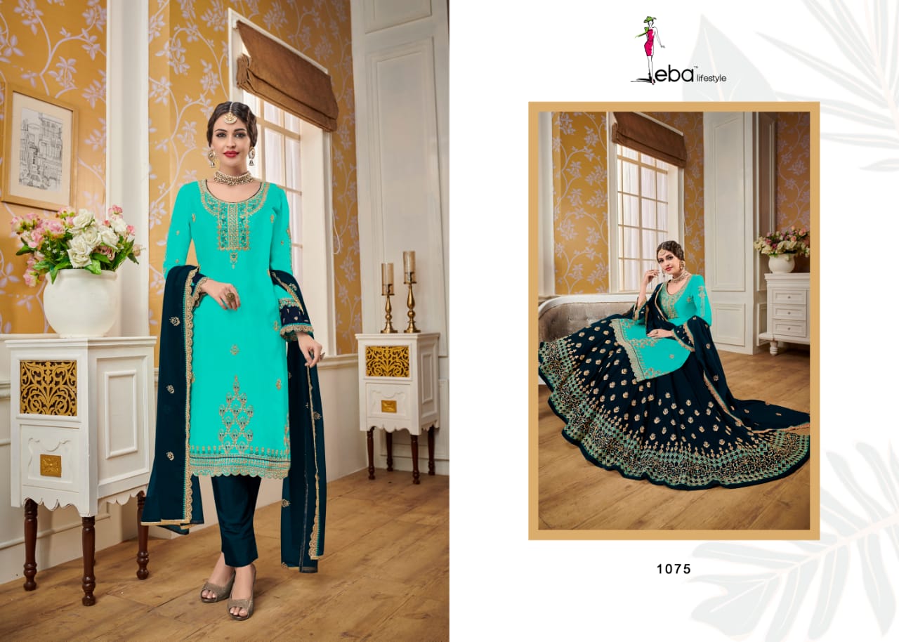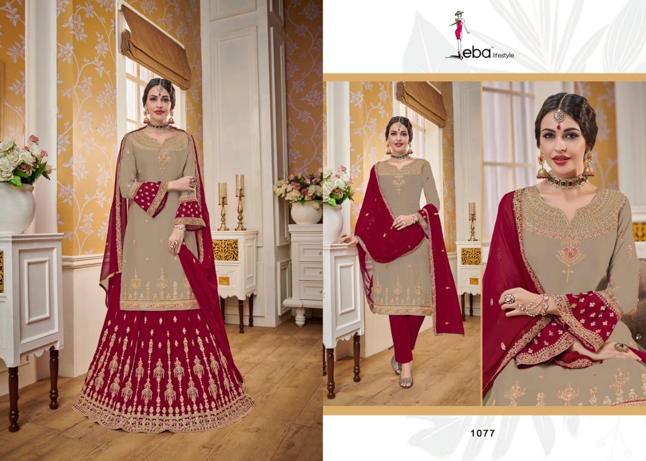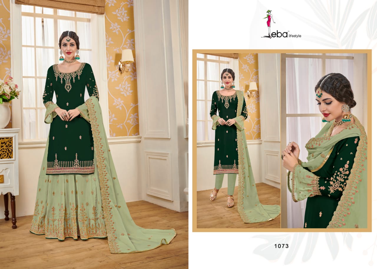 Hurma vol - 14 Febric - Top - satin gourgette with hevey embroidery work Duppta- gourgette with hevey embroidery work lenga- gourgette front & back embroidery work Bottom- santoon 2 in 1 inner - santoon Price - 2095/- Gst extra Regards eba lifestyle |
