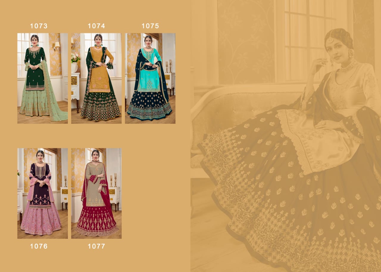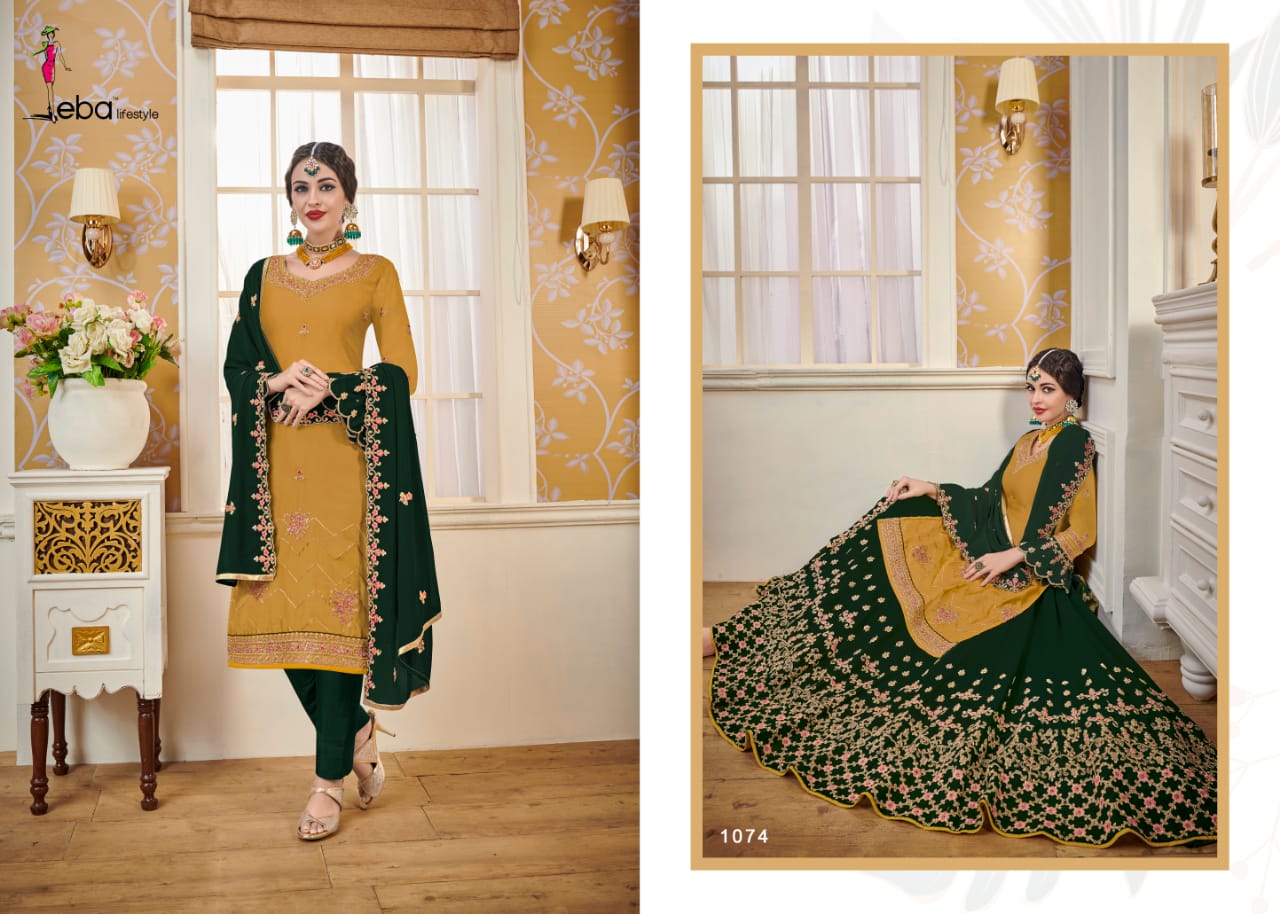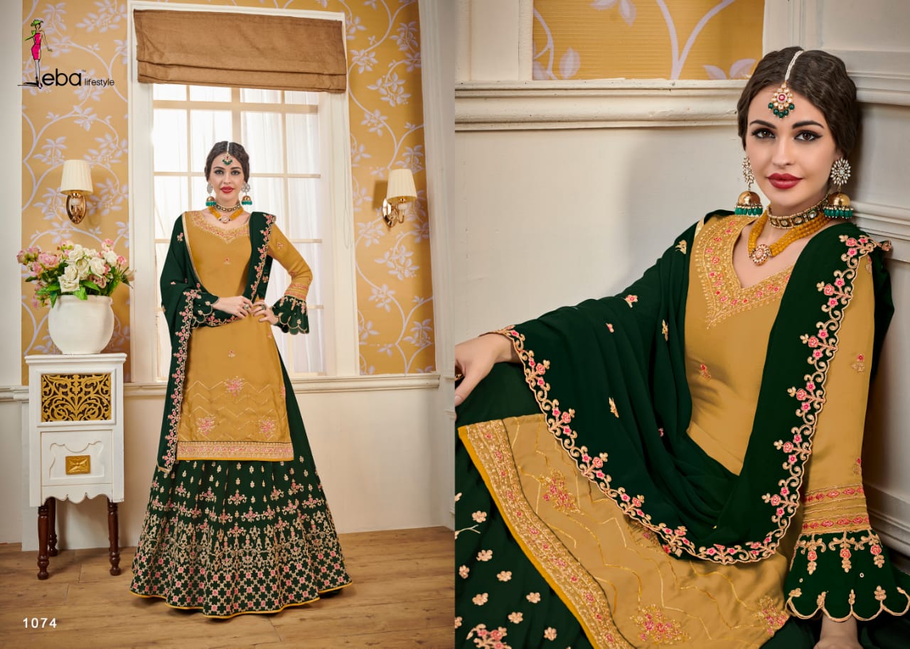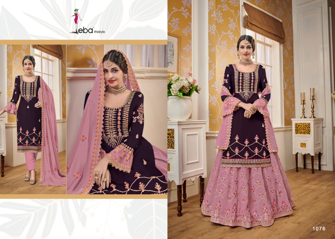 Hurma vol - 14 Febric - Top - satin gourgette with hevey embroidery work Duppta- gourgette with hevey embroidery work lenga- gourgette front & back embroidery work Bottom- santoon 2 in 1 inner - santoon Price - 2095/- Gst extra Regards eba lifestyle |