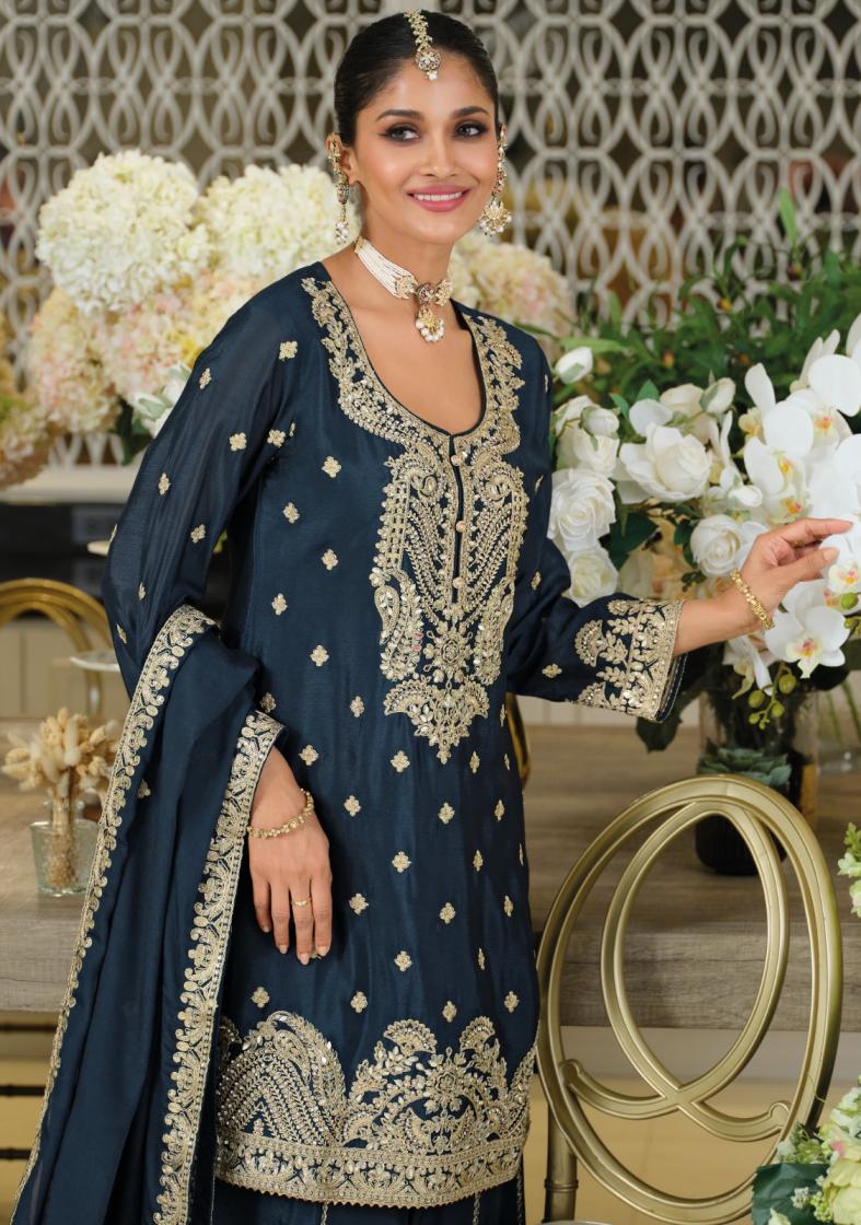 eba lifestyle afrozeh chinon readymade festive plazzo 3pcs dress