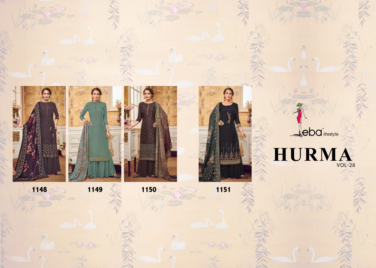 eba lifestyle present new volume hurma vol 28 Top - pure viscose chinon with chicwence emboidery work Dupta - chinon digital print Bottom&inner-dull santoon Rate - 1395/- GST EXTRA Dispatching- Monday |