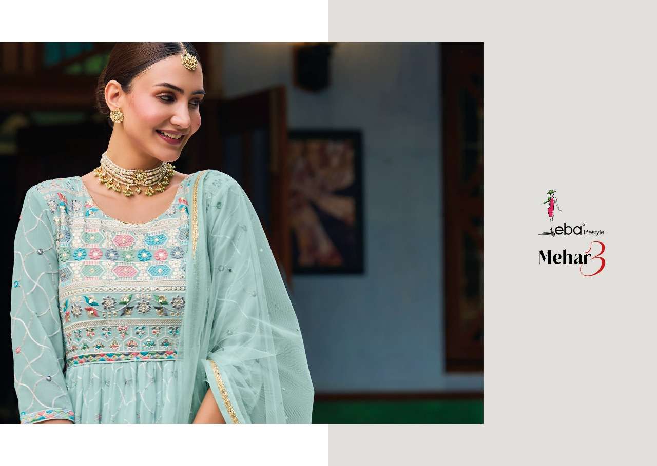 eba lifestyle mehar vol 3 georgette nyra cut 3 piece readymade suit