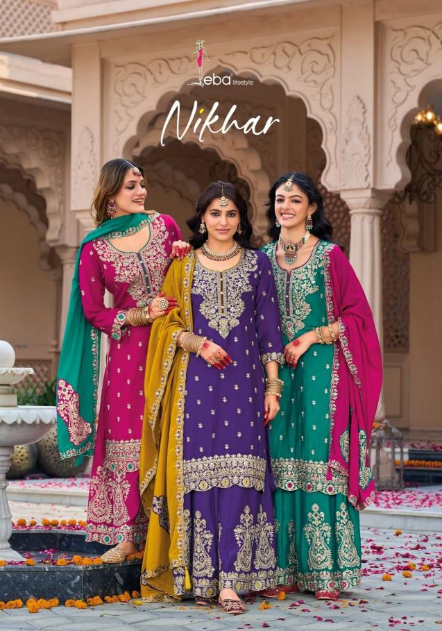 eba lifestyle nikhar readymade chinon fashionable plazzo 3pcs dress