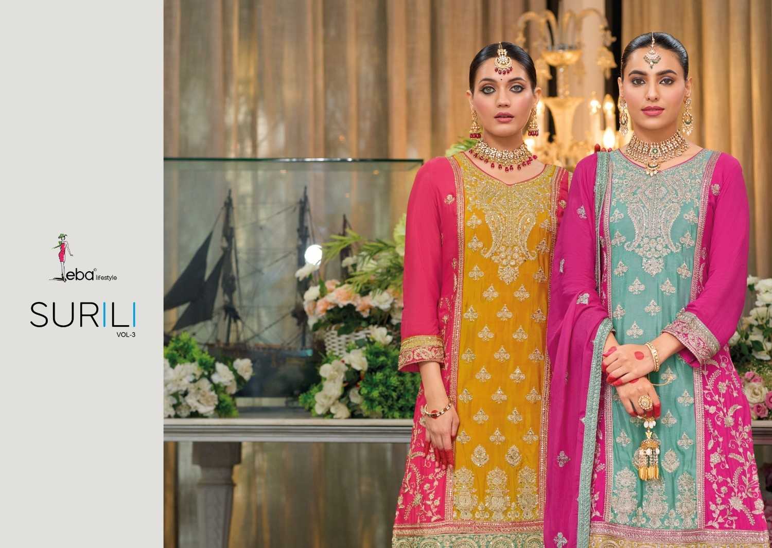eba lifestyle surili vol 3 chinon readymade pakistani plazzo style 3pcs dress