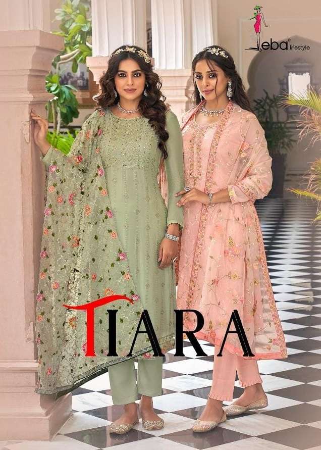 eba lifestyle TIARA Top - foux Georgette & Chinon with emboidery Duppta - organza with hevey emboidery Bottom- Dull santoon SIZE - M 3XL Rate 1799/- By eba lifestyle Surat |