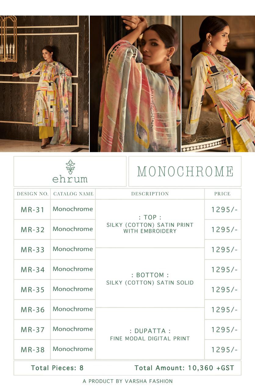 Ehrum By Varsha Fashion Monochrome Silky Cotton Print With Embroidery Work Dress Materials
