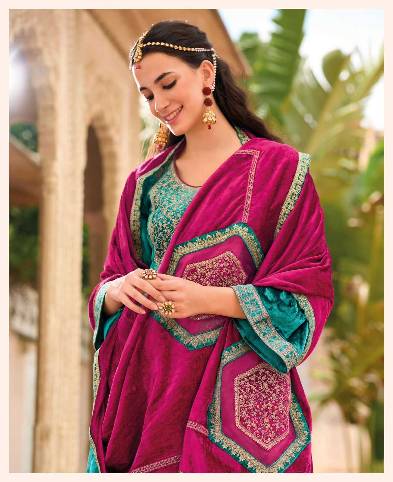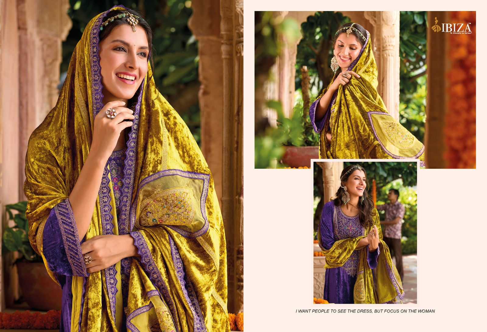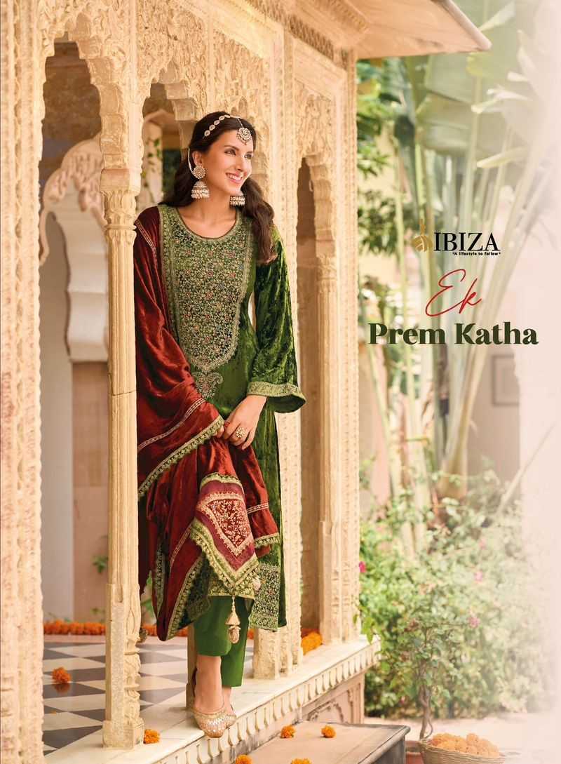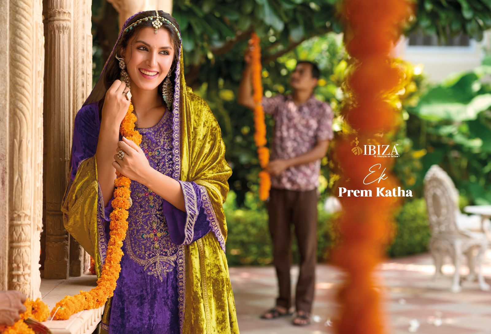 🙏🙏 IBIZA 🙏🙏 NEW SERIES ✌🏻EK PREM KATHA✌🏻 PREMIUM VELVET 👊Fabric Details👊 👗Top:-PURE VISCOSE VELVET DESINER EMBROIDERY WORK BOTTOM:-PURE PASHMINA 🔻Designs:- 6 PCS Rate:-3495/-
