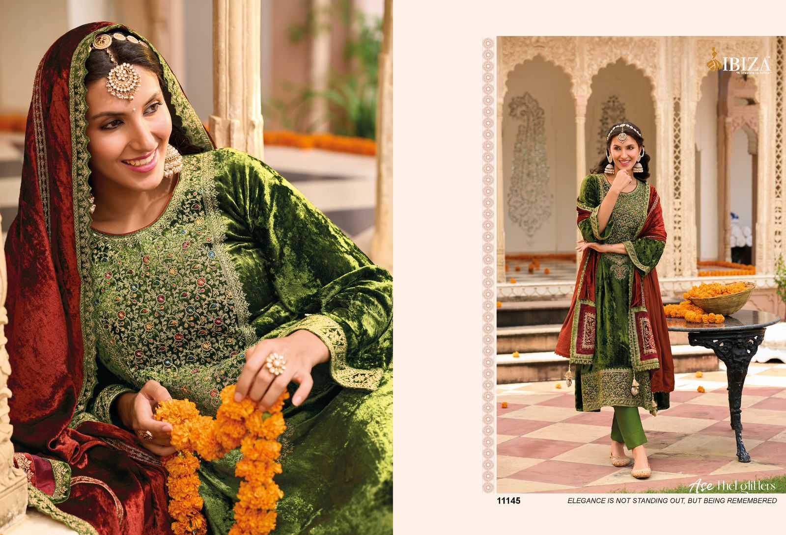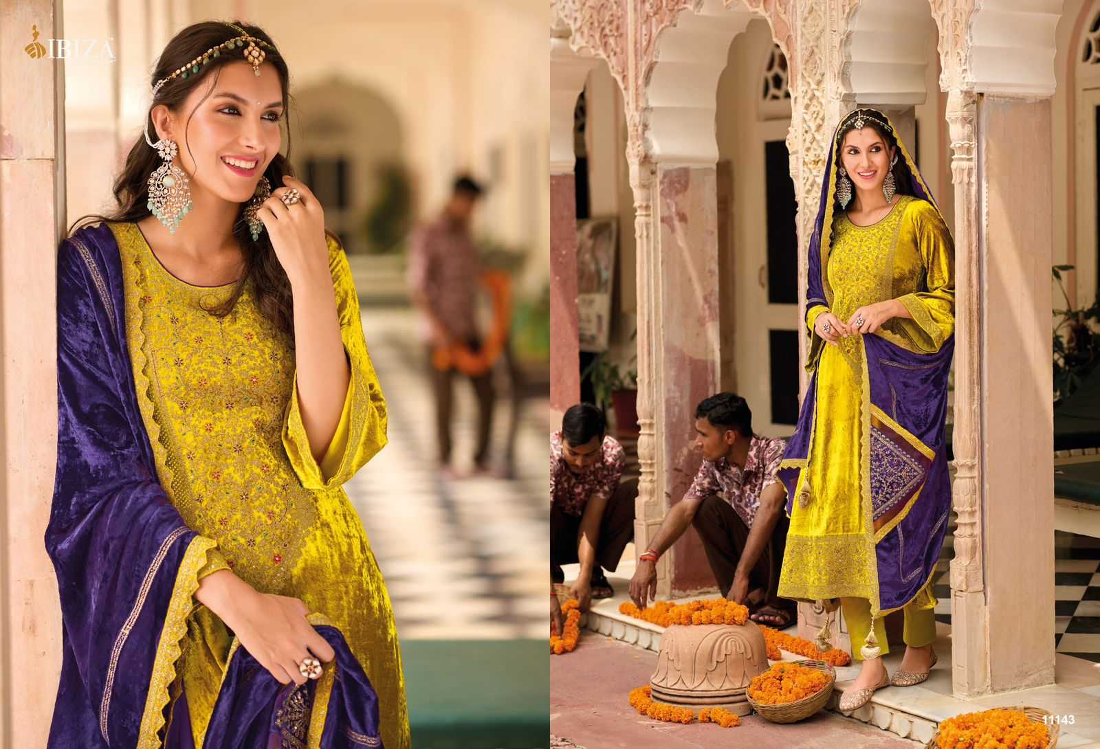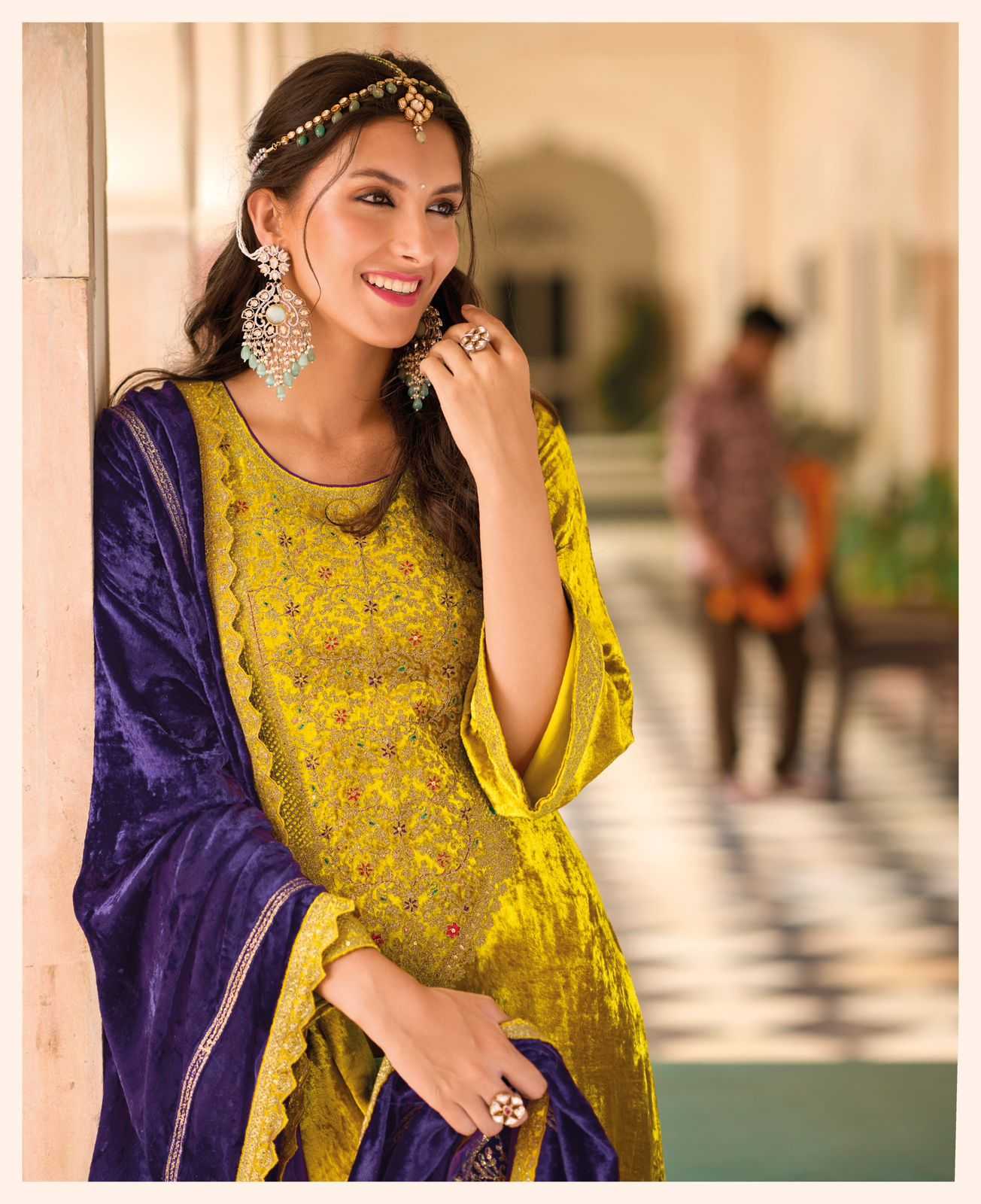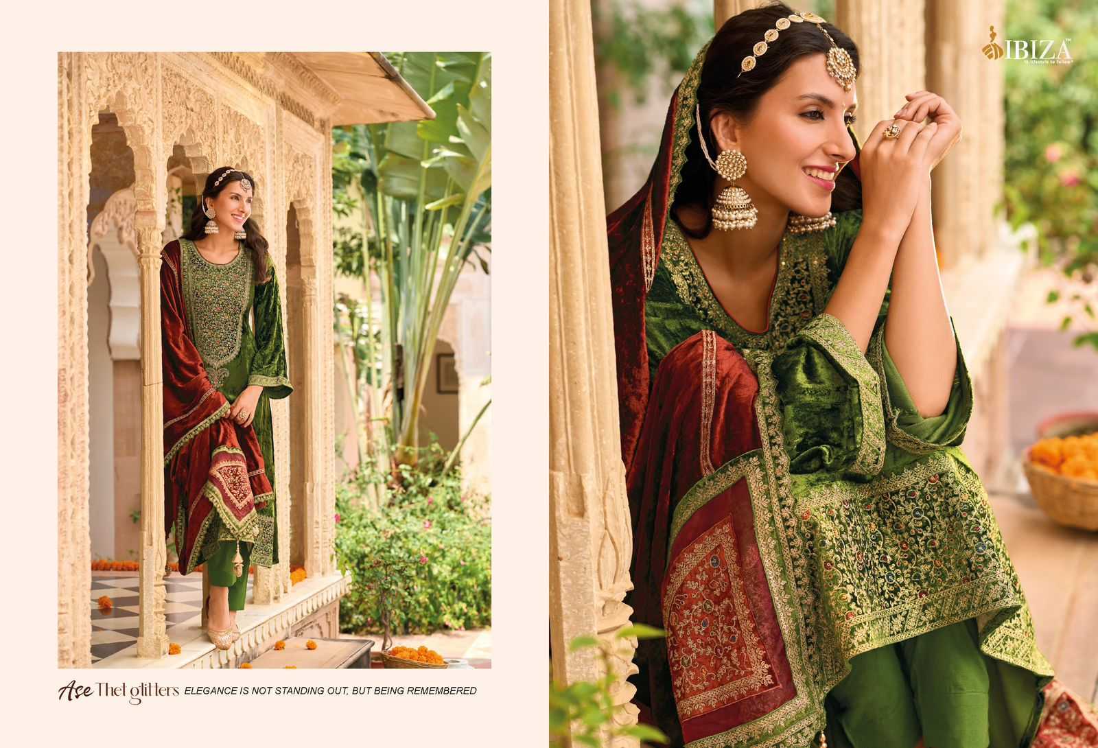 🙏🙏 IBIZA 🙏🙏 NEW SERIES ✌🏻EK PREM KATHA✌🏻 PREMIUM VELVET 👊Fabric Details👊 👗Top:-PURE VISCOSE VELVET DESINER EMBROIDERY WORK BOTTOM:-PURE PASHMINA 🔻Designs:- 6 PCS Rate:-3495/-