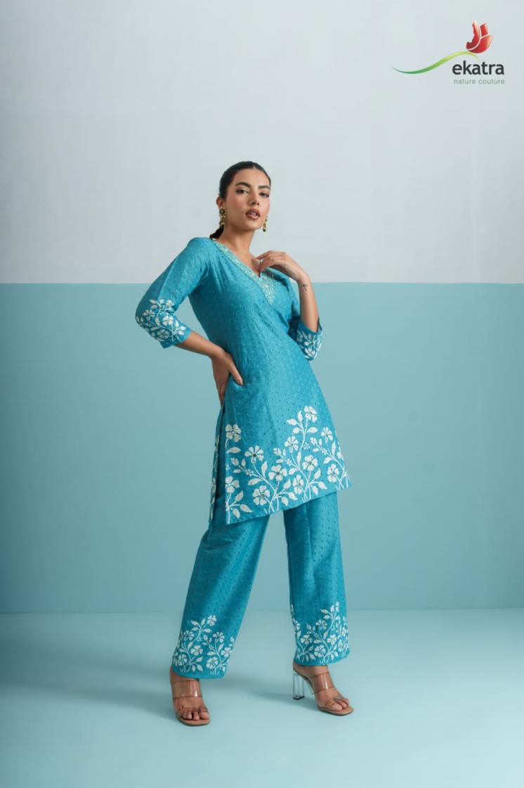 BOOK CATALOGUE EKATRA CO-ORD SETS ON KRISHNA CREATION. CALL ON +91-8866778727.