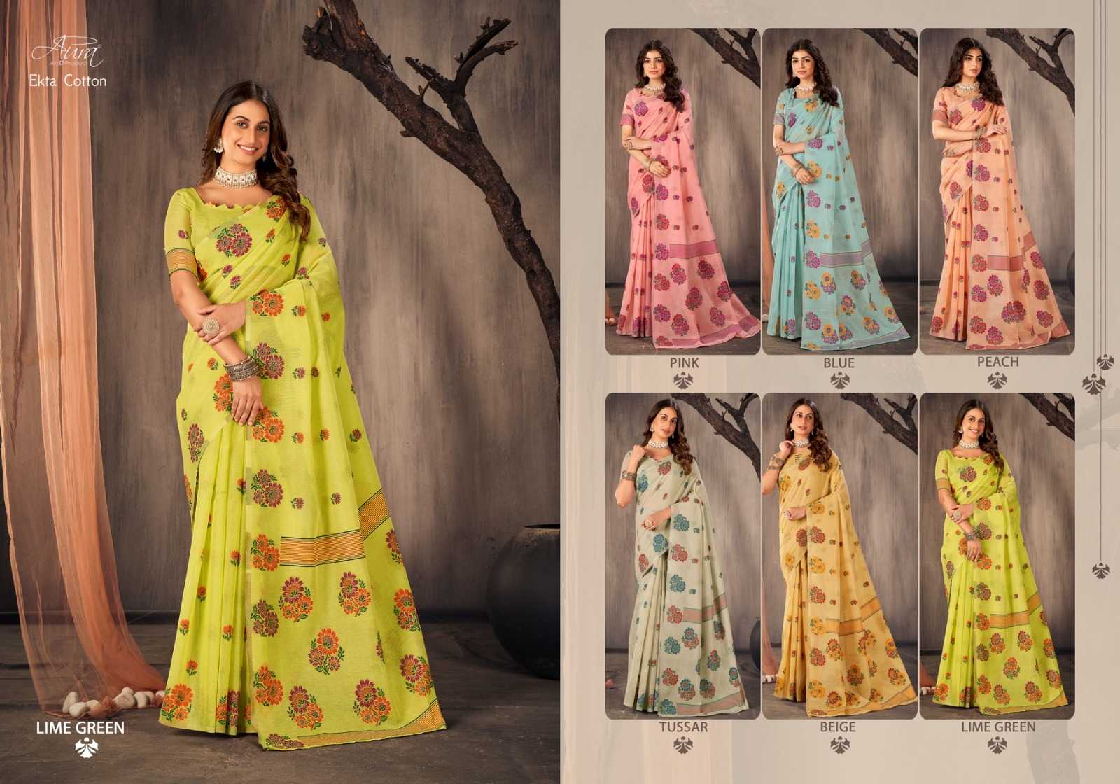 ekta cotton by aura beautiful casual wear cotton sarees