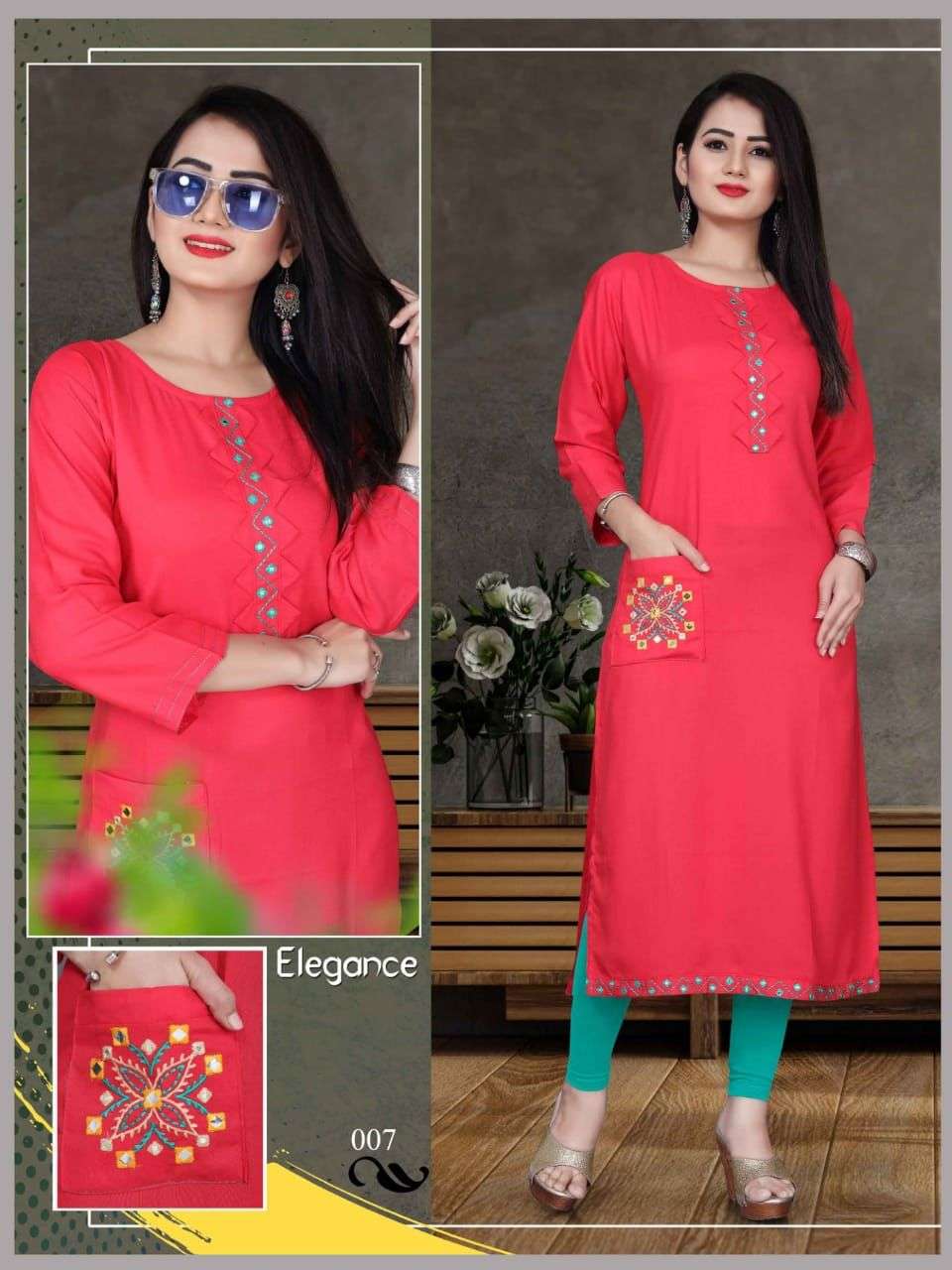 ELEGANCE HEAVY RAYON WWORK KURTI CATALOG WHOLESALER BEST RATE