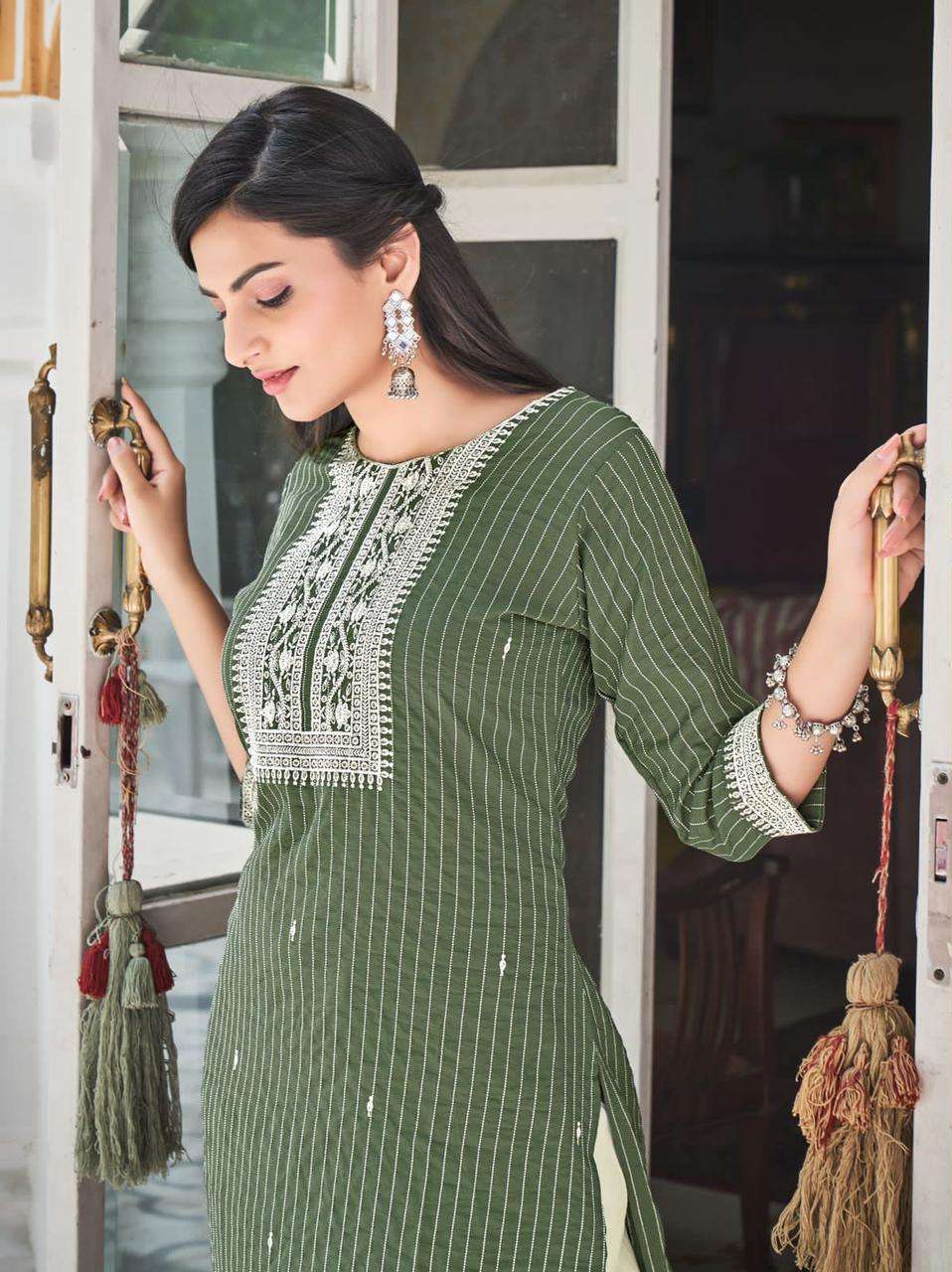 *Fabric :- Top- Poly viscose Work :-Fine Embroidery work on Top & Bottom 4pcs catalogue Size- M, L, Xl, 2xl, 3xl, 4xl Length- Top-46” Rate :- 685/-+ 5% Gst will be added on Bill Amt. Please note: 50/- Extra will be added in 3xl and 4xl sizes |