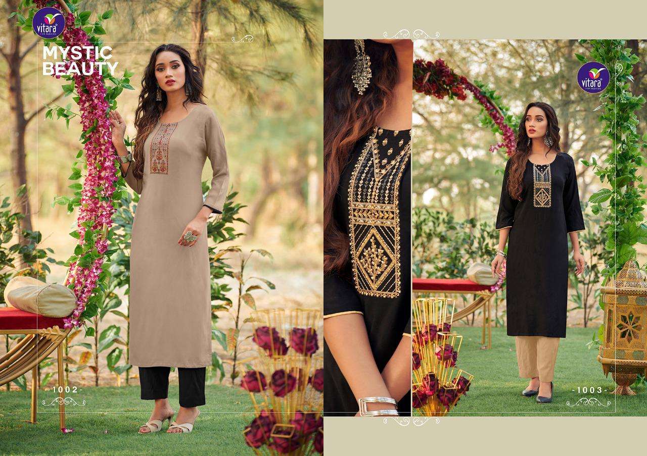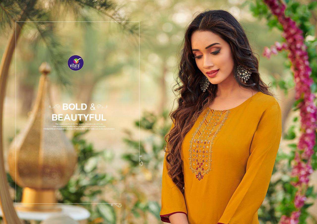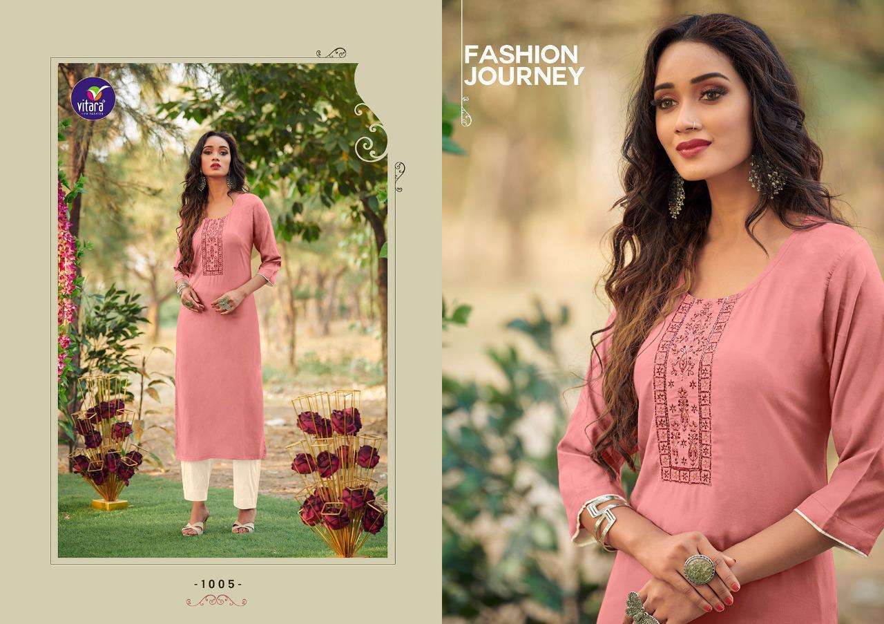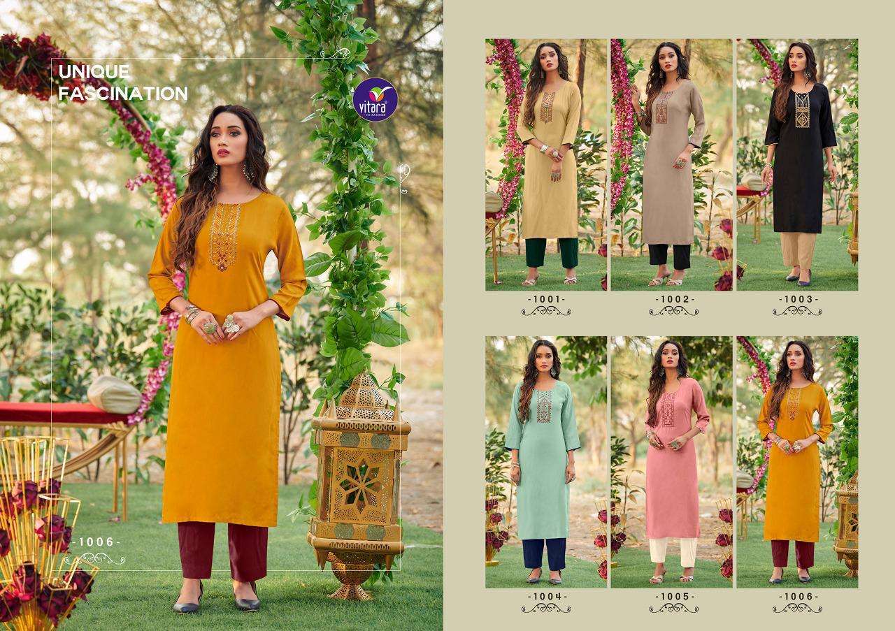 🎀 *vitara fashion launches exclusive designer kurti with pent * 🎀 ☣Designs- 6 🔴Rate:- 599/- |