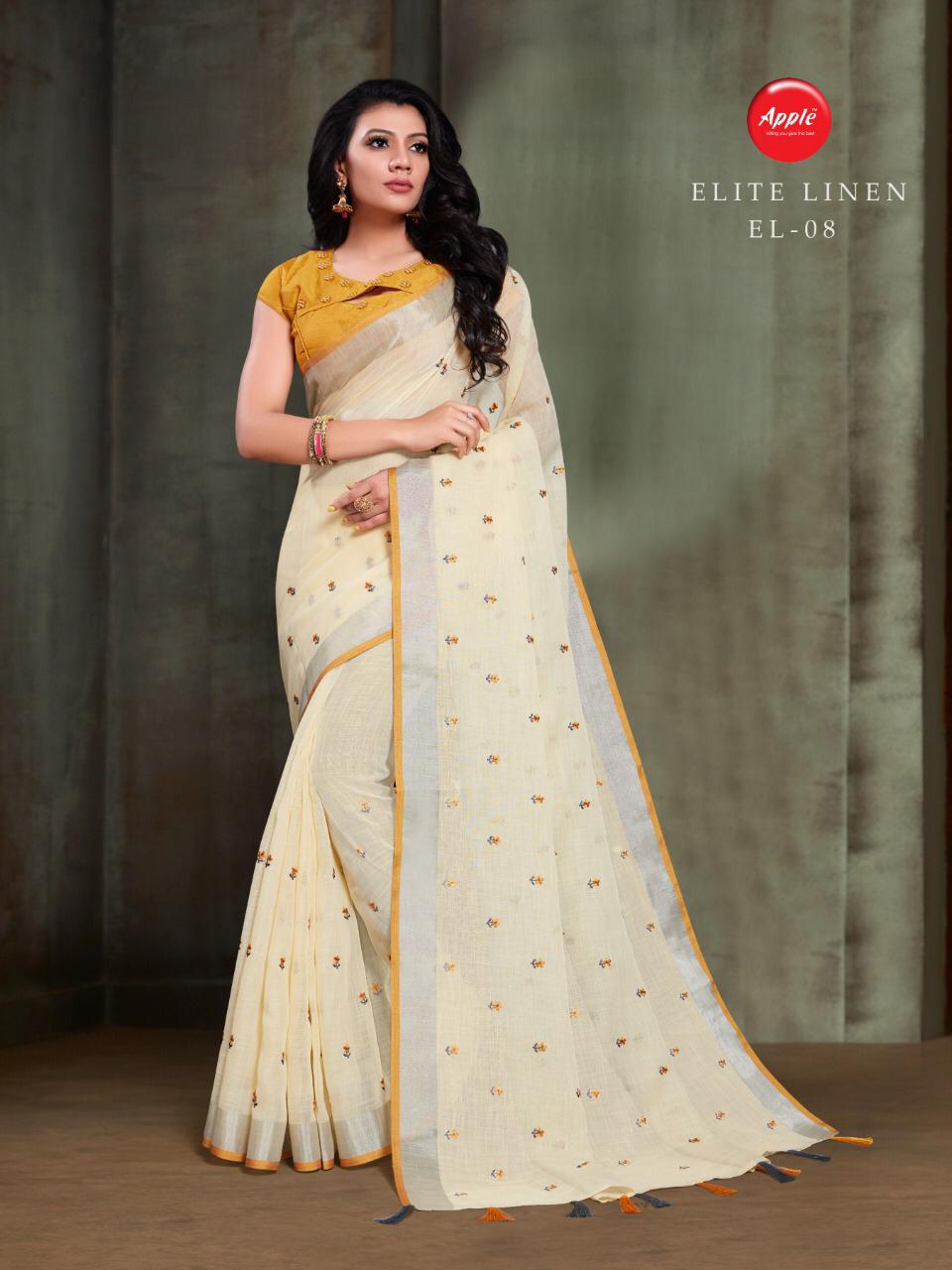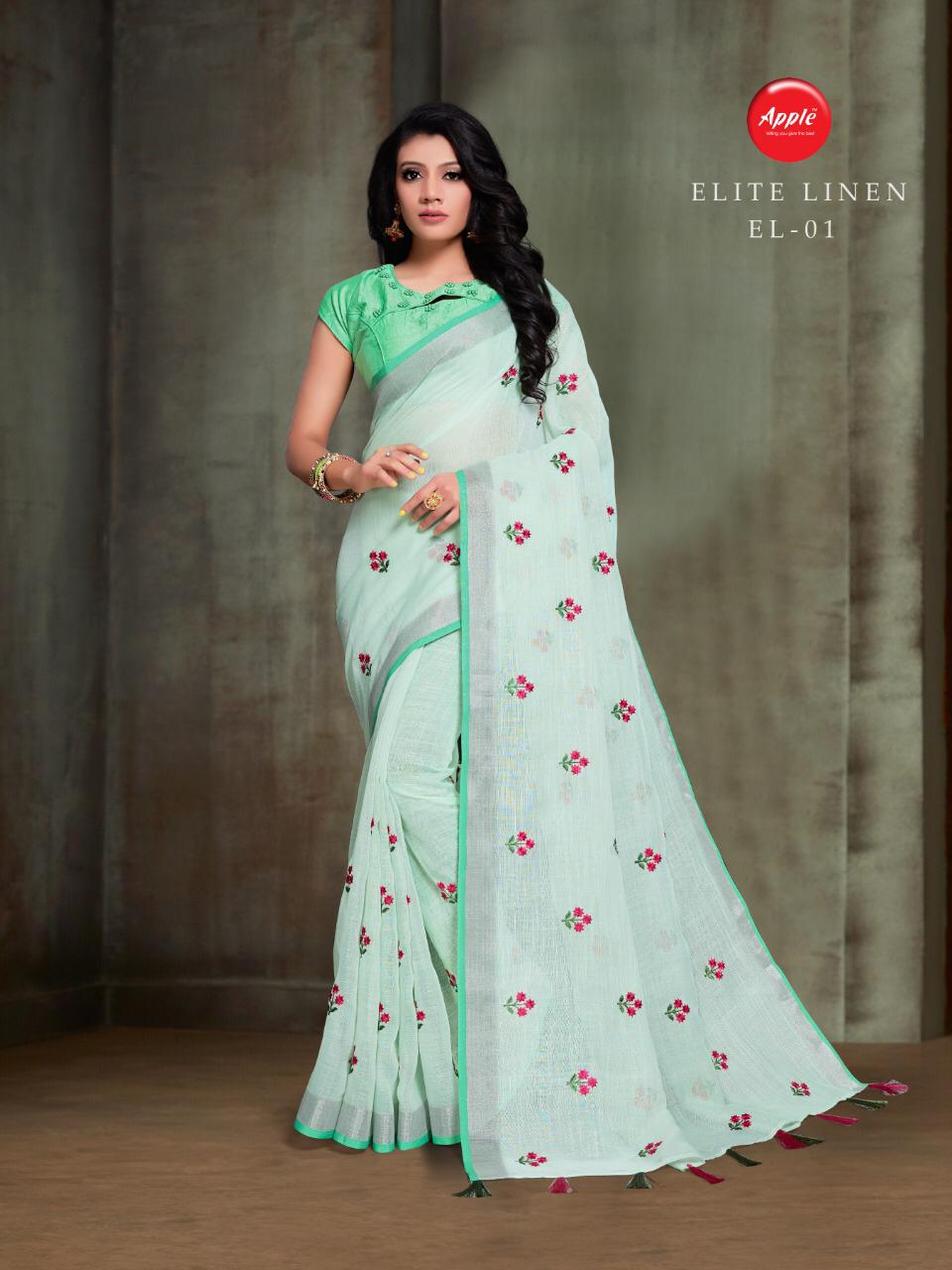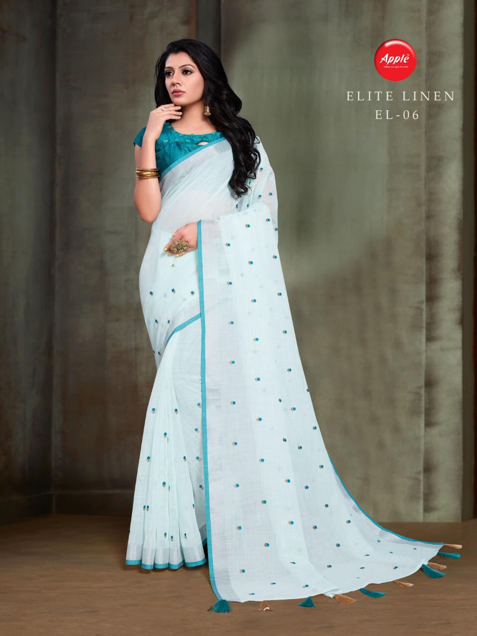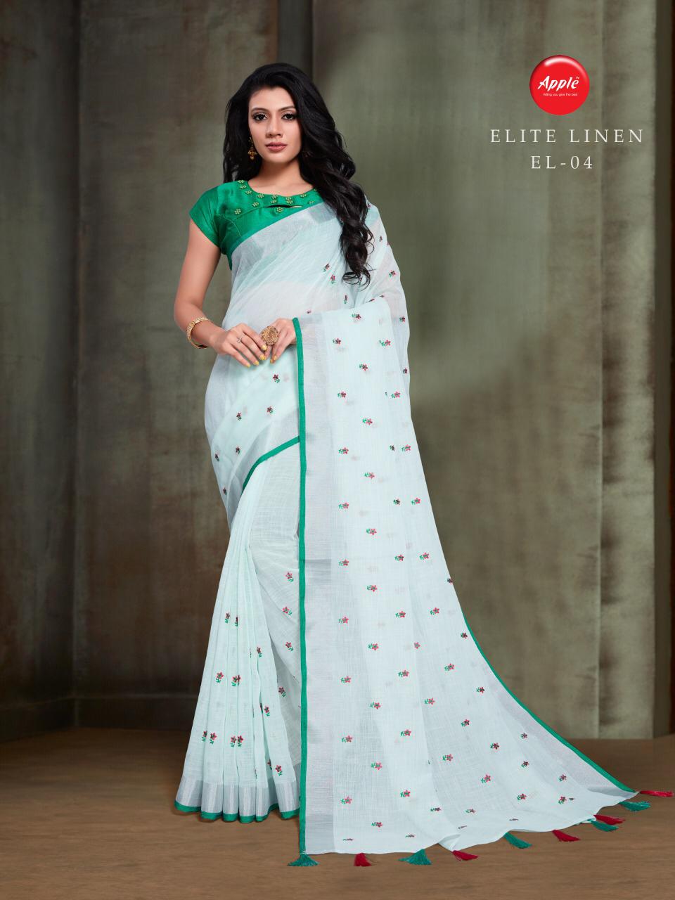 Elite Linen By Apple Linen Silk Saree With Readymade Blouse Collection