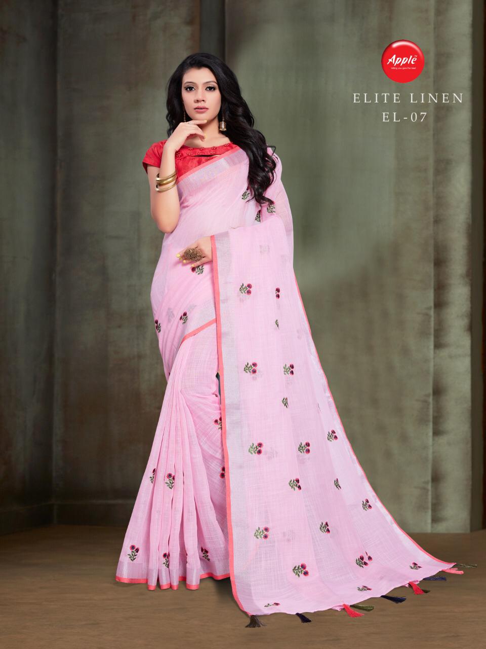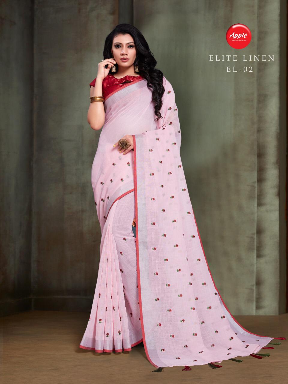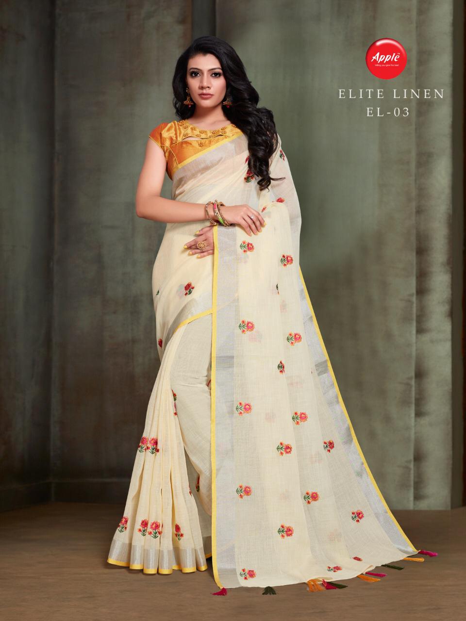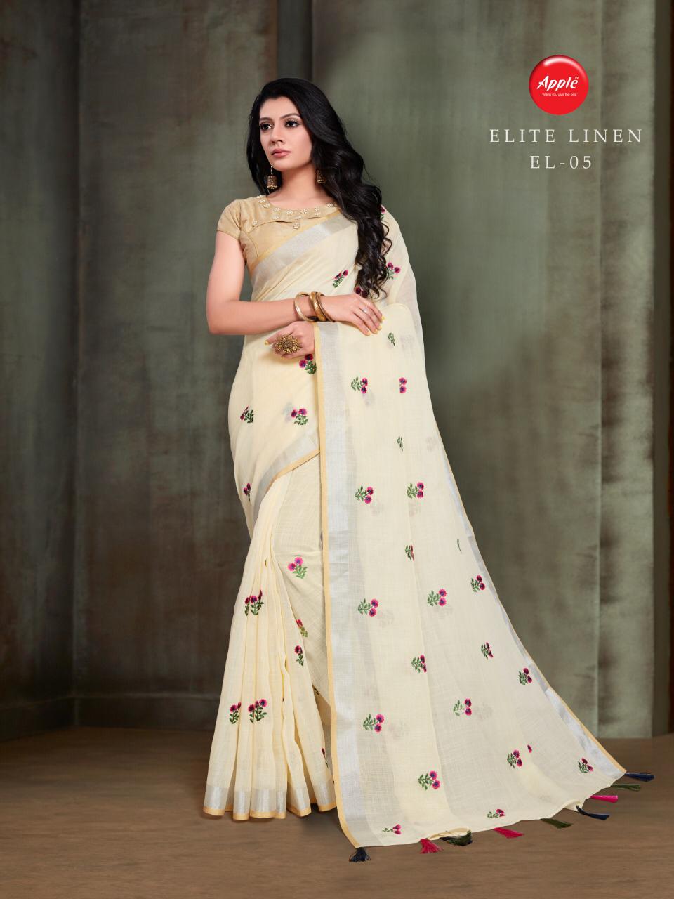 Elite Linen By Apple Linen Silk Saree With Readymade Blouse Collection