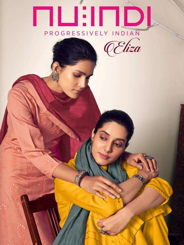 NU-INDI Is back with its lates 3 piece collection, Pure VISCOSE top and bottom embellished with MIRROR WORK embroidery, & MALL CRUSH Dupattas Catlog Name - ELIZA Fabric â VISCOSE SLUB WITH MALL DUPATTA Rate - 990/- No. Of Pieces â 6 Sizes Available - S,M,L, XL, XXL,3XL Full Set only. Wednesday 14,July. Set to set |