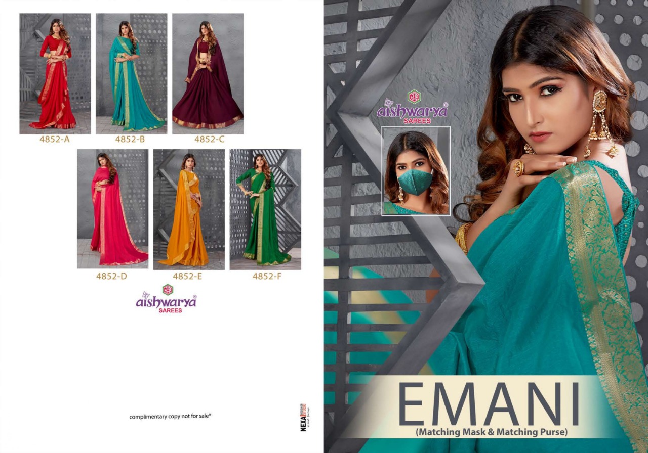 Emani By Aishwarya Vichitra Silk Saree With Matching Mask And Purse Concept