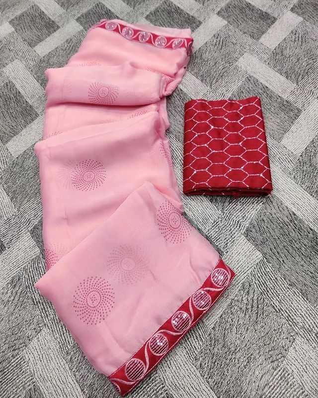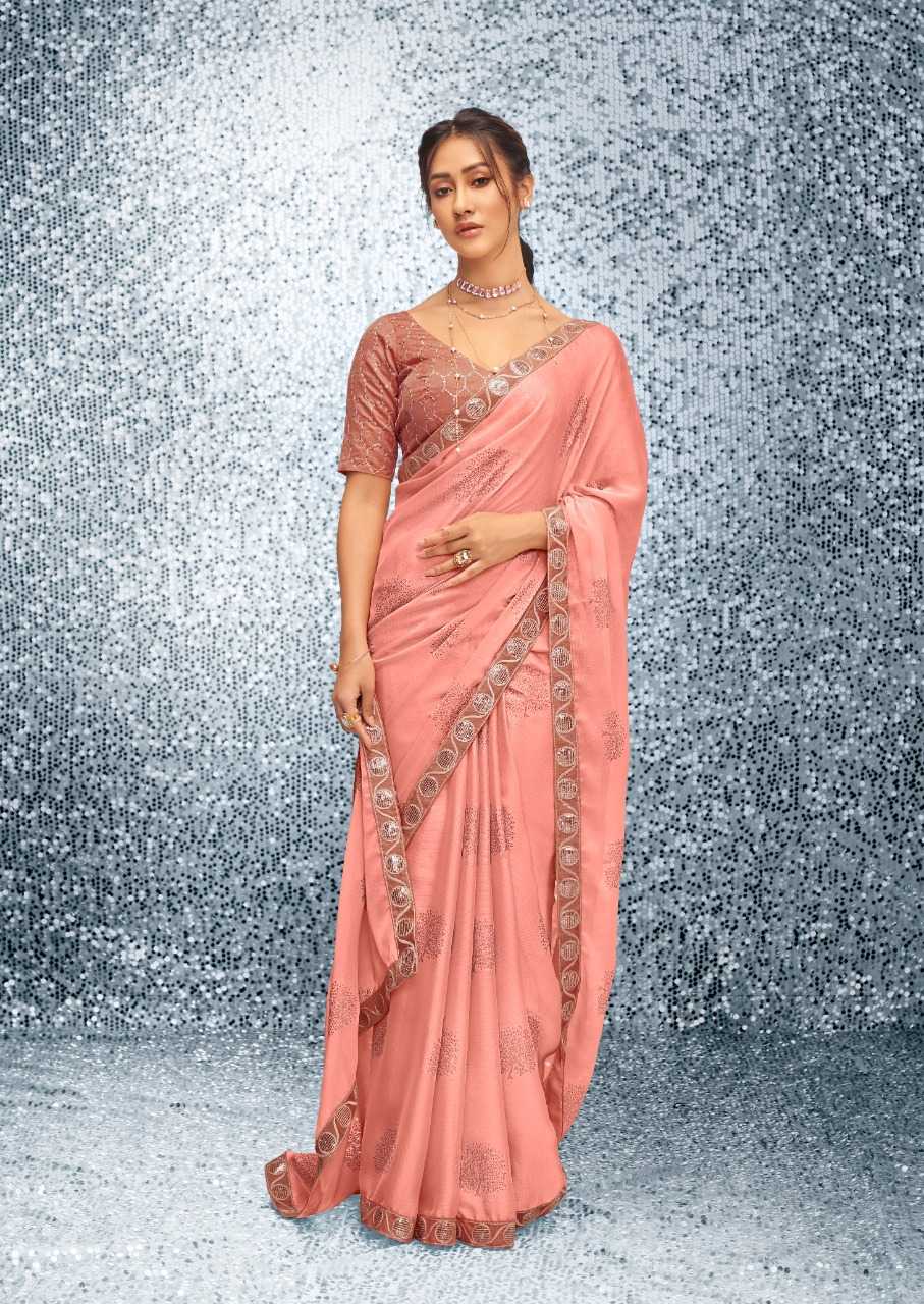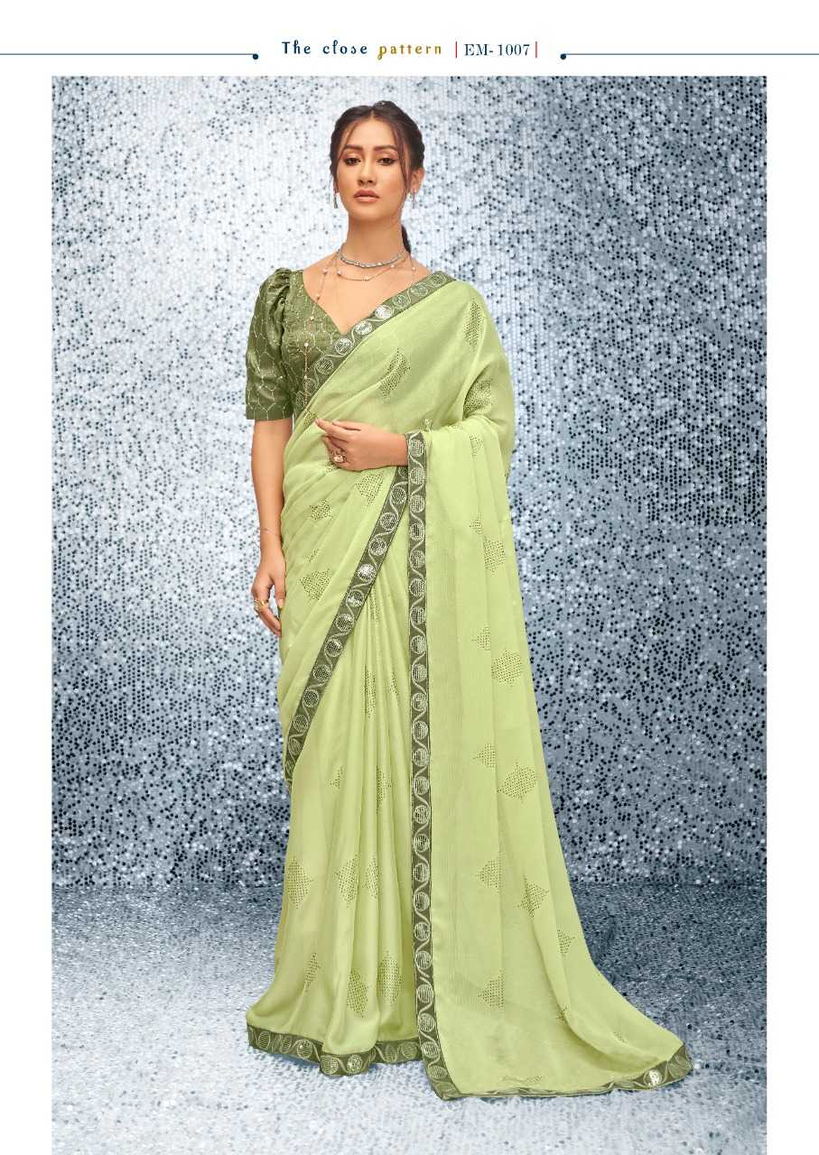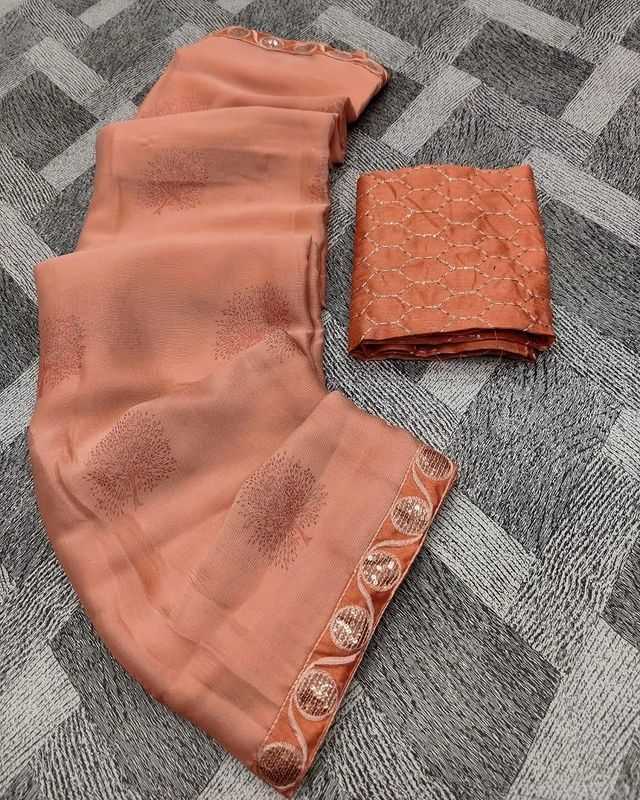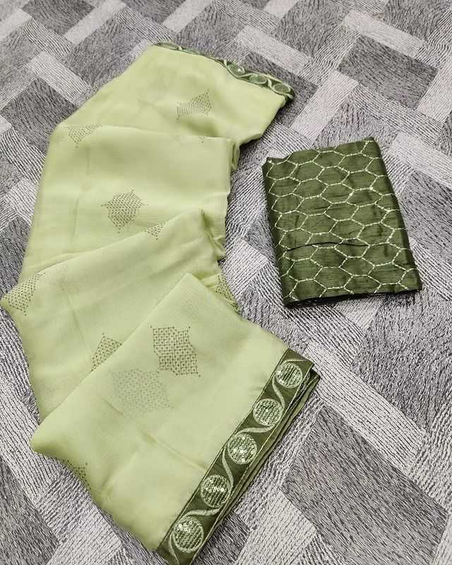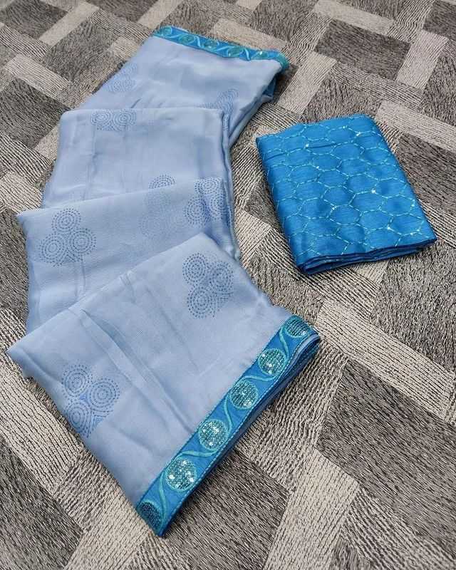Brand - Stavan ➡️Catalog - EMILY ➡️Rate - 699+5% ➡️Fabric - SATIN CHIFFON WITH VALUE FANCY WORK BLOUSE With WORK BORDER 6 Pcs set |