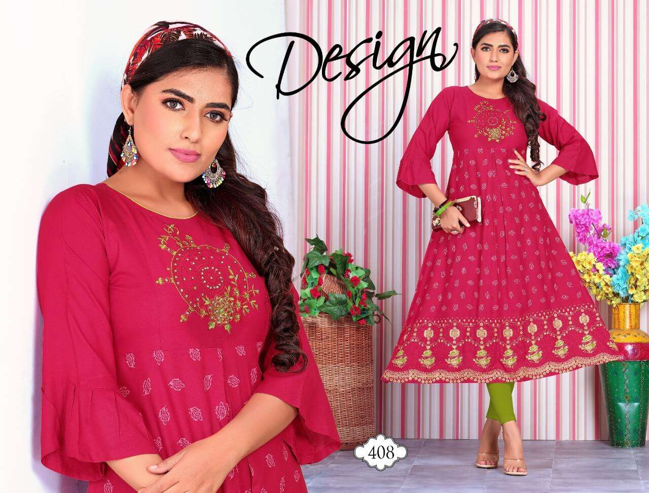 IN STOCK Model:tt-Emily-vol-2 Weight:3.00kg MOQ:8 Pcs Fabric: 17 kg Rayon Length: 46 Work: Embroidery with stone work Style: A-Line (Ghera) Size M L XL 2XL |