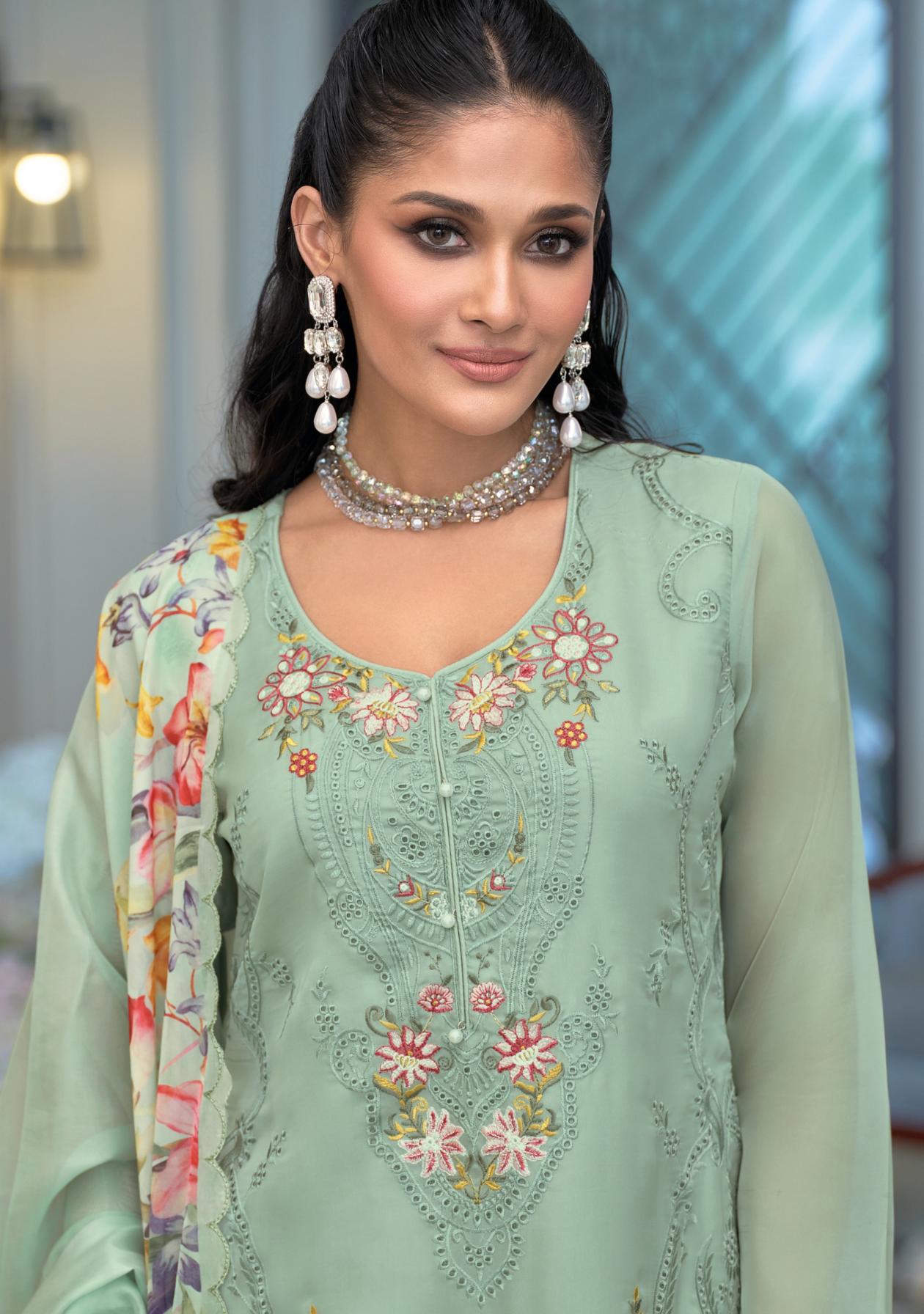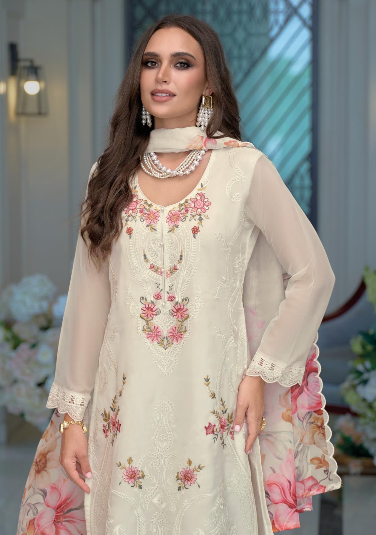 Erina Top - soft organza emboidery work Duppta- organza Digital peint Bottom- heavy silk SIZE - M(38) L (40) XL(42) XXL(44) 3xl(46) RATE - 1599/- |