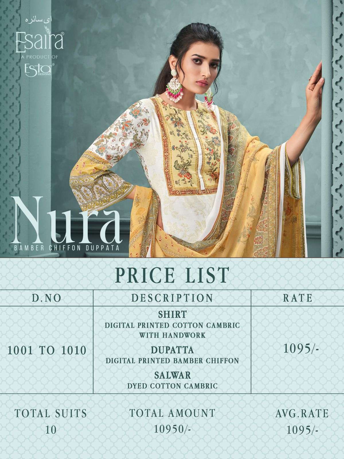 esaira nura by esta design cotton suit with pure dupatta