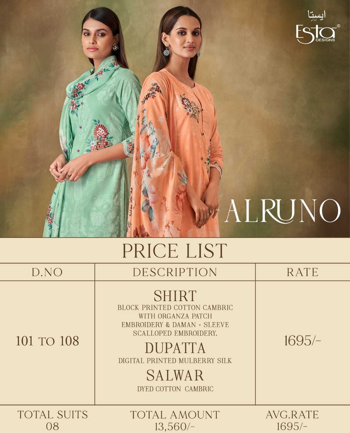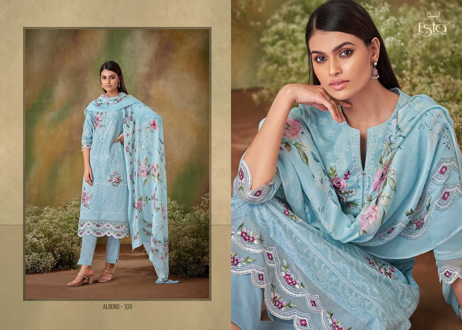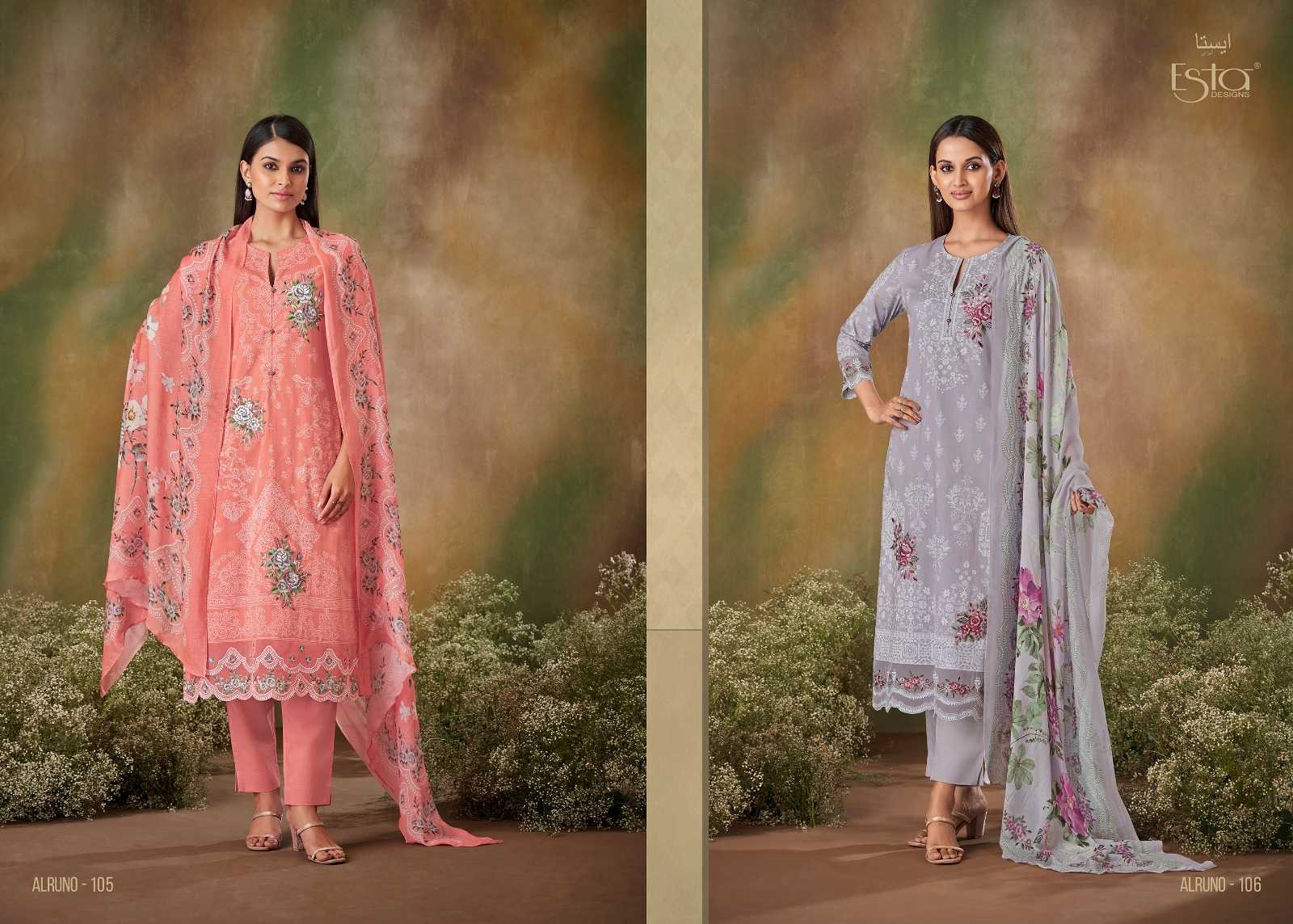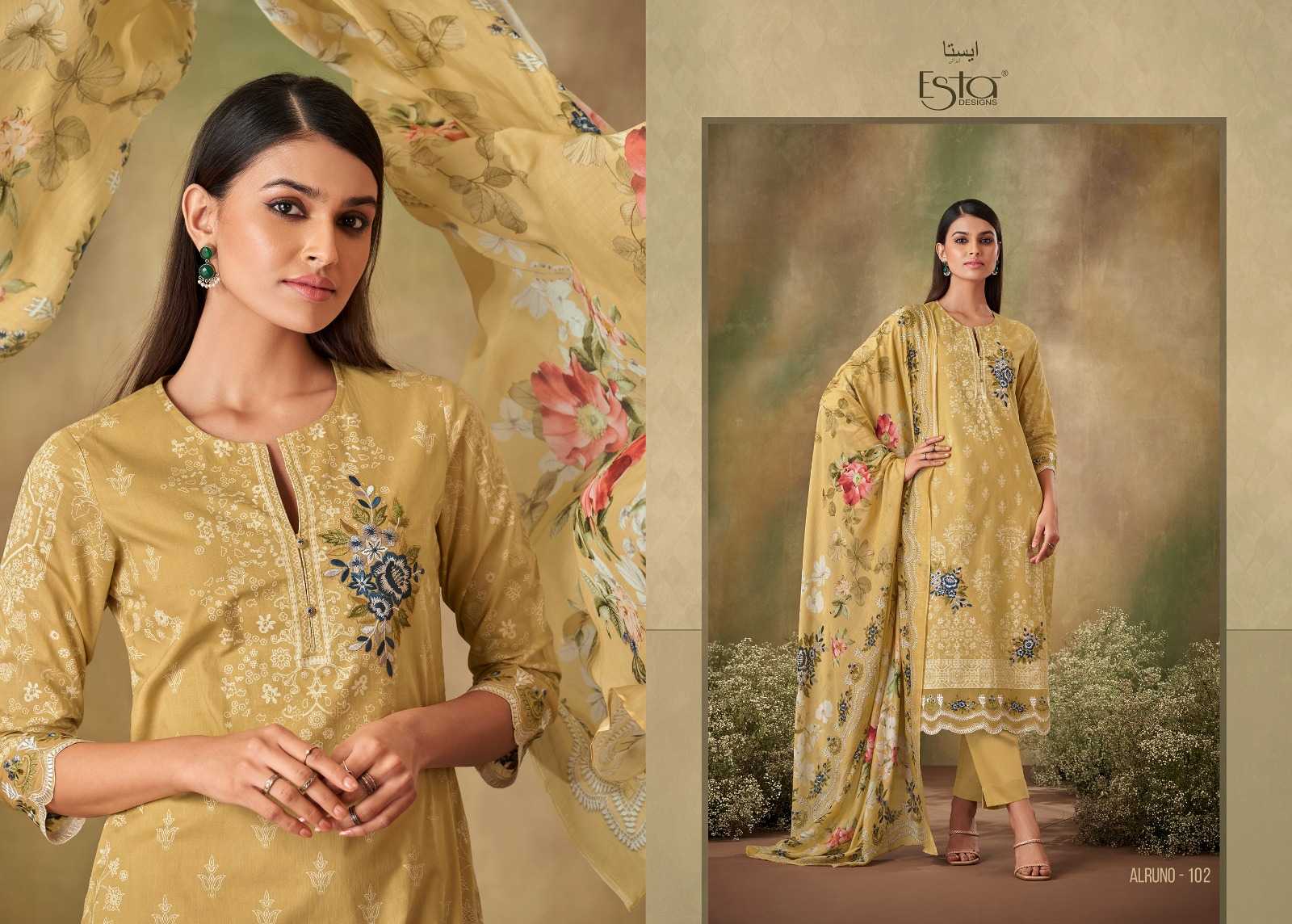 esta designs alruno designer cotton printed embroidery work unstitch ladies suit