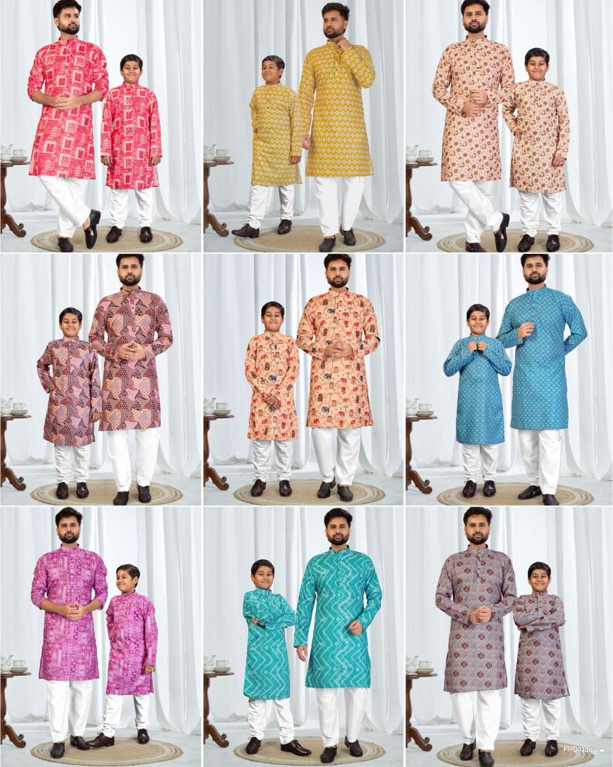 ethnicity fully stitch cotton printed kurta for adult and kids for festivals