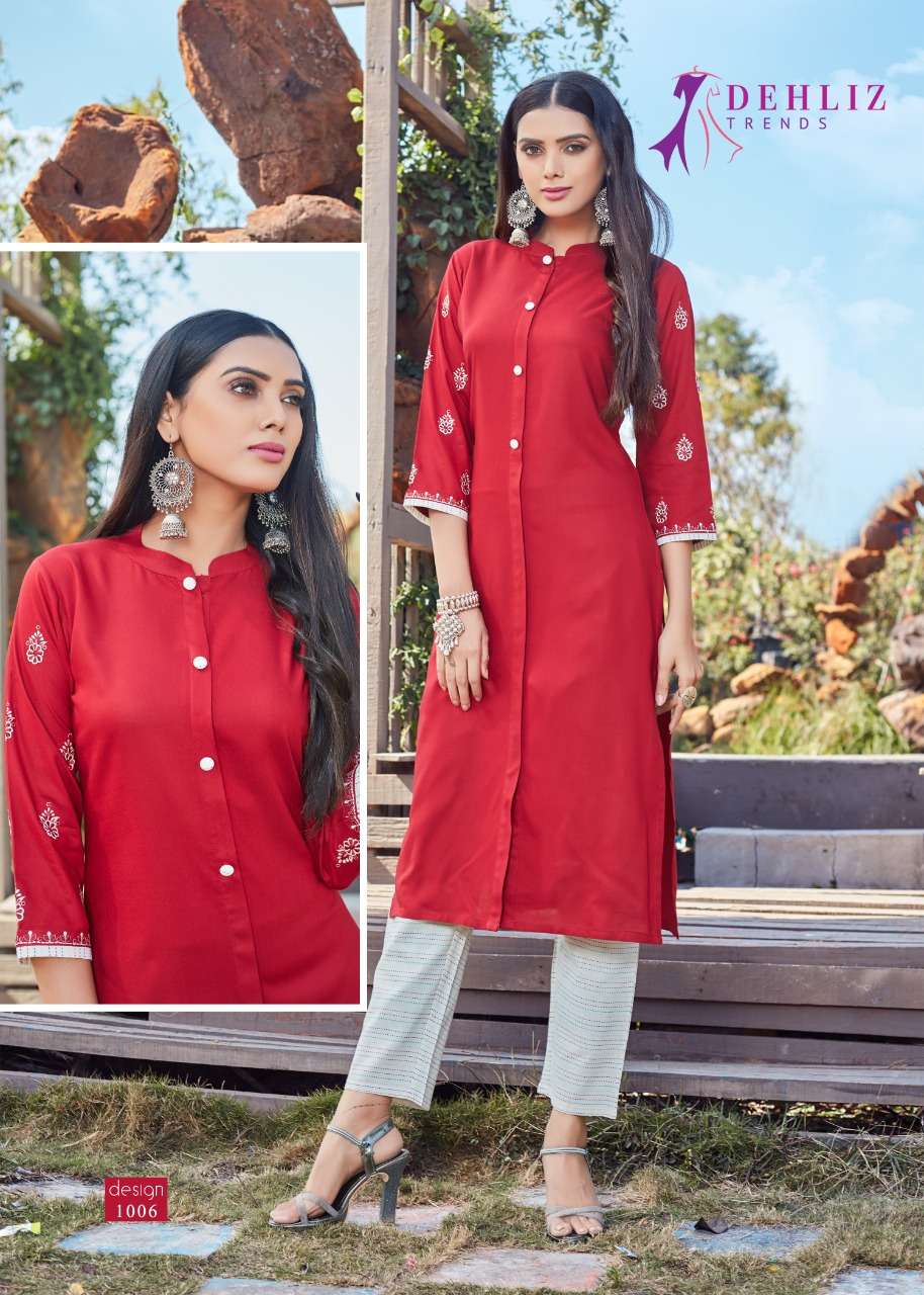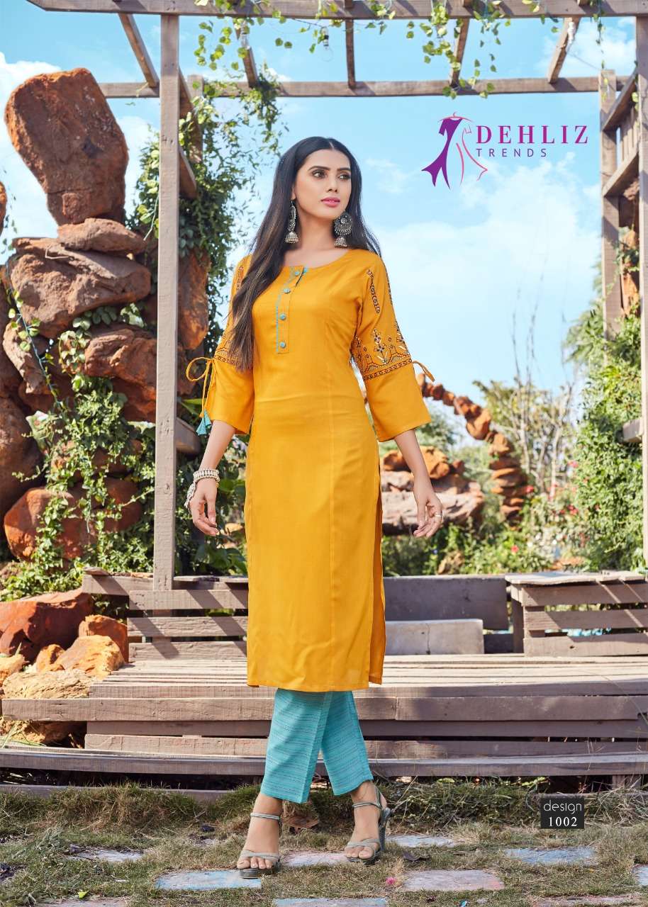 DEHLIZ TRENDS Catalogue name - Details 👗Fabrics - Kurti Length--46 Designs - 6 pcs ₹ Rate : 499 only per pcs |