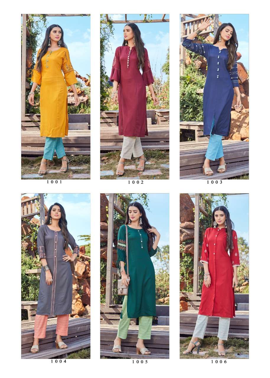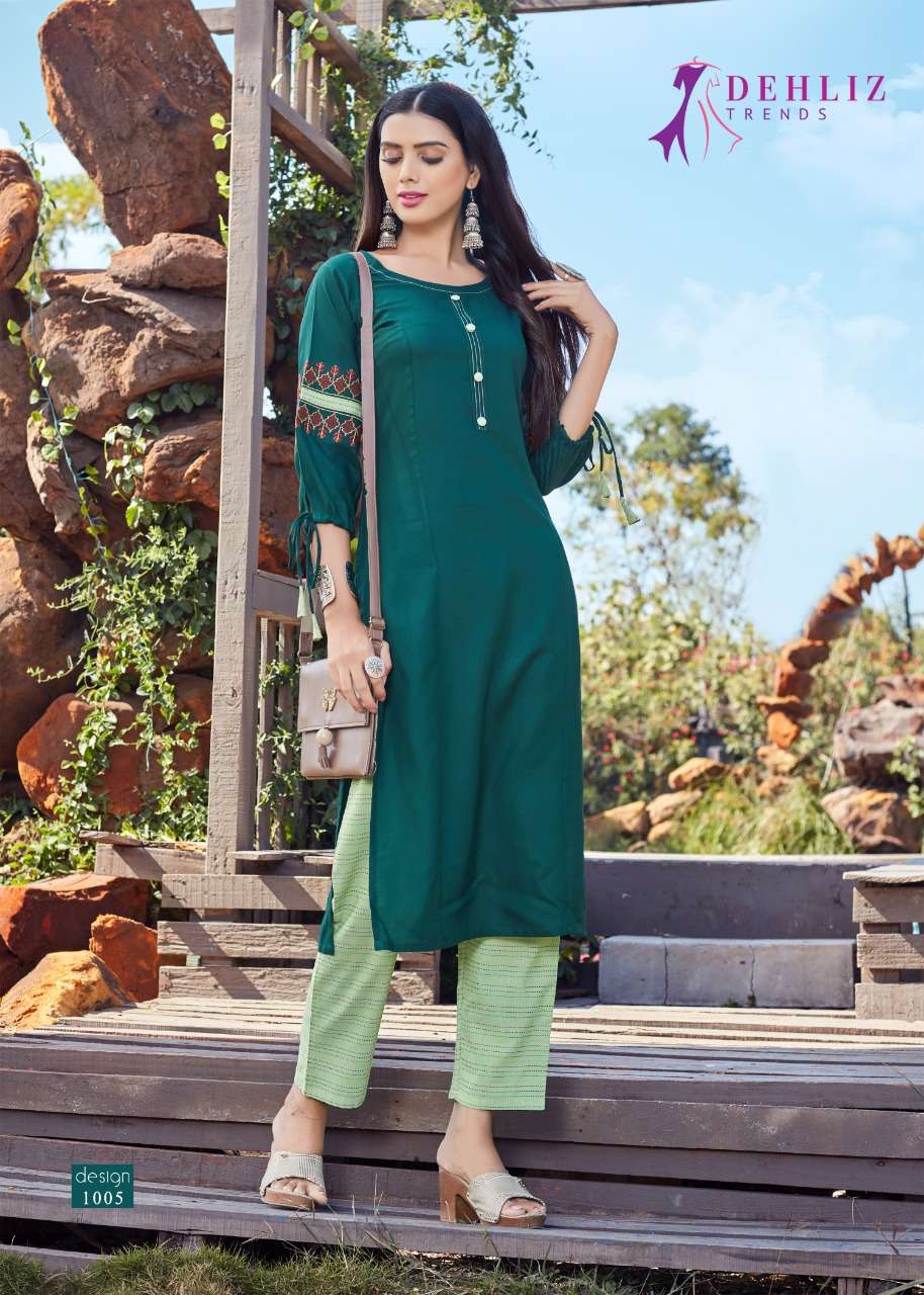 evergreen vol 3 by dehliz trendz rayon kurti with pant supplier
