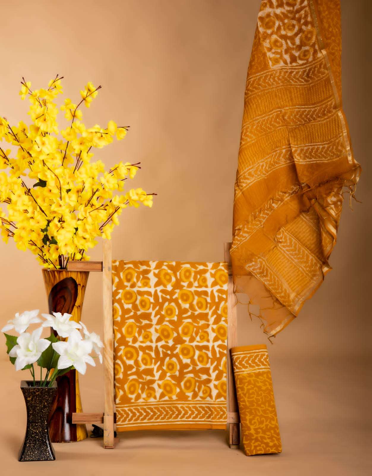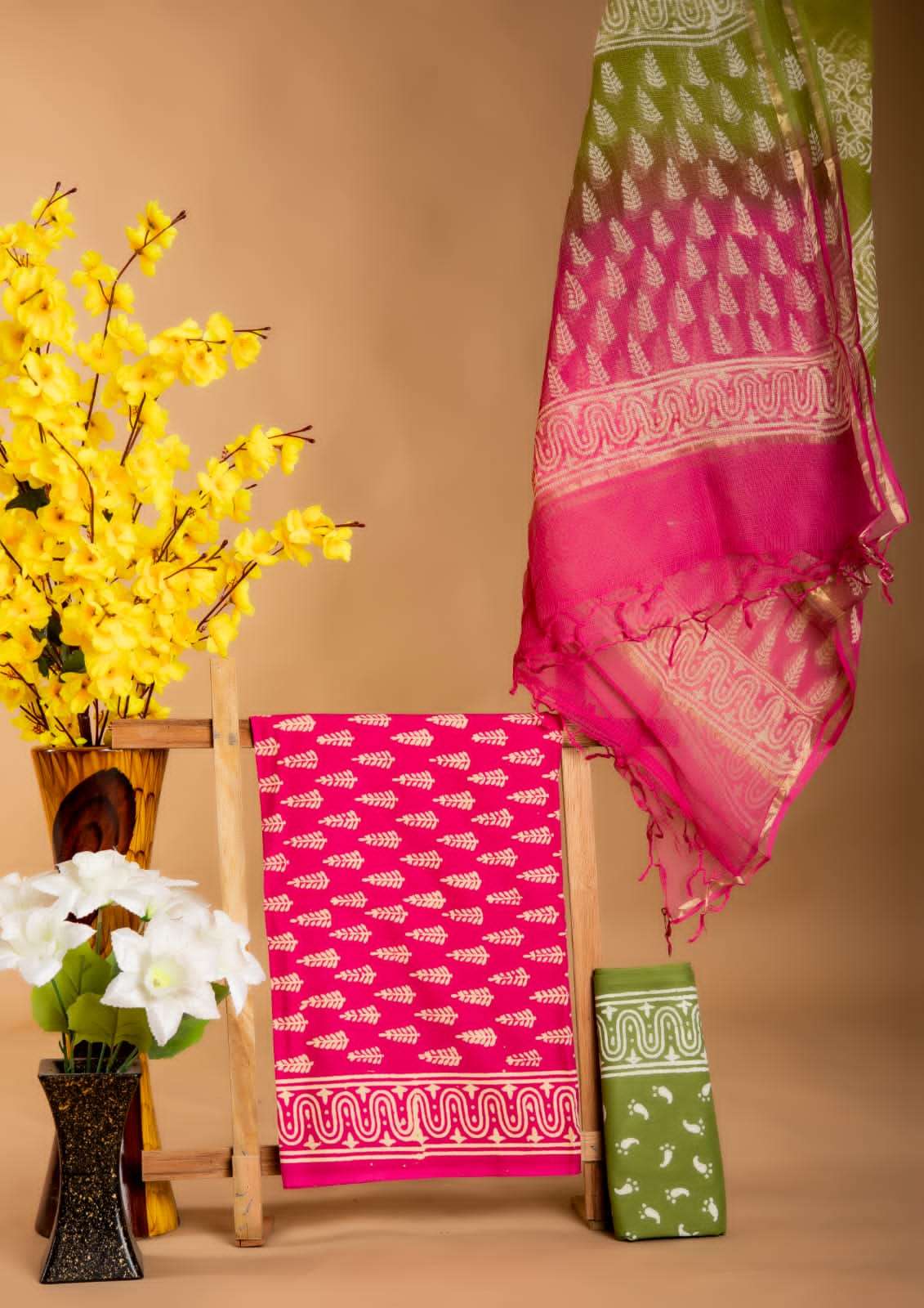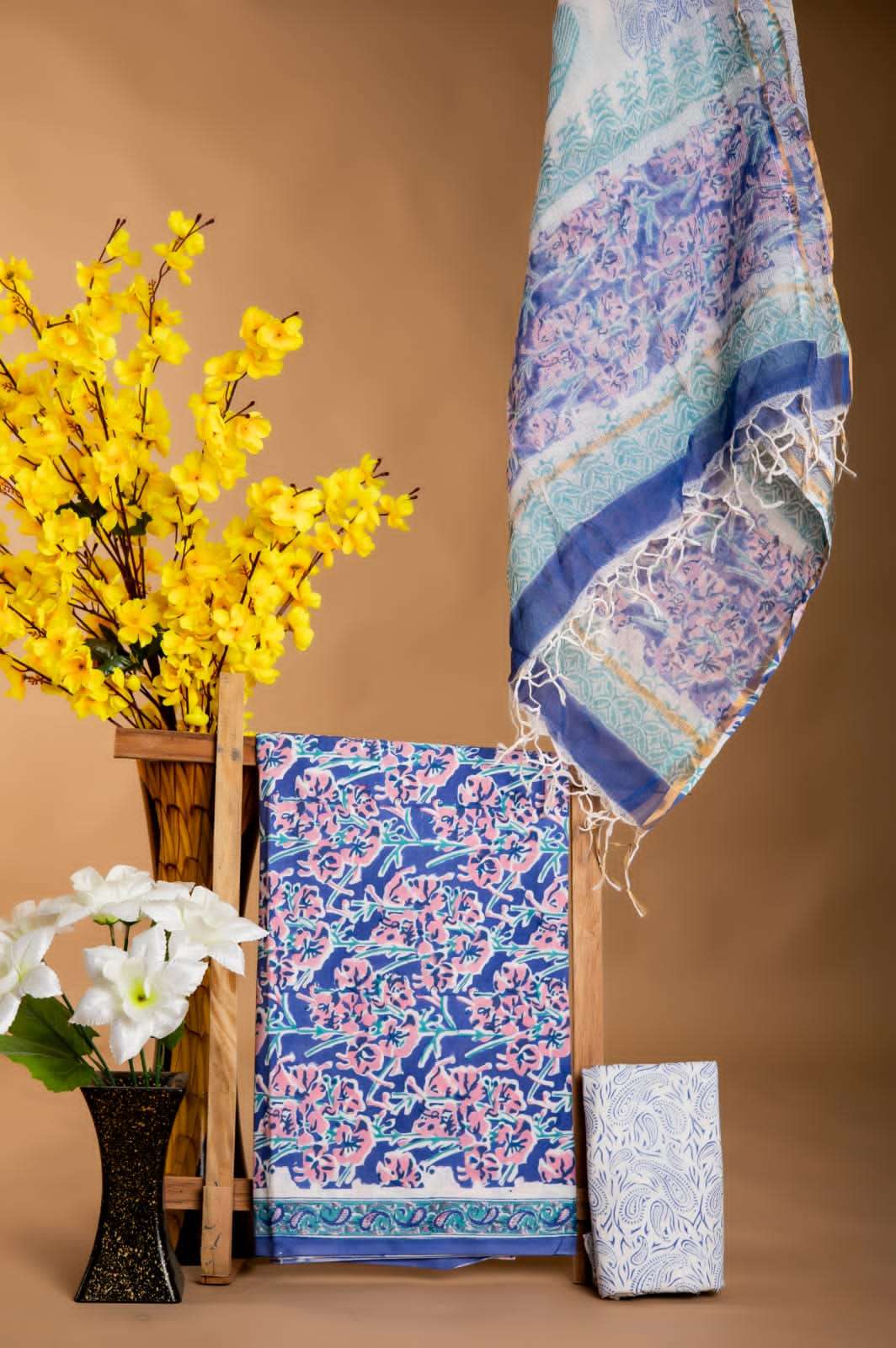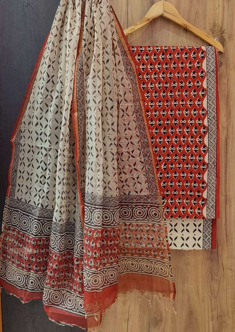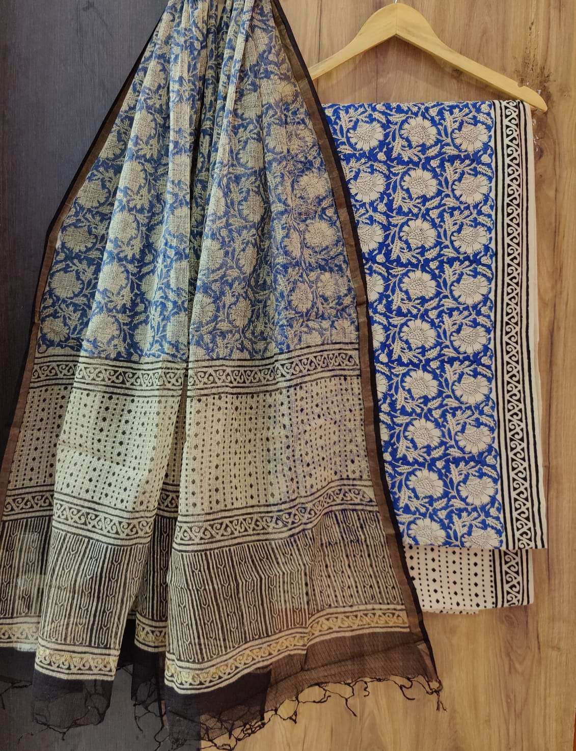 exclusive new collection of pure cotton block printed suit sets with kota doriya dupatta
