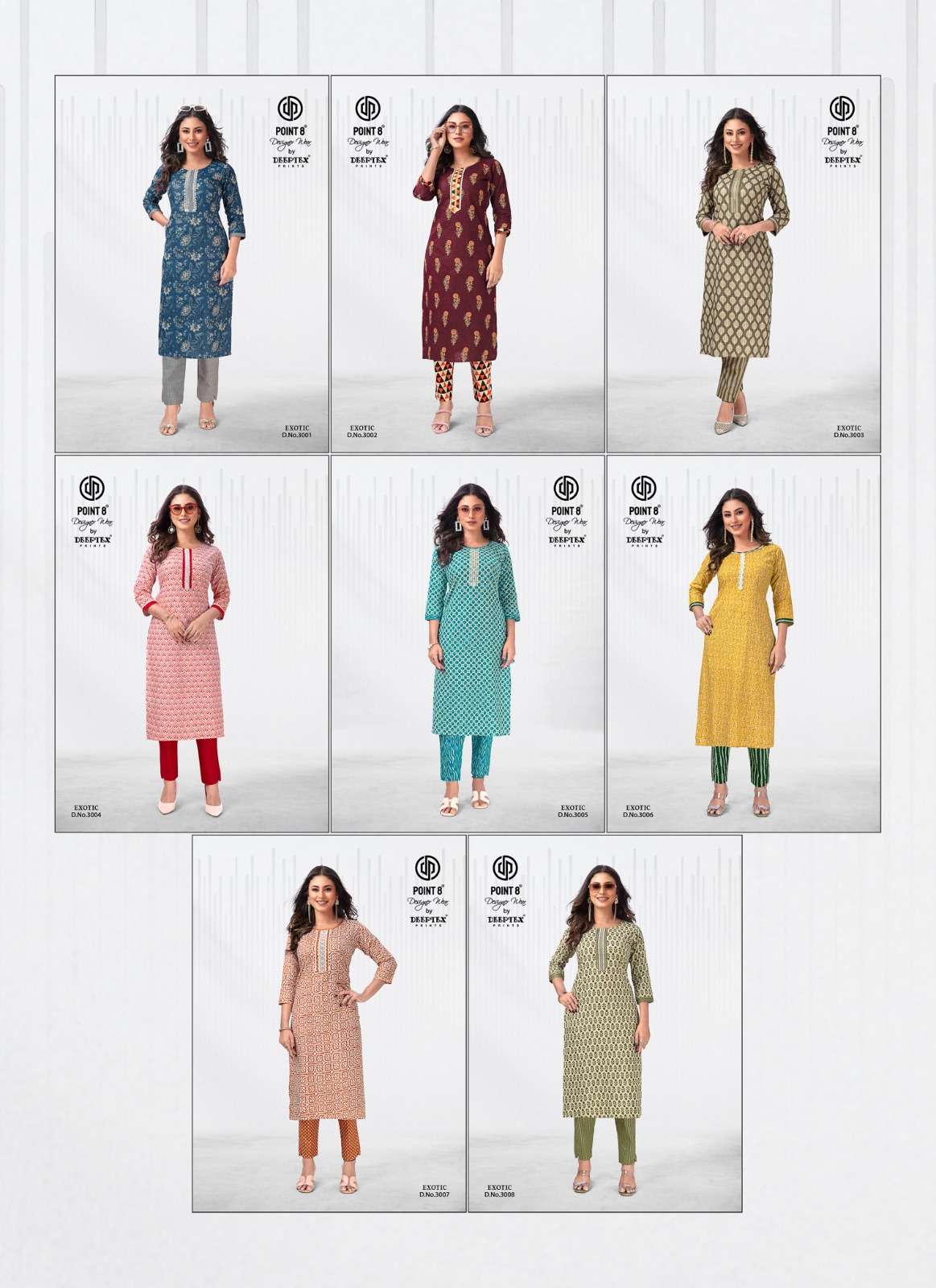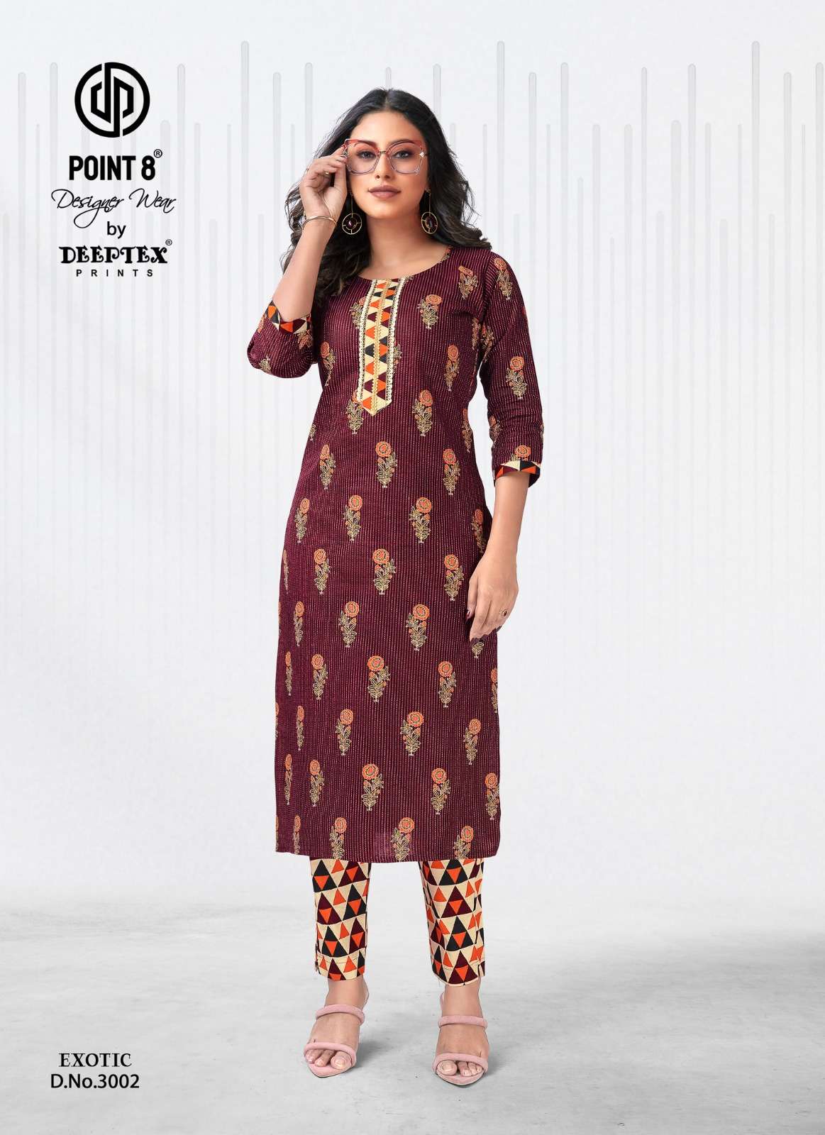 exotic vol 3 by point 8 deeptex print cotton kantha adorable kurti with pant