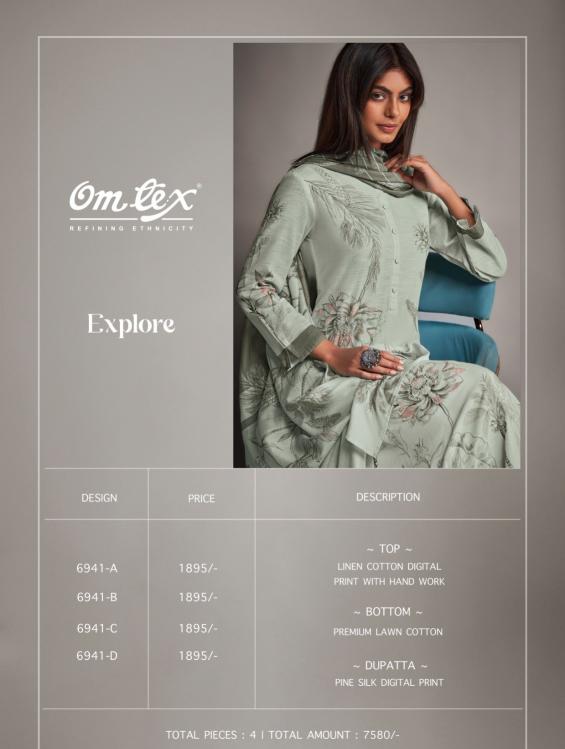 Om Tex Presents Latest Collection Launched on 20-02-2025. Presenting Beautiful collection of 4 PCS with Unstitched .