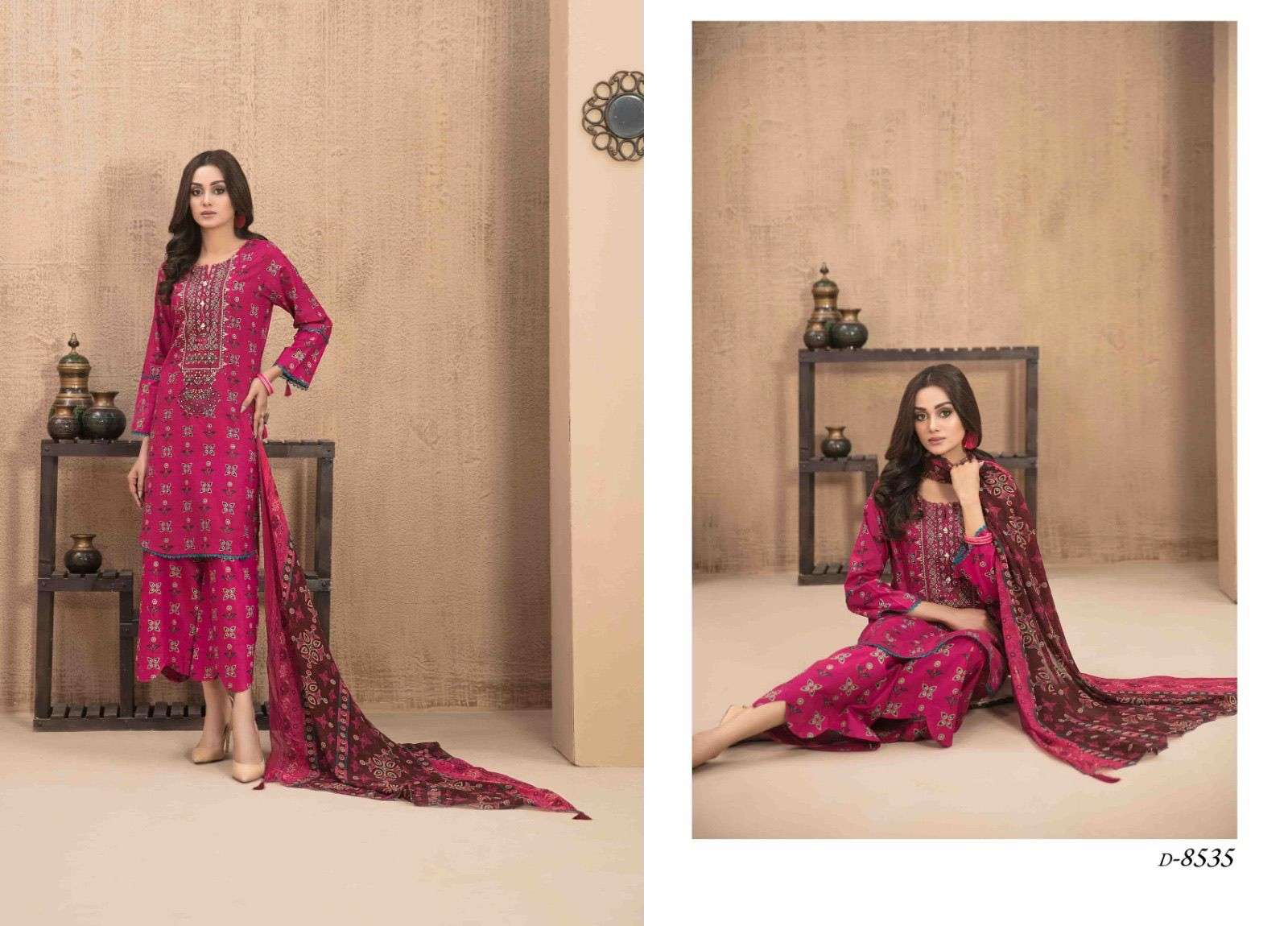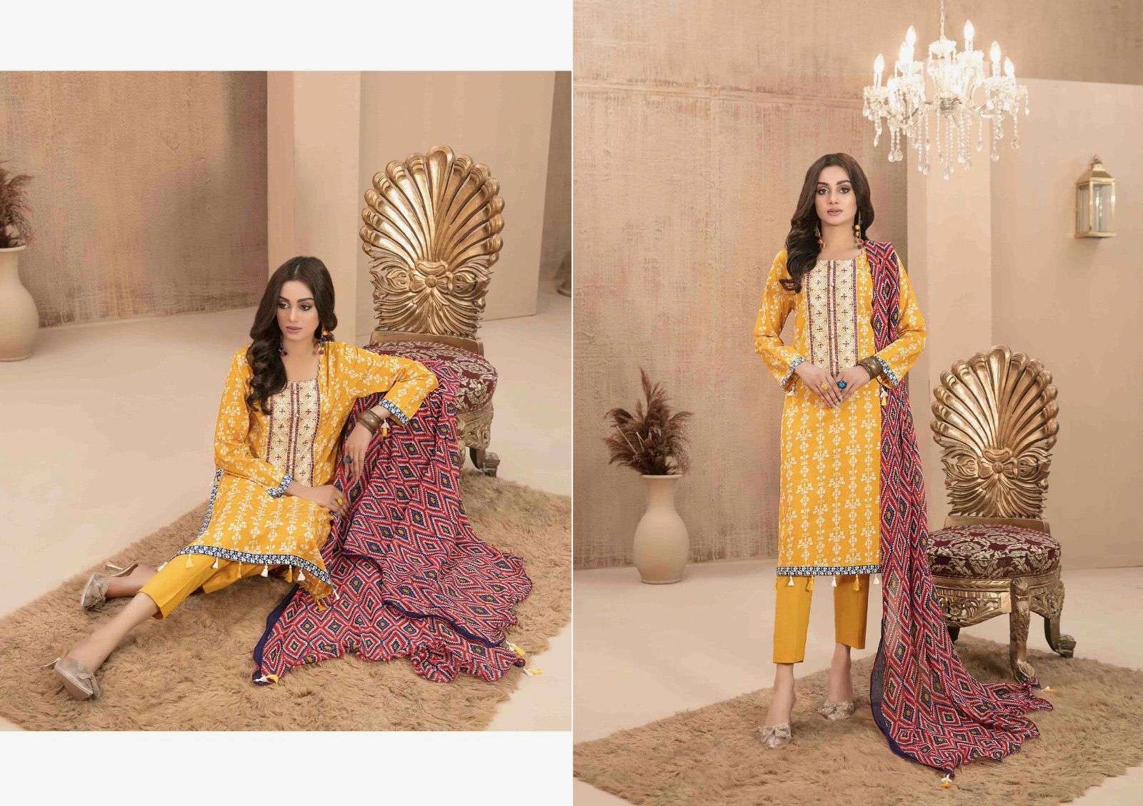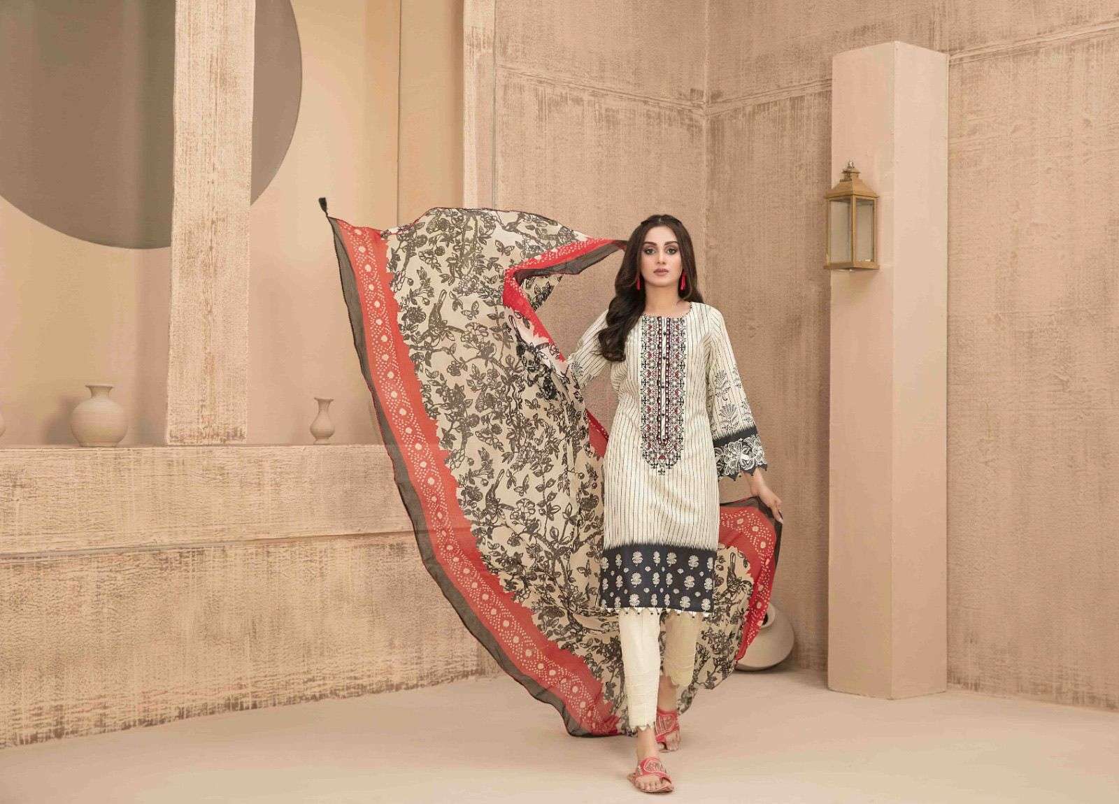 YOUR FAVOURITE BRAND♥️ HALA TRADERS 🎁 Presents🗣 🌹EZRA VOL - 01🌹 Pure Cambric Cotton Collection With Heavy Mal Mal Pure Cotton Duppata 👗Top : Pure Cambric Cotton With Self Embroidery Work (Cut : 2.50 Mtr) 👖Bottom : Pure Cambric Cotton (Cut : 2.25 Mtr) 🧣Dupatta : Pure Cotton Mal Mal Heavy Dupatta (Cut : 2.25 Mtr) Designs : 05 Pcs set With Attractive 😍 Pouch & Bag 💼 Packing PRICE 555 |